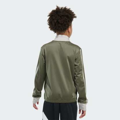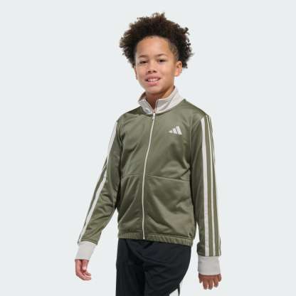 This kids' adithtdas jacket gives off classic throwback track-jacket style with modern performance. Iconic 3-Stripes don the long sleeves for an iconic look. This is a great layering piece that easily transitions from warm-ups and active days to casual outings and kicking back.