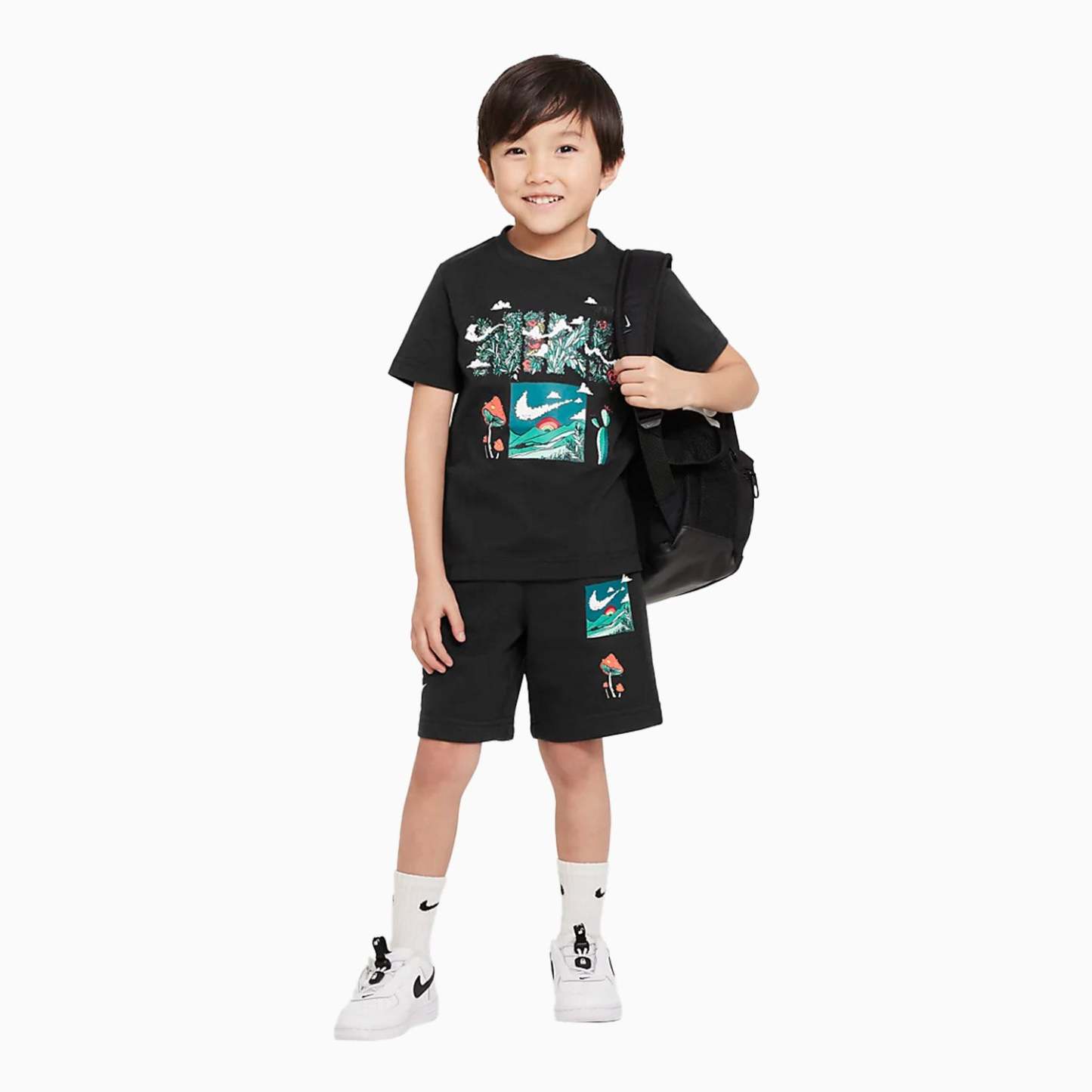 ?The Nithtke Biosphere Shorts Set includes a graphic jersey tee and matching French terry shorts for an easy, everyday outfit little ones can play in. Soft, jersey fabric feels gentle on the skin. Sueded French terry fabric feels comfy on the skin. The elasticized?waistband provides a comfy fit.