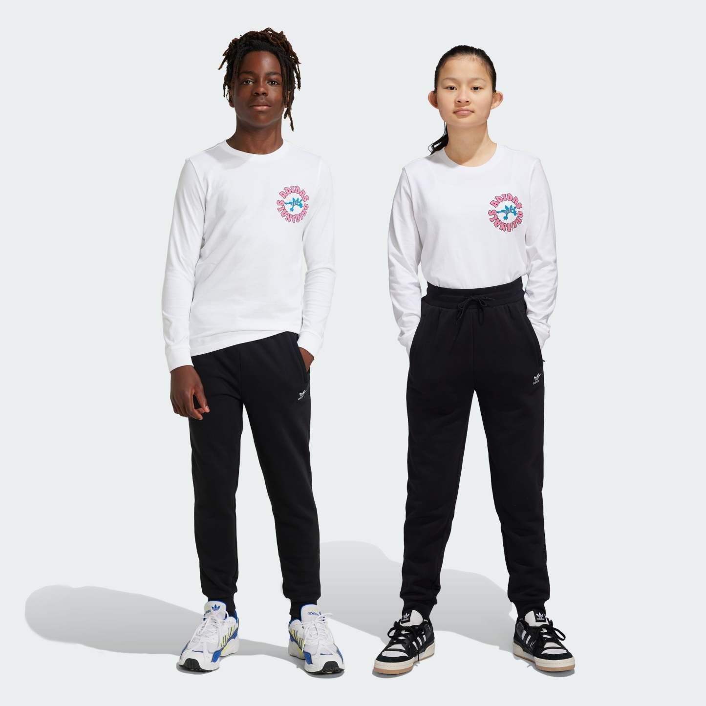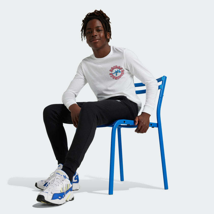 So comfortable, you'll want to live in them. These juniors' adithtdas pants are built in cozy fleece and have a drawcord elastic waist that lets you adjust the fit. An embroidered Trefoil logo and ribbed cuffs turn a simple essential into a style statement.