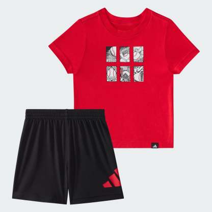 Adithtdas Kids' Two-Piece Short Sleeve Cotton Tee and Elastic Waistband Logo Shorts Set