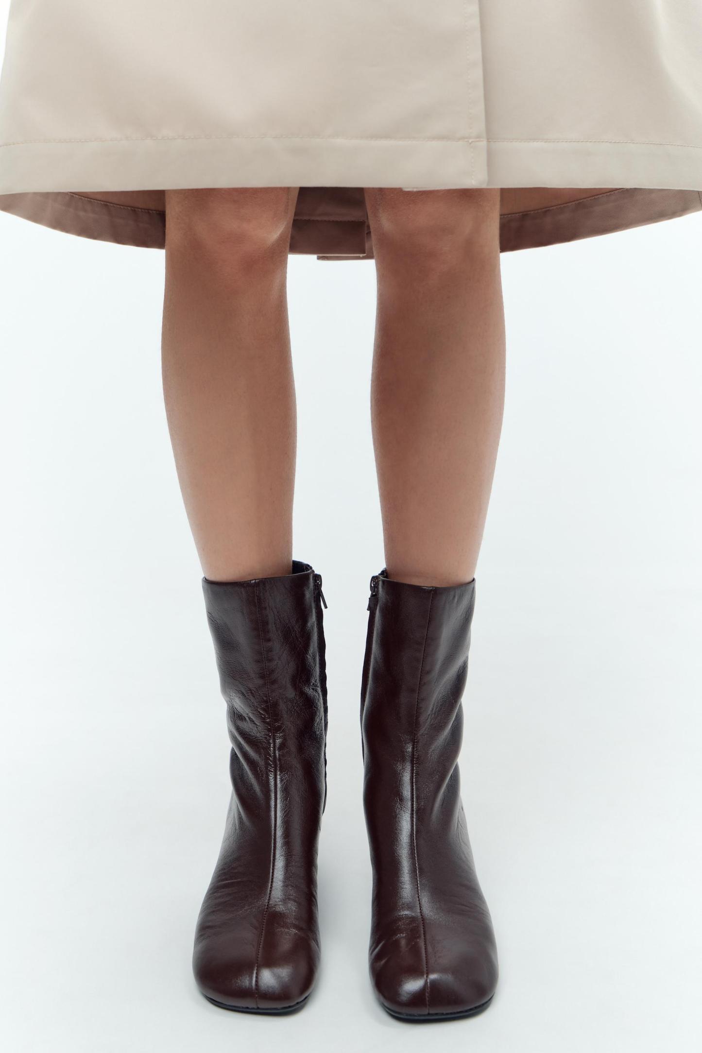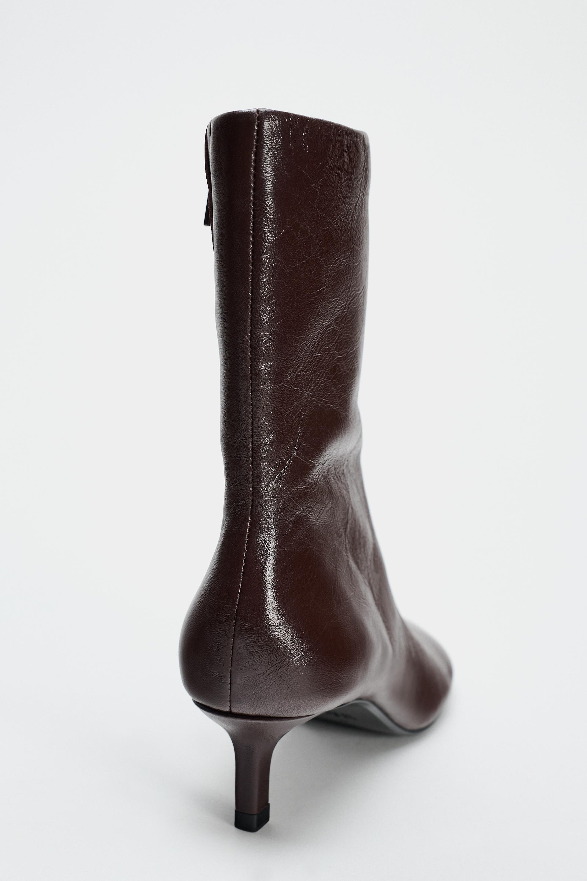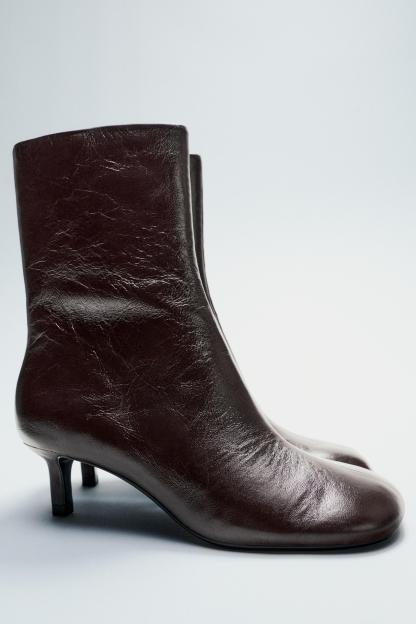 KITTEN HEEL LEATHER ANKLE BOOTS
