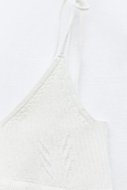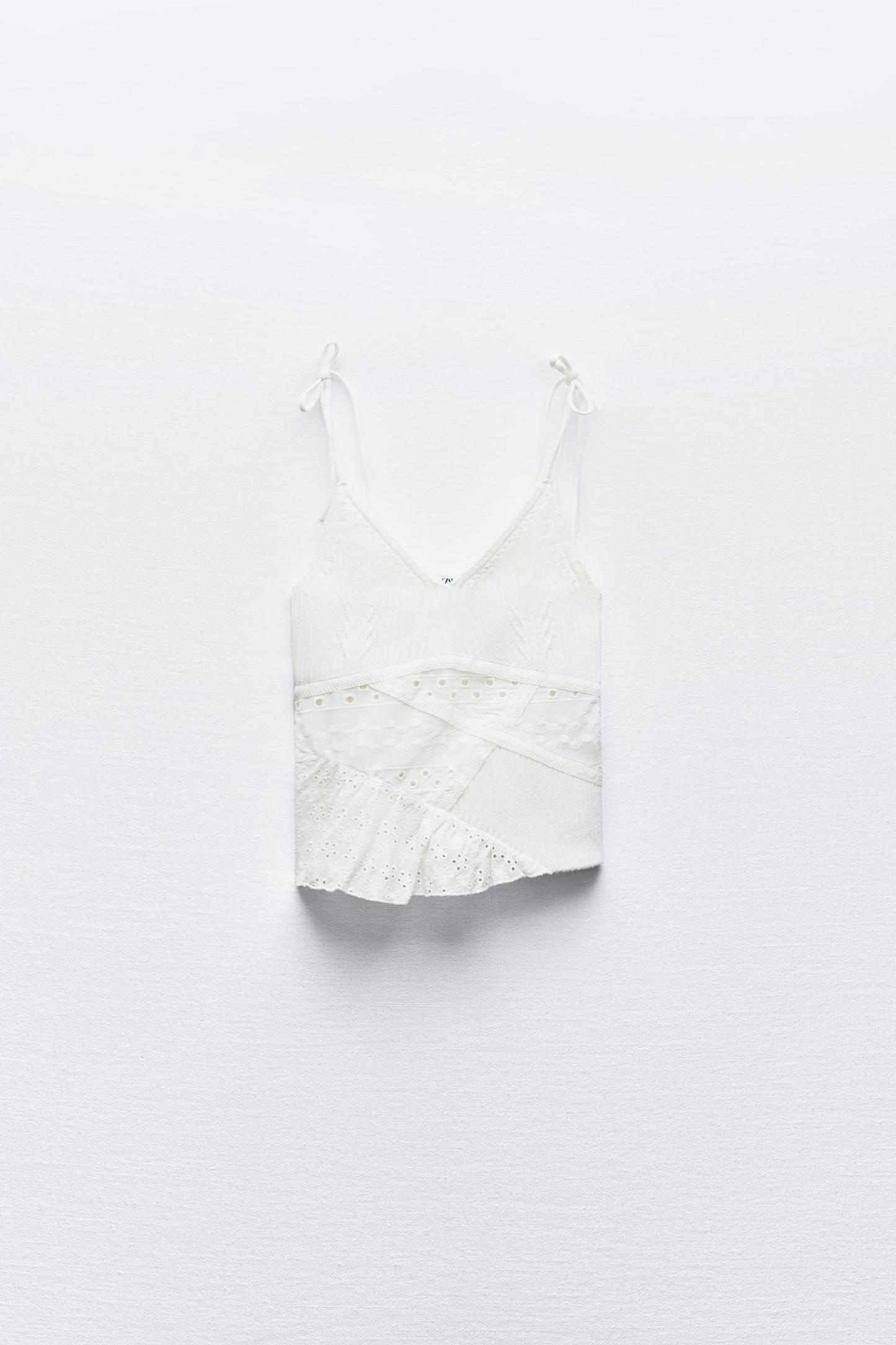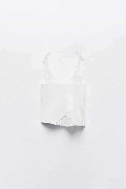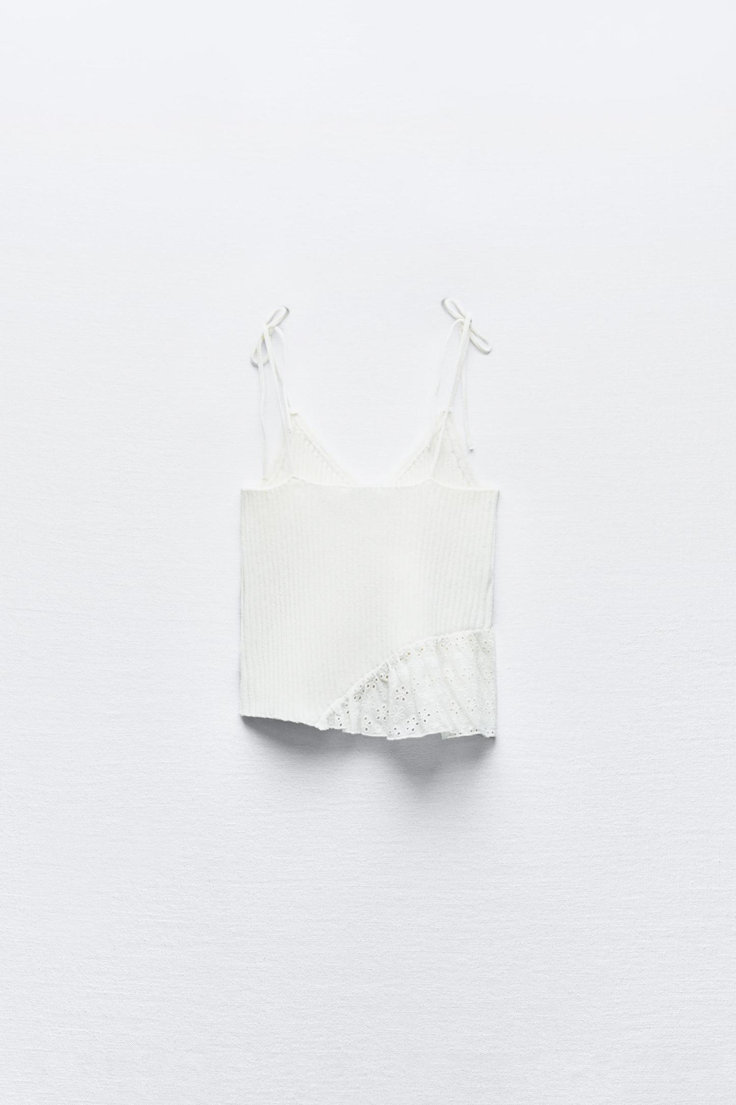 KNIT TOP WITH EMBROIDERED EYELET