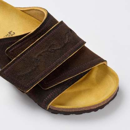 The leather has been tanned at the historic Kolesch tannery, established in 1723 using traditional artisanal methods that involve only salt and water, ensuring a natural finish. The hook-and-loop straps are adorned with embossed details inspired by Lederhosen and hunting motifs, adding a touch of heritage to this exclusive design. The cork midsole has been harvested from a 250-year-old Cork Oak as part of a global limited-edition release where only 250 pairs were made.
