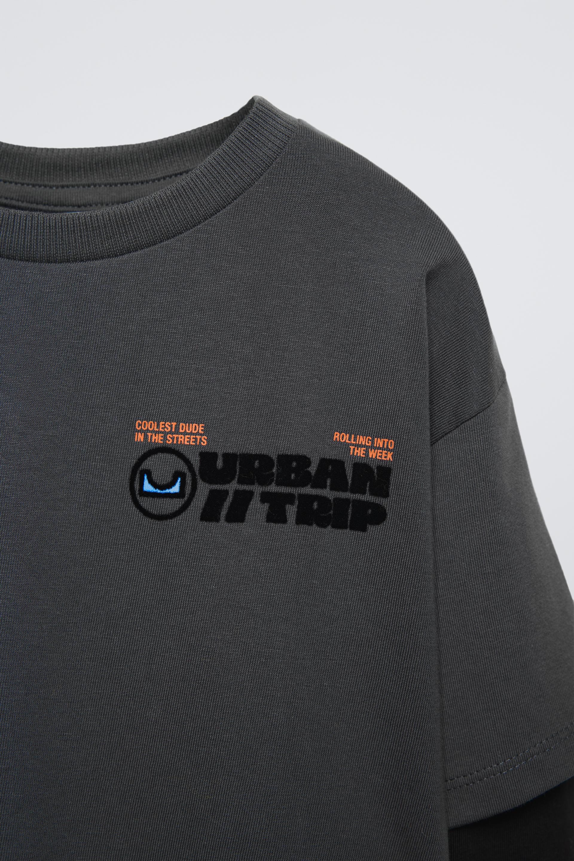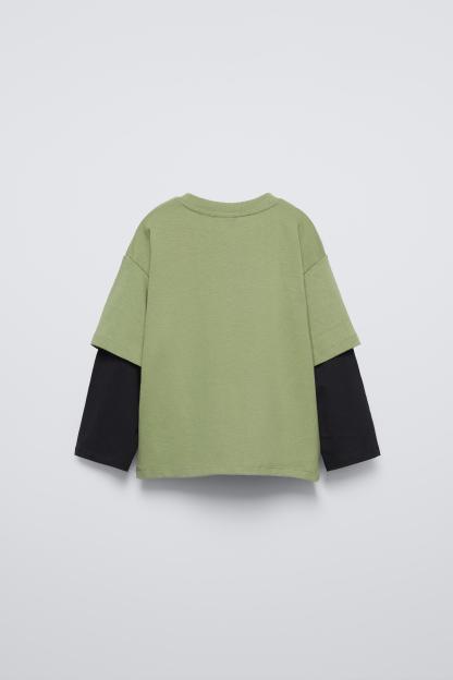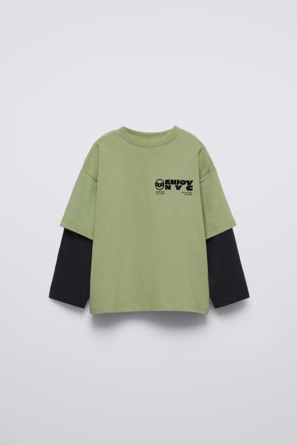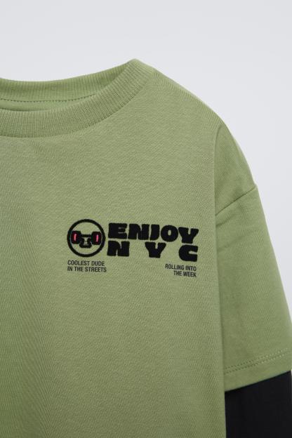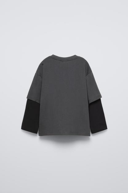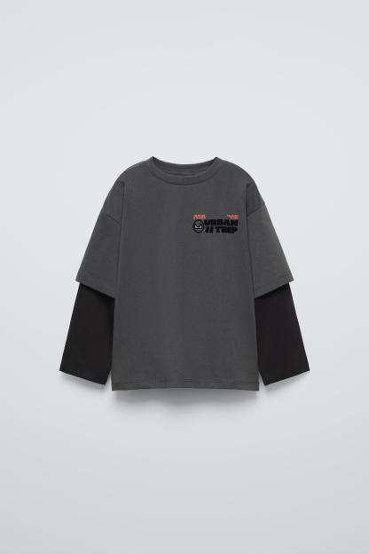 LAYERED SLEEVE LOGO FLOCKED T-SHIRT