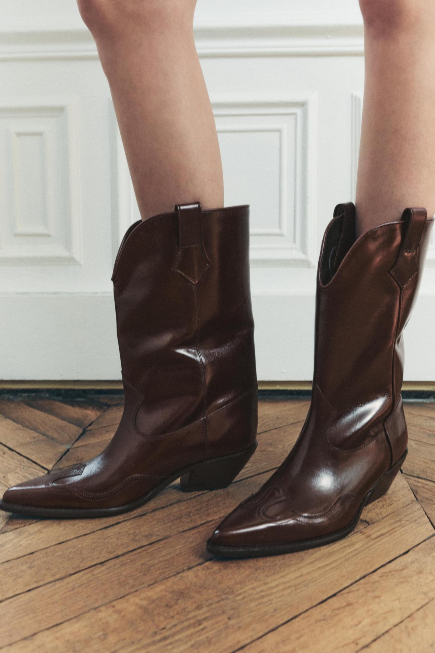 LEATHER COWBOY ANKLE BOOTS