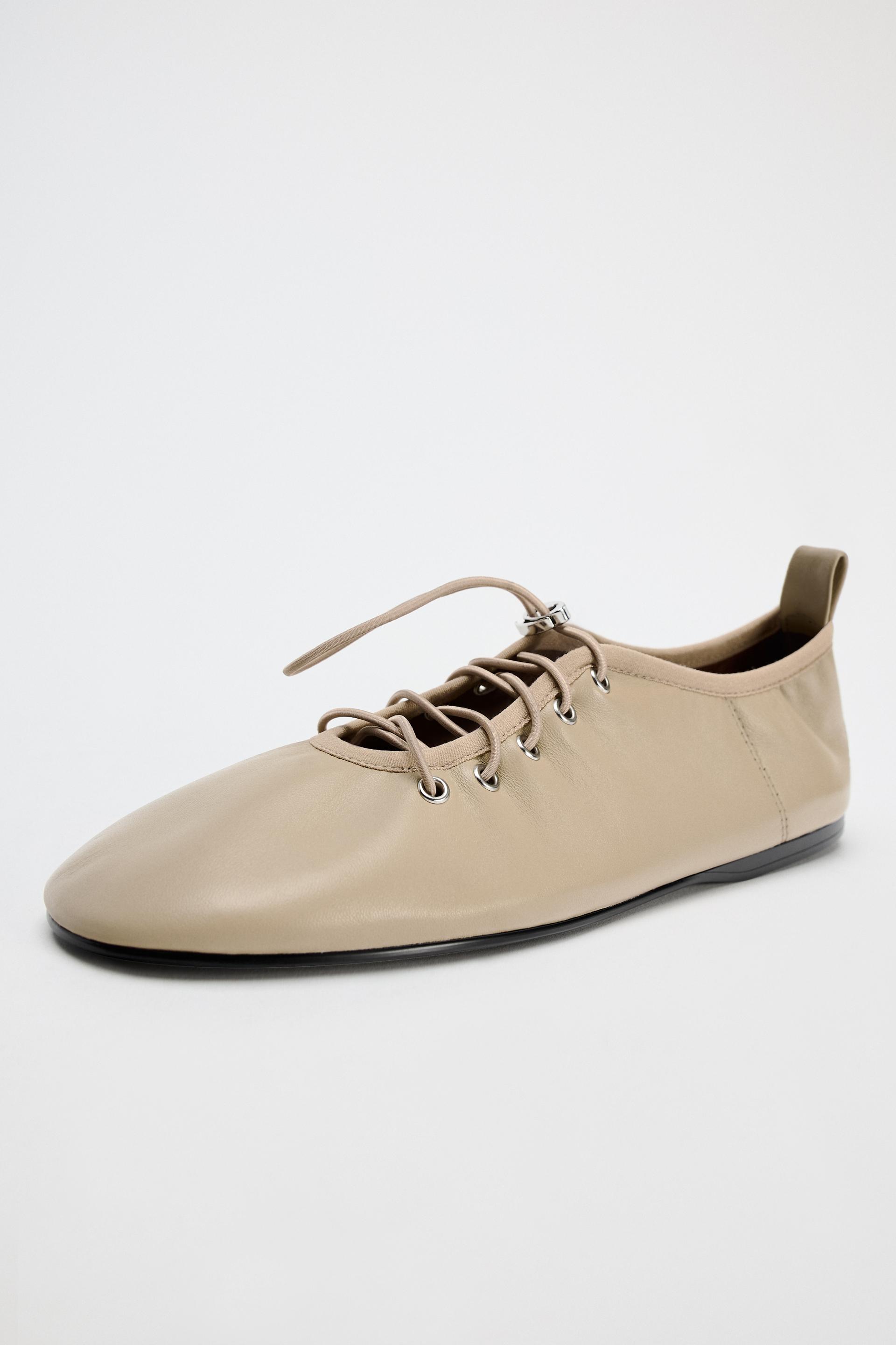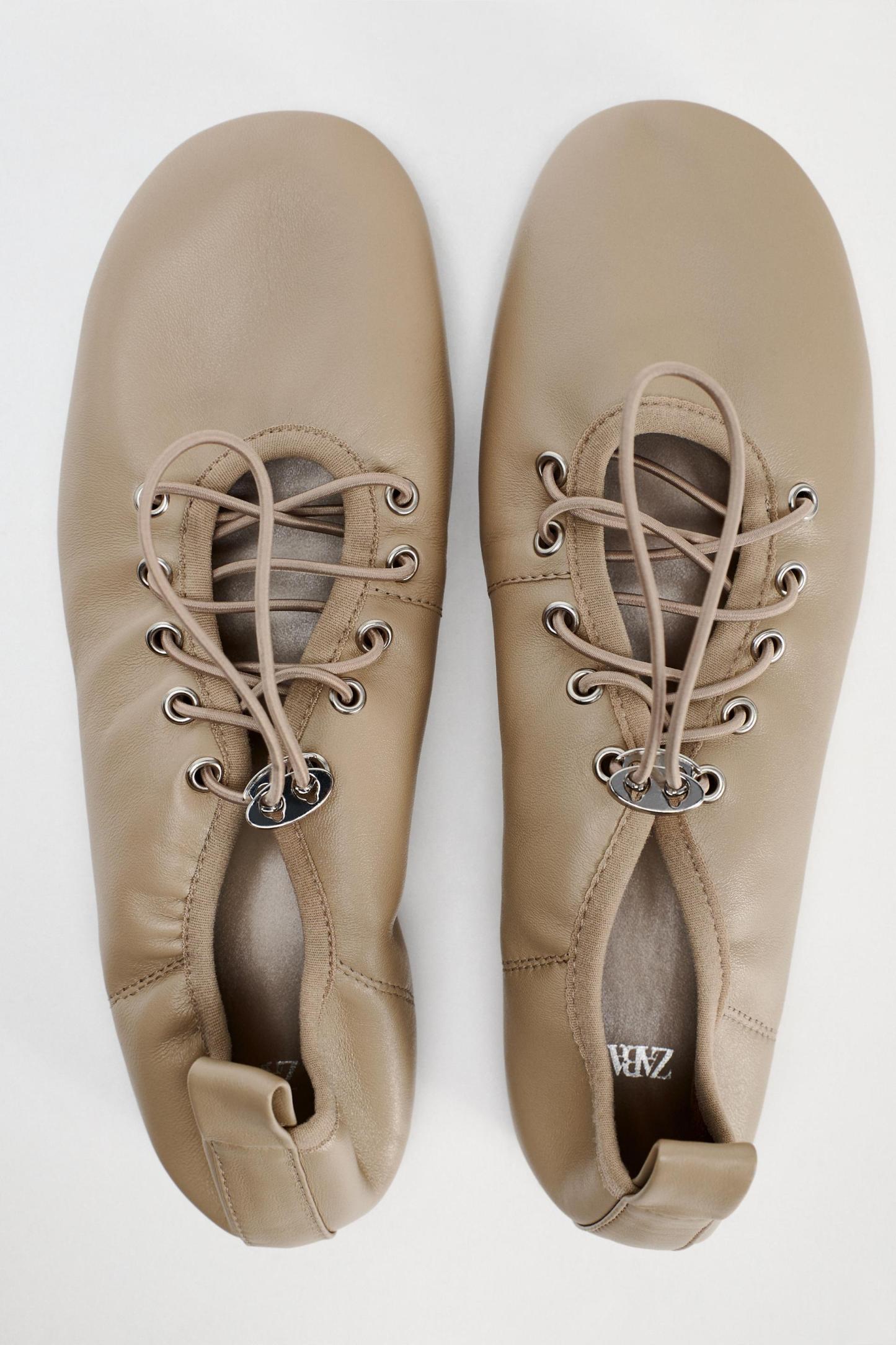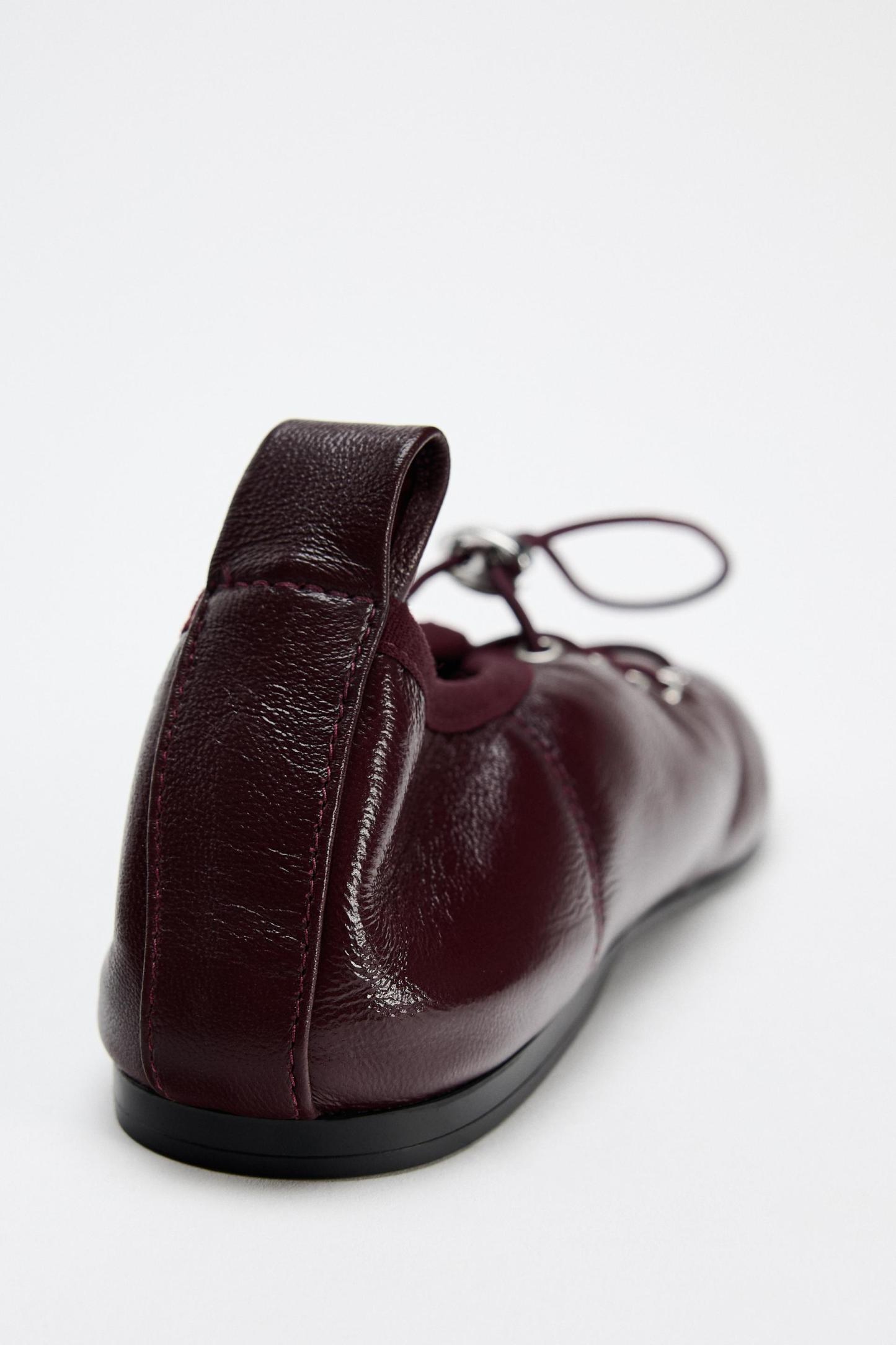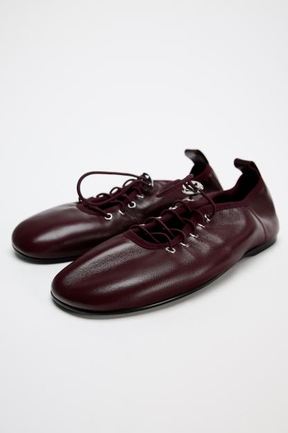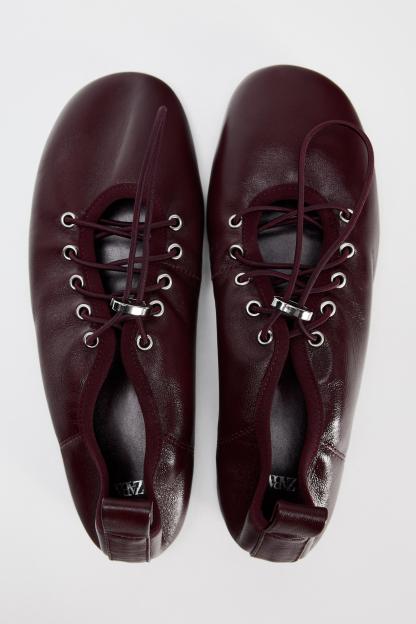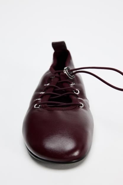 LEATHER LACE-UP BALLET FLATS