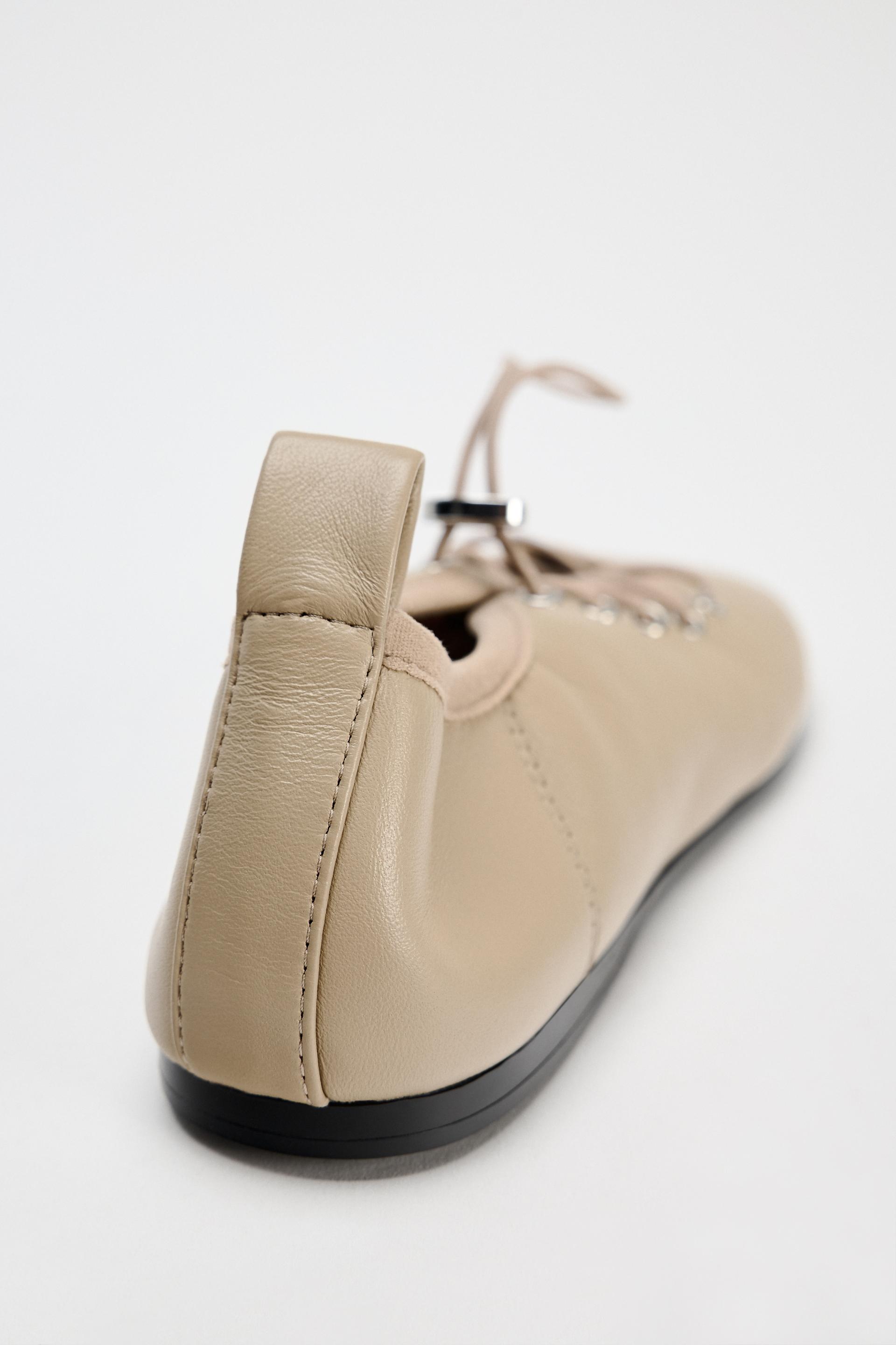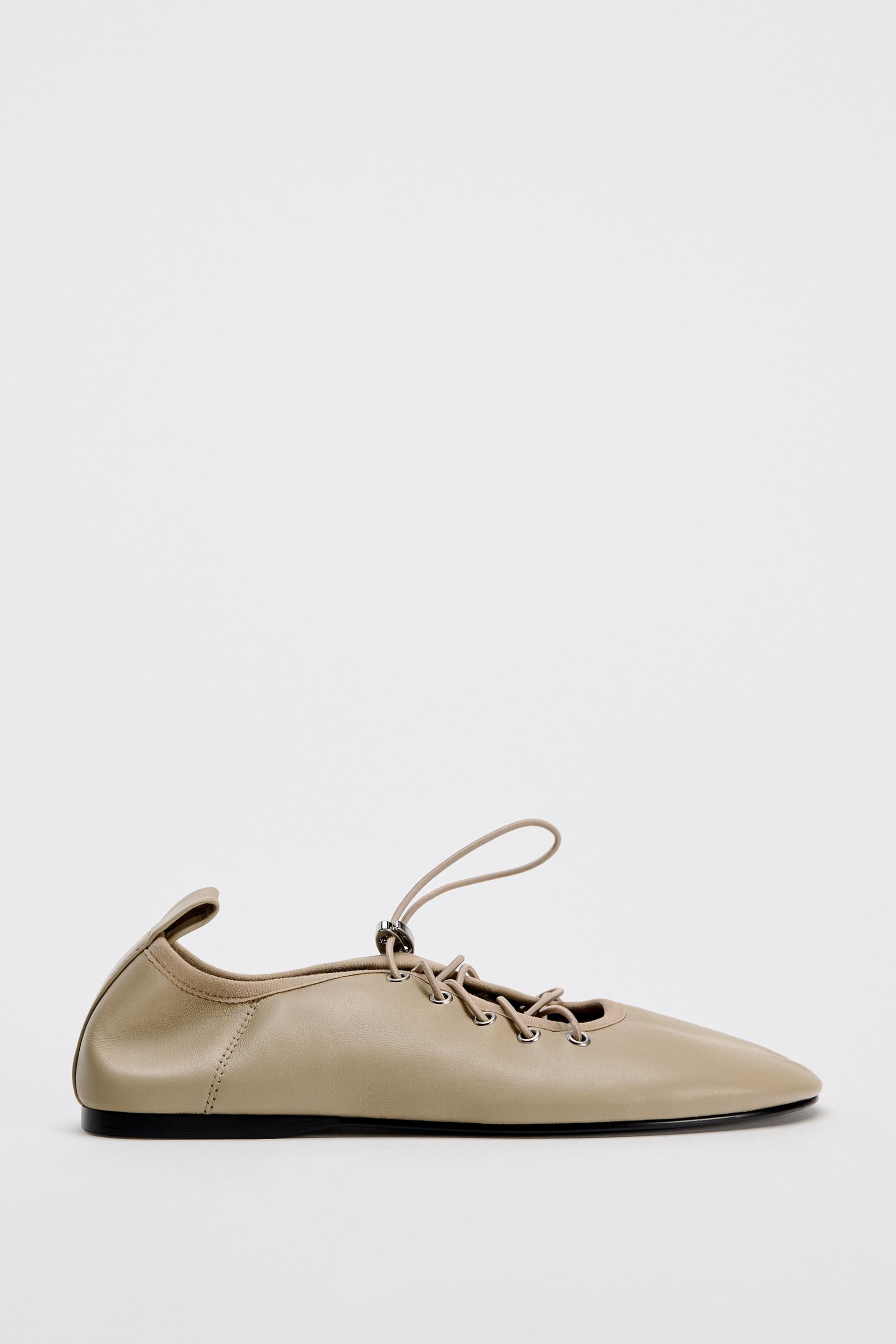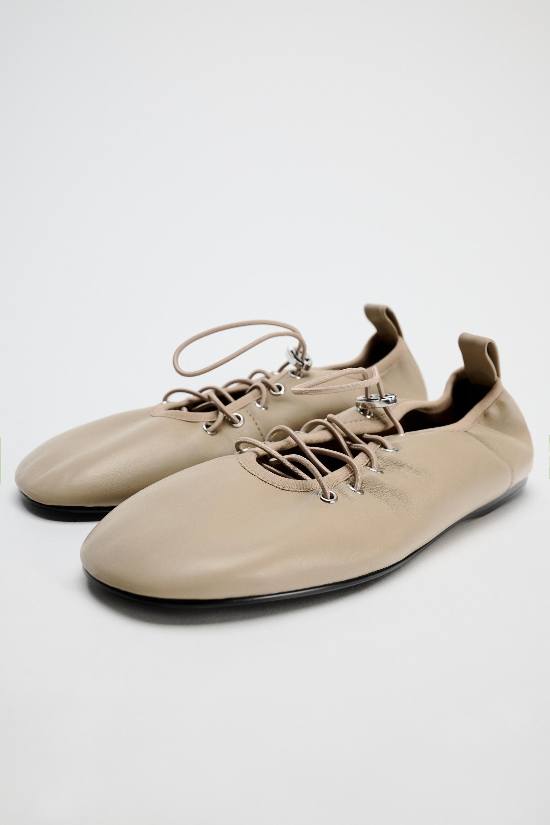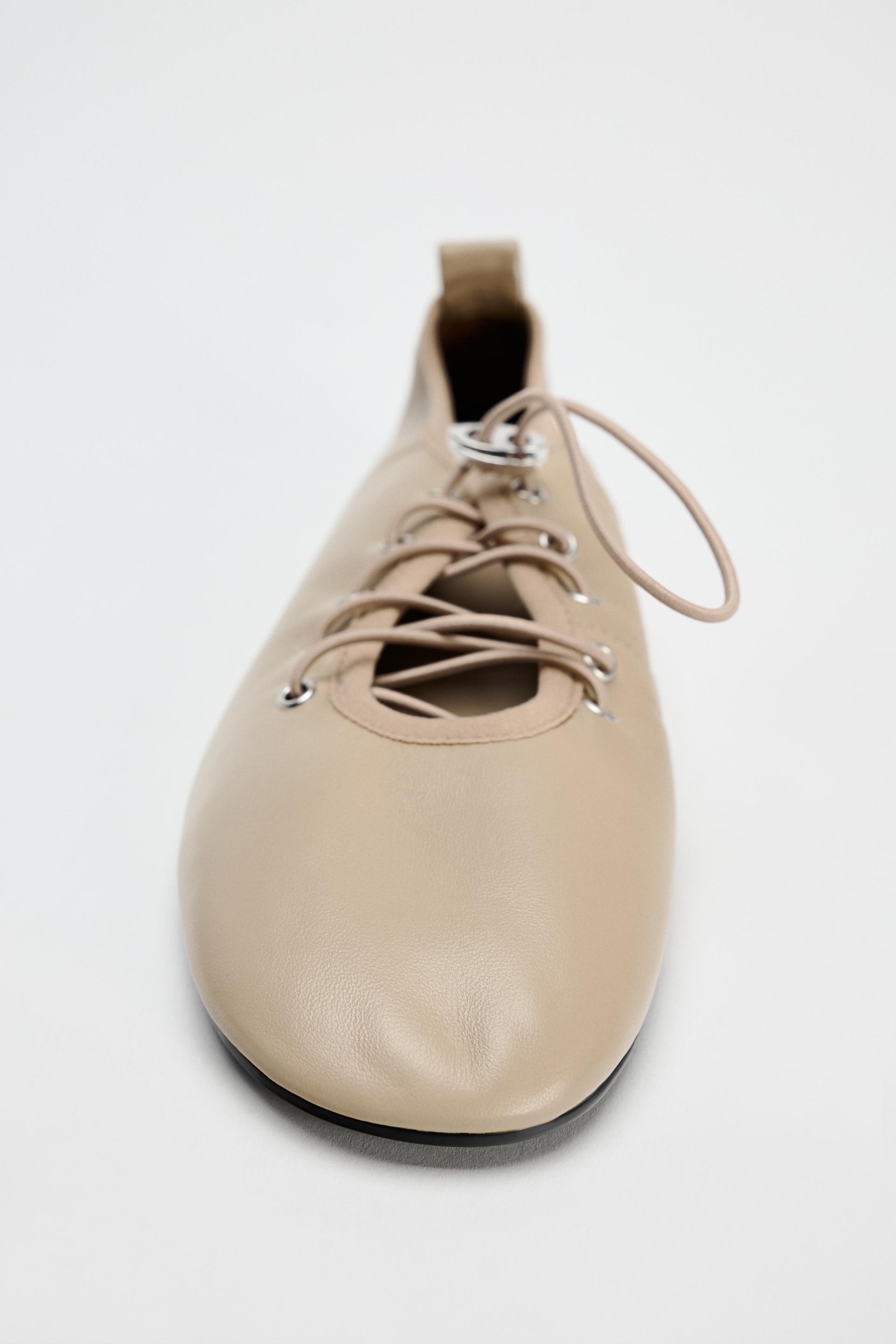 LEATHER LACE-UP BALLET FLATS
