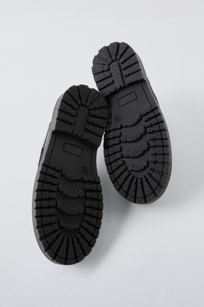 15% polyesterSOLE100% sbsINSOLE100% sheep leatherTONGUE100% cow leatherCARECaring for your clothes is caring for the environment.Simple actions like washing items with a dry cotton cloth or soft brush, per the characteristics of the product, can help us care for them. Whenever possible, try to use products that are respectful of the environment.
