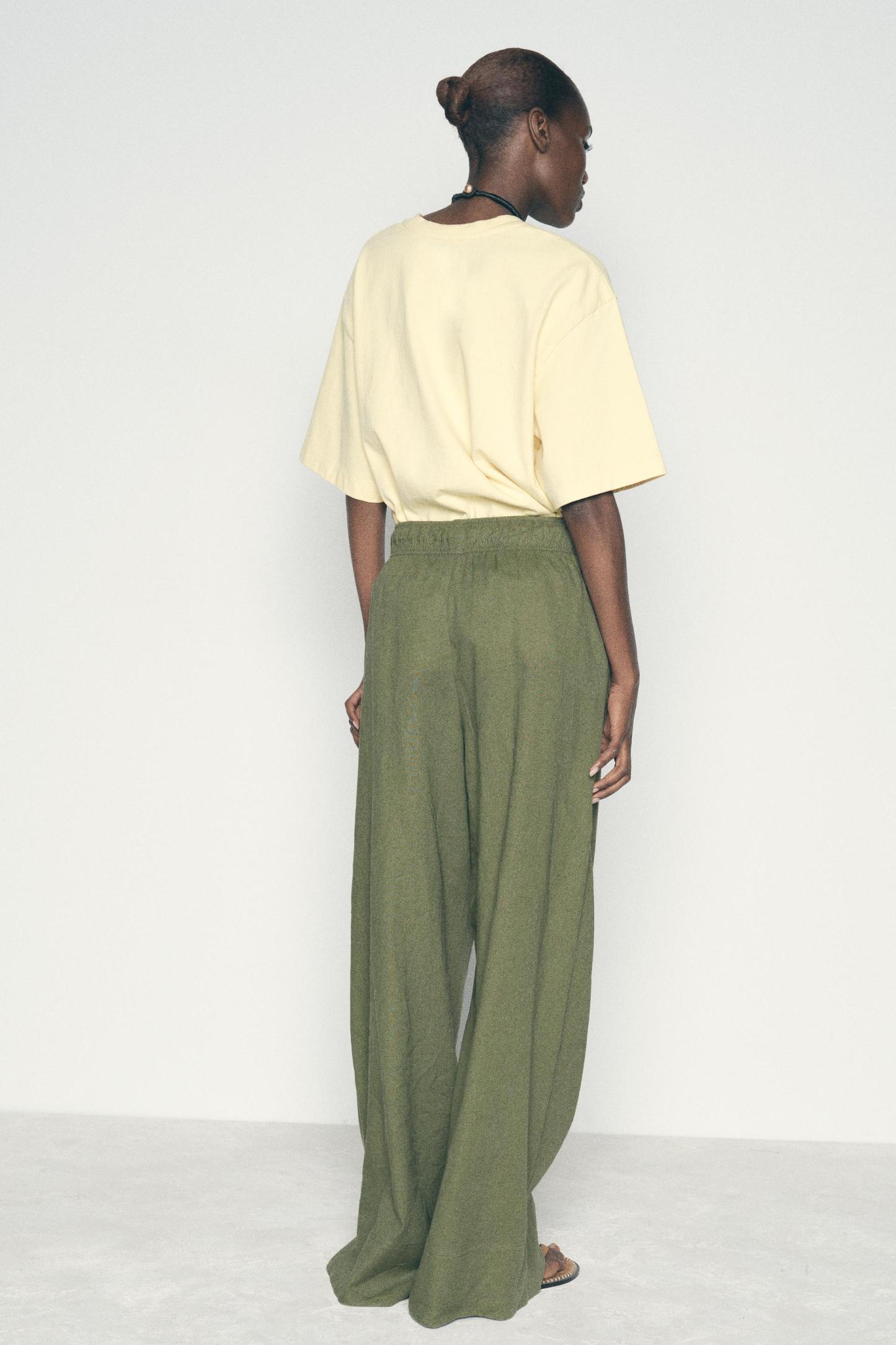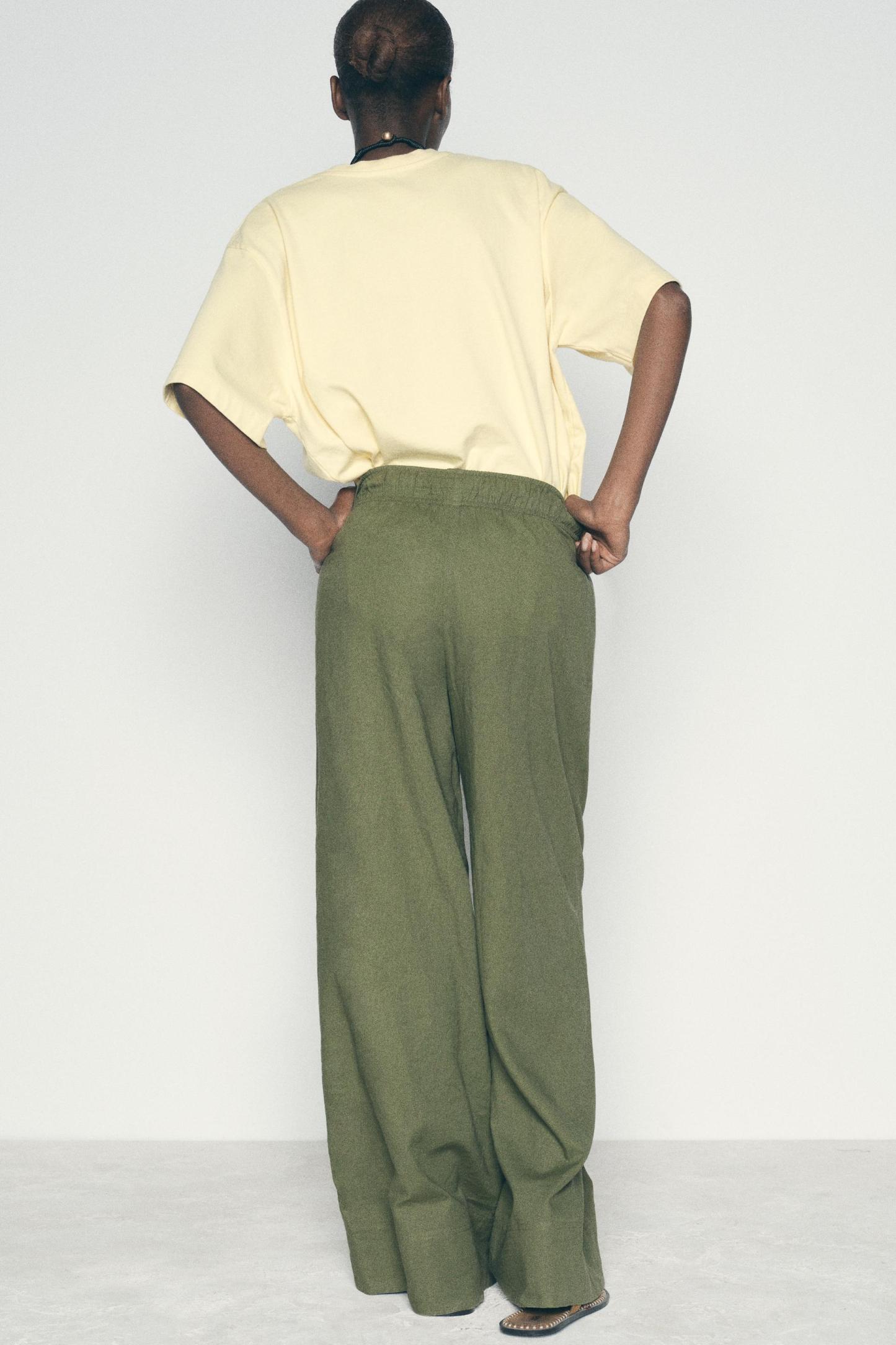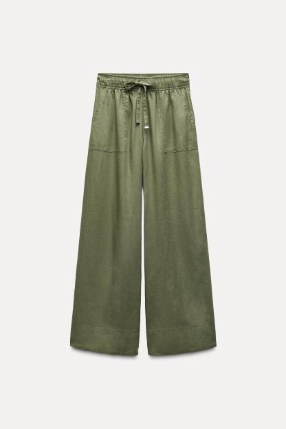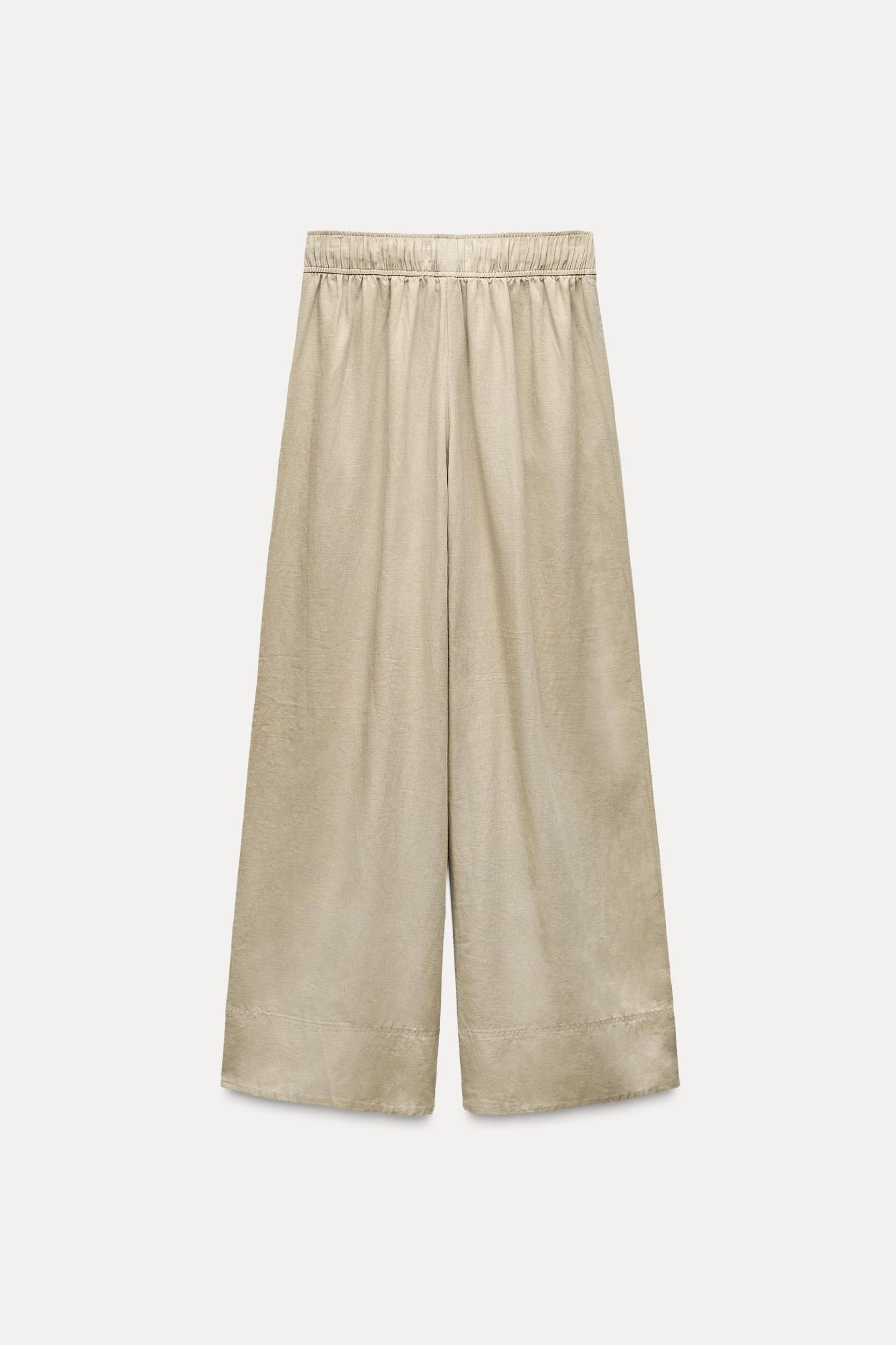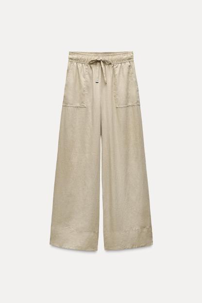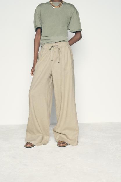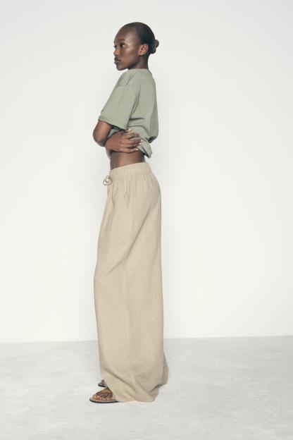 LINEN BLEND WIDE LEG PANTS
