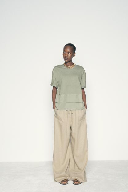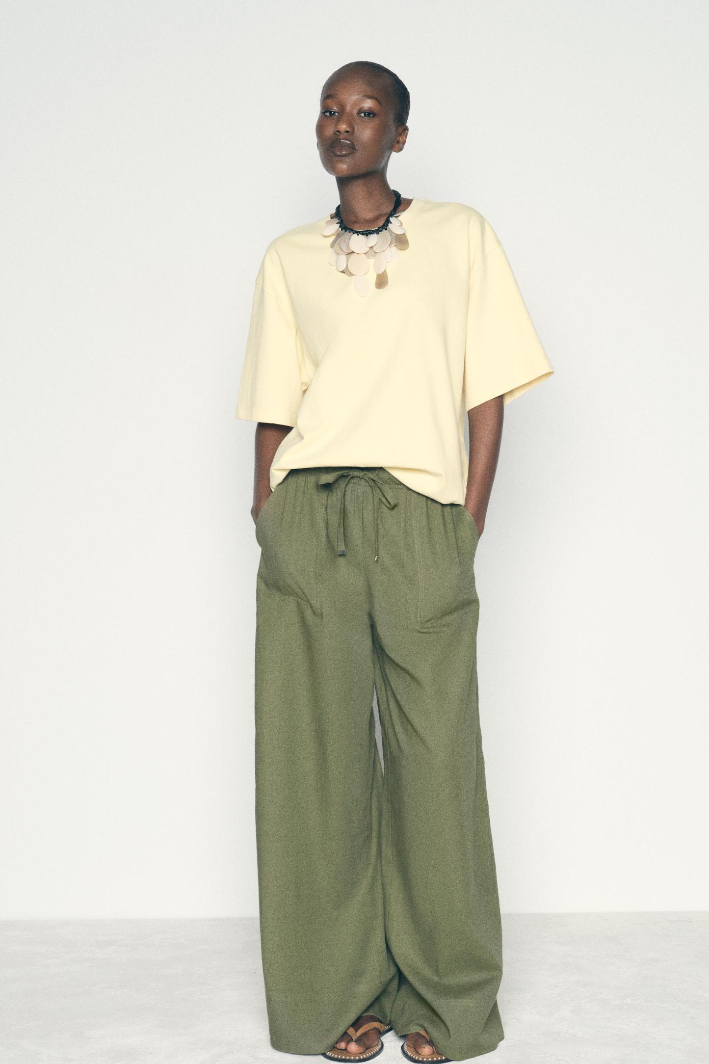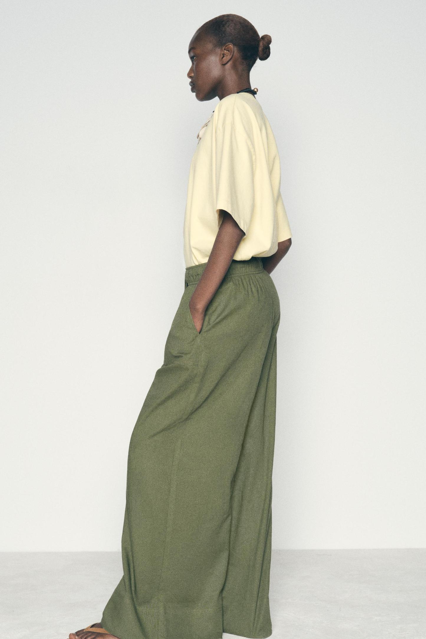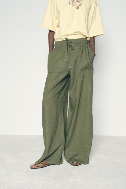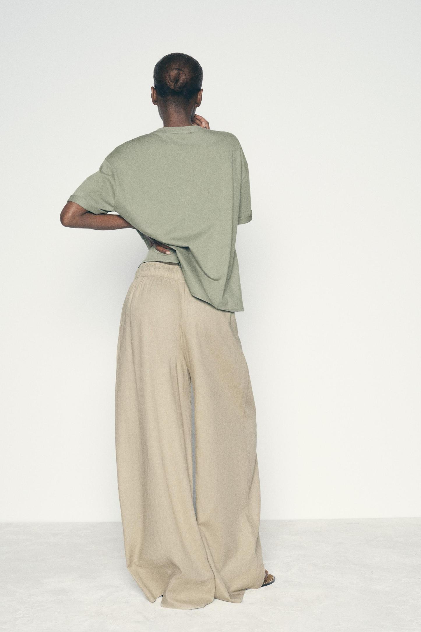 LINEN BLEND WIDE LEG PANTS