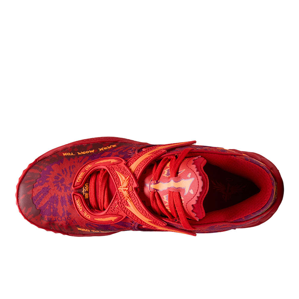 LaMelo Ball��s latest signature drop, MB.05 Crowd Surf, is fueled by his rockstar status and the fans who ride with him. This drop is for the ones who bring the noise, whether they��re in the stands or lacing up themselves. Dressed in a bold red tie-dye upper, the Crowd Surf is unmissable with sculpted overlays, molded barbed wire details, and Melo��s signature touches throughout �C from the gold wing straps on the heel to the molded 1 and skull on the outsole.