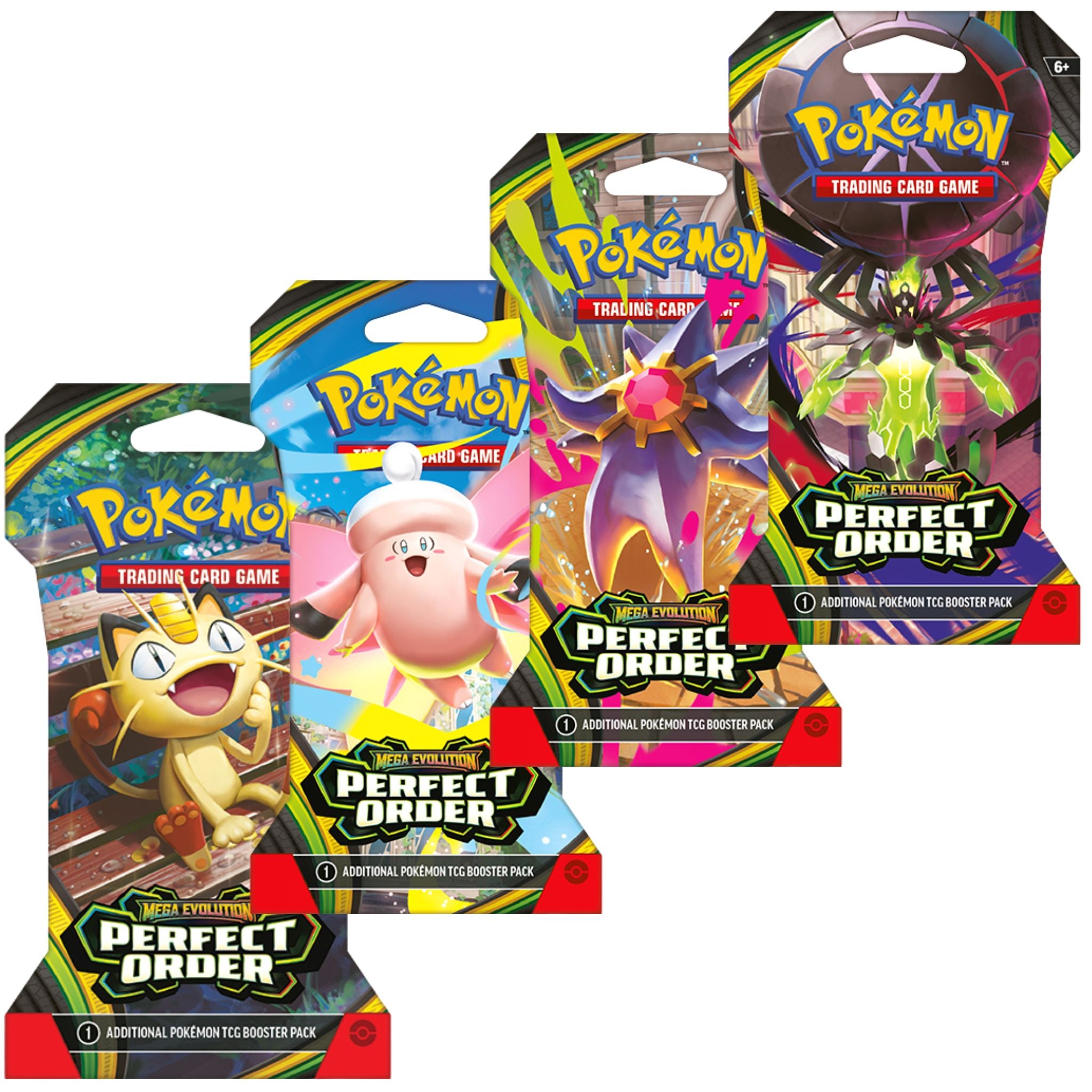 The pulse of the city beats in sync with the Pokémon and people who call it home—and preserving the order of it all is Mega Zygarde ex, the Legendary Pokémon who embodies strength in numbers! With threatening forces held at bay, peaceful days are ahead for the city’s residents, including Pokémon like Mega Clefable ex, Mega Starmie ex, and Meowth ex, in the Pokémon TCG: Mega Evolution—Perfect Order expansion!