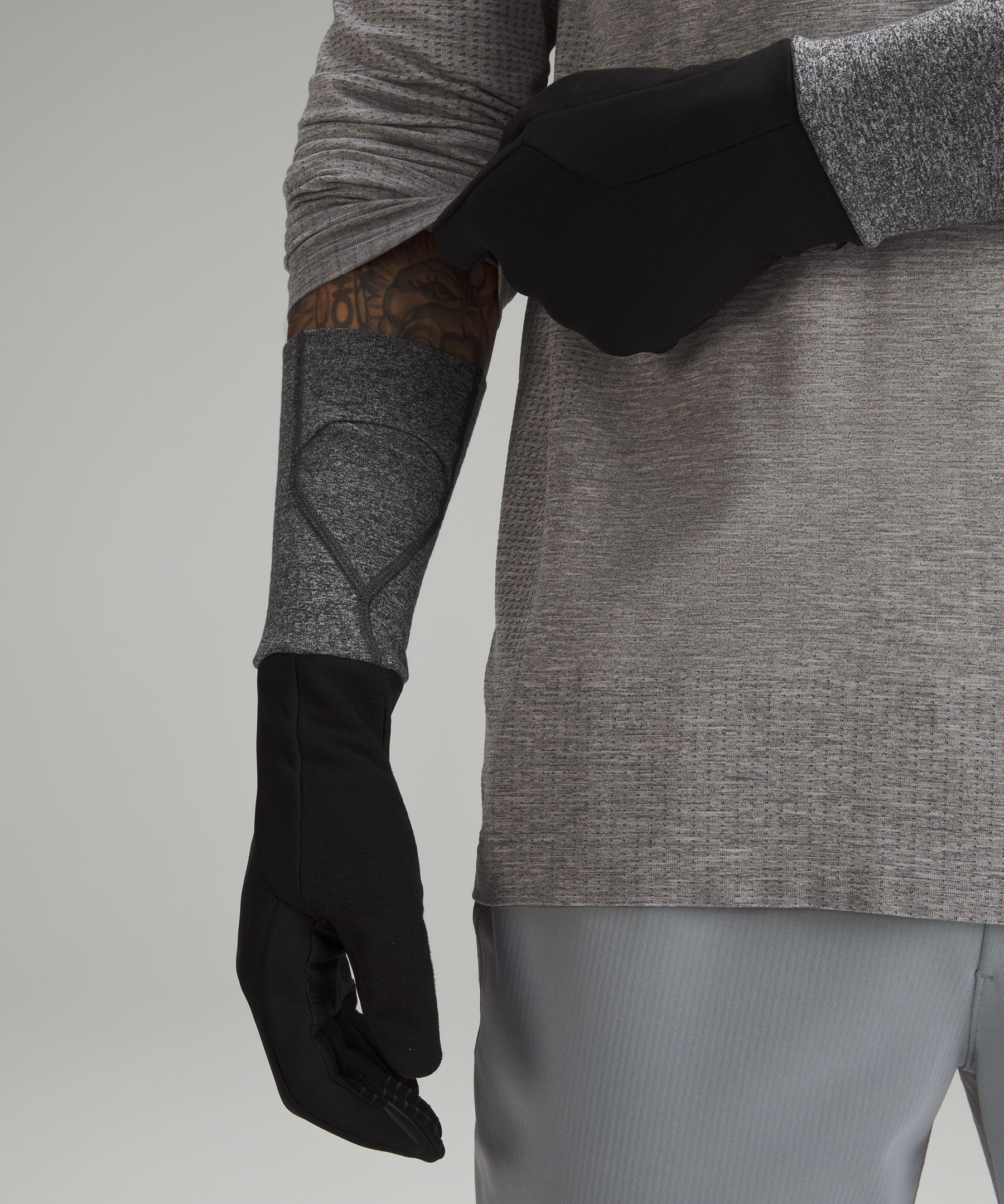 - When the temperature drops, pull the extended cuffs up over your hands and through the thumbholes to warm up. Pull them back down your wrists when your palms need a breather