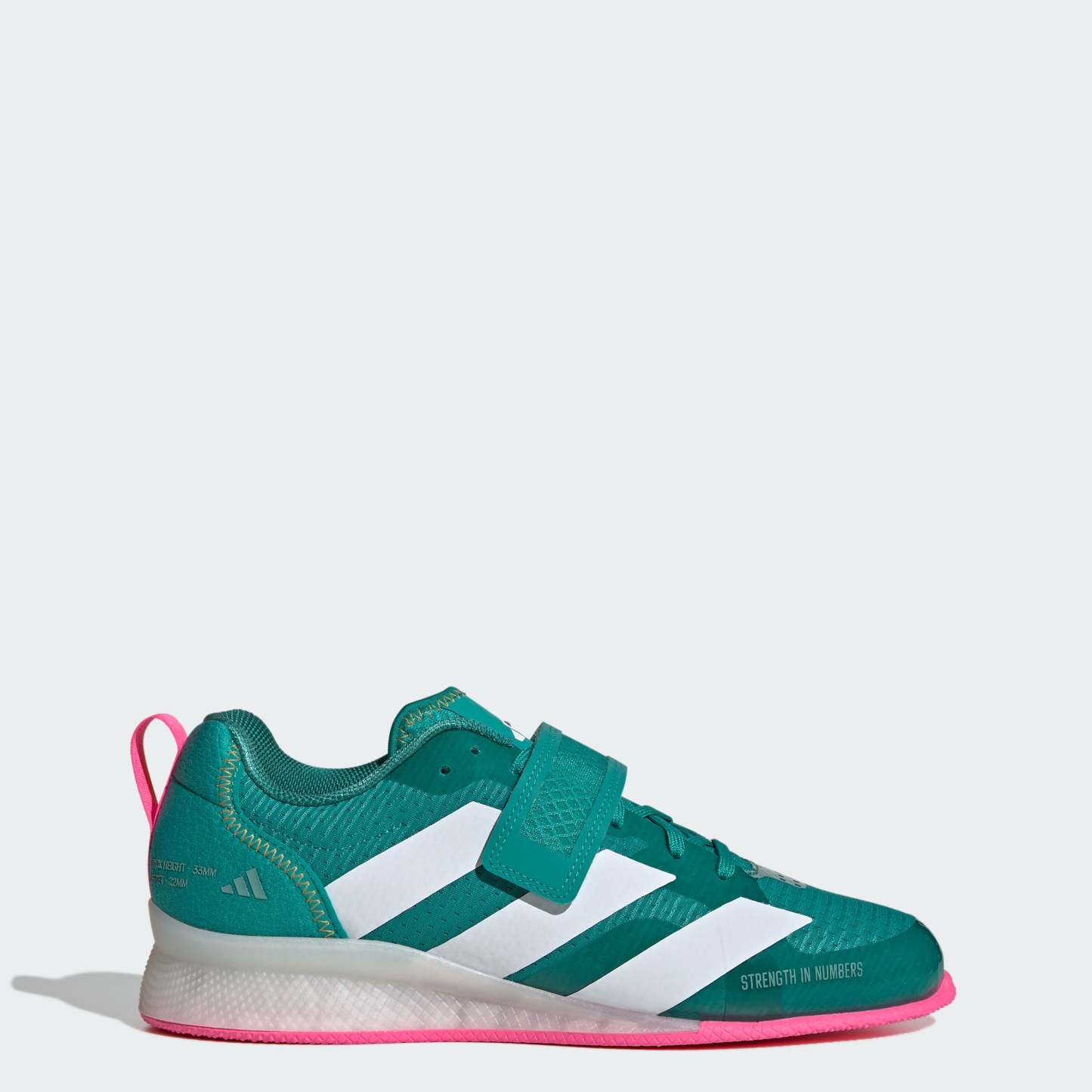 The perfect foundation for heavy lifts. These highly technical adithtdas Adipower Weightlifting 3 shoes come with a durable textile upper that securely locks you in with a strap and laces. The flexible forefoot gives your toes room to splay and a 22 mm heel lift helps you find a comfortable posture on the mat. This product features at least 20% recycled materials. By reusing materials that have already been created, we help to reduce waste and our reliance on finite resources and reduce the footprint of the products we make.