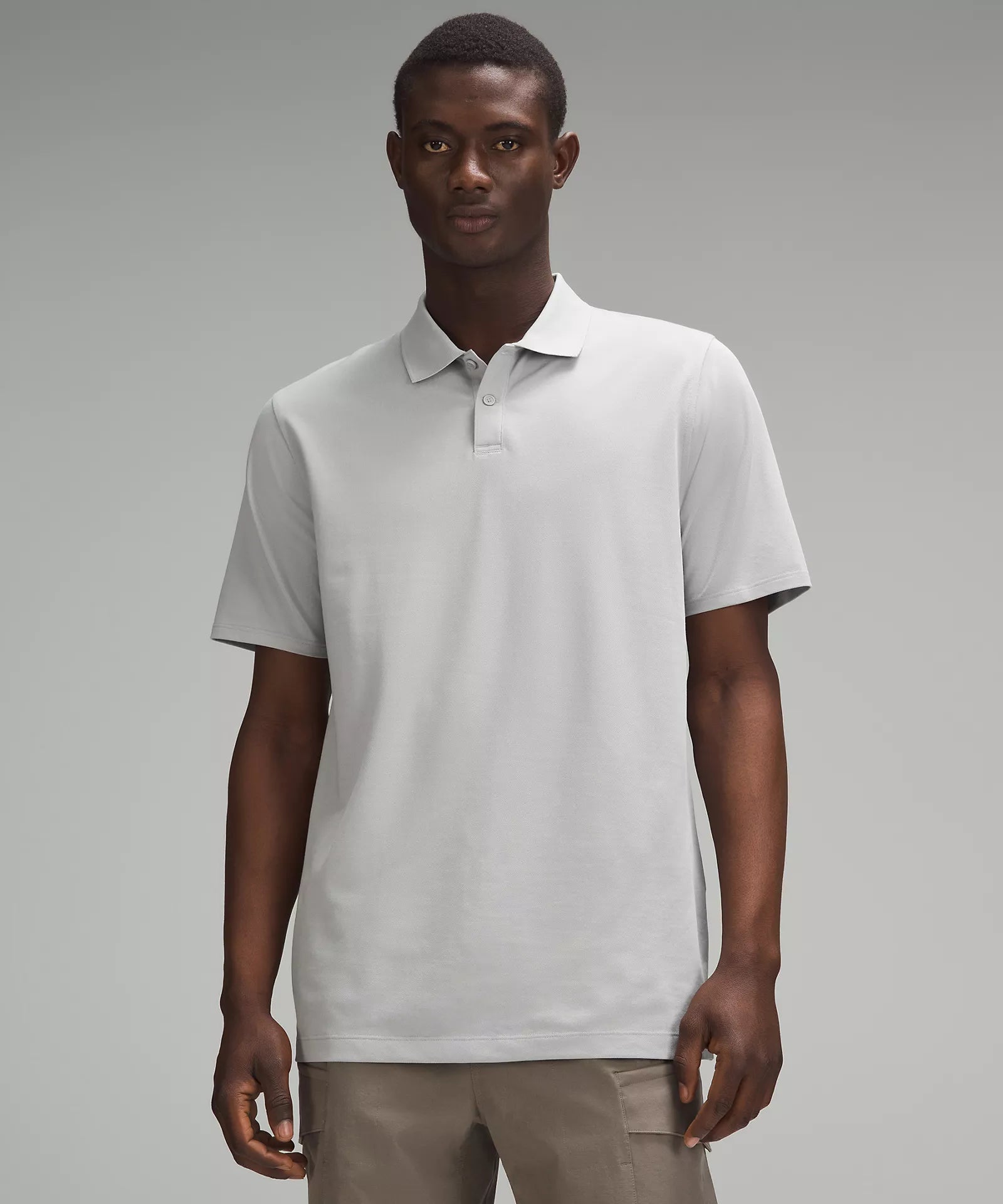 Luluthtlemon Men's Classic-Fit Pique Short-Sleeve Polo Shirt | Silver Drop