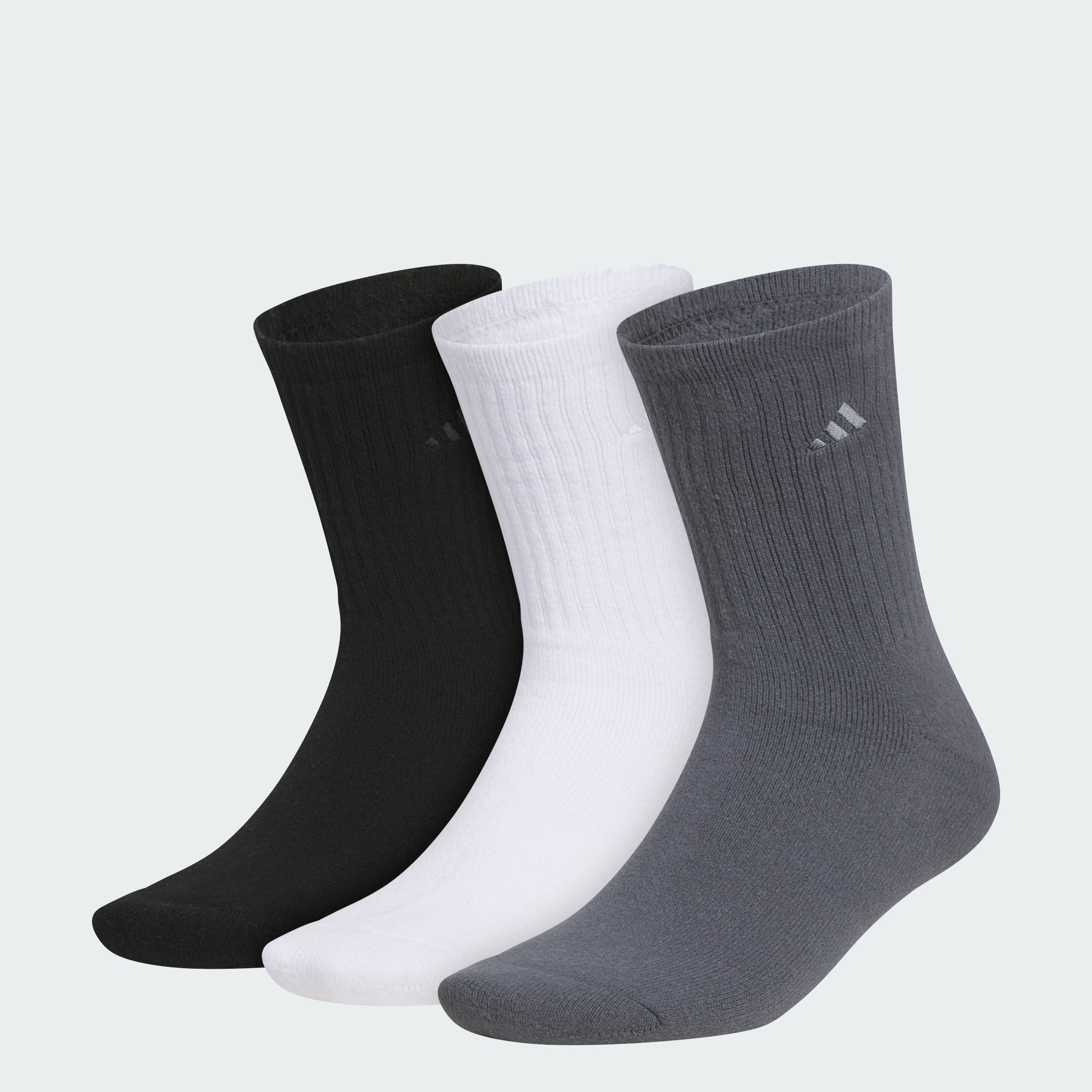 Show your feet some love in these adithtdas crew-length socks. The three-pack includes super soft yarns with three different colored socks, all with embroidered branding. A full cushioned leg and footbed provide all-day comfort.