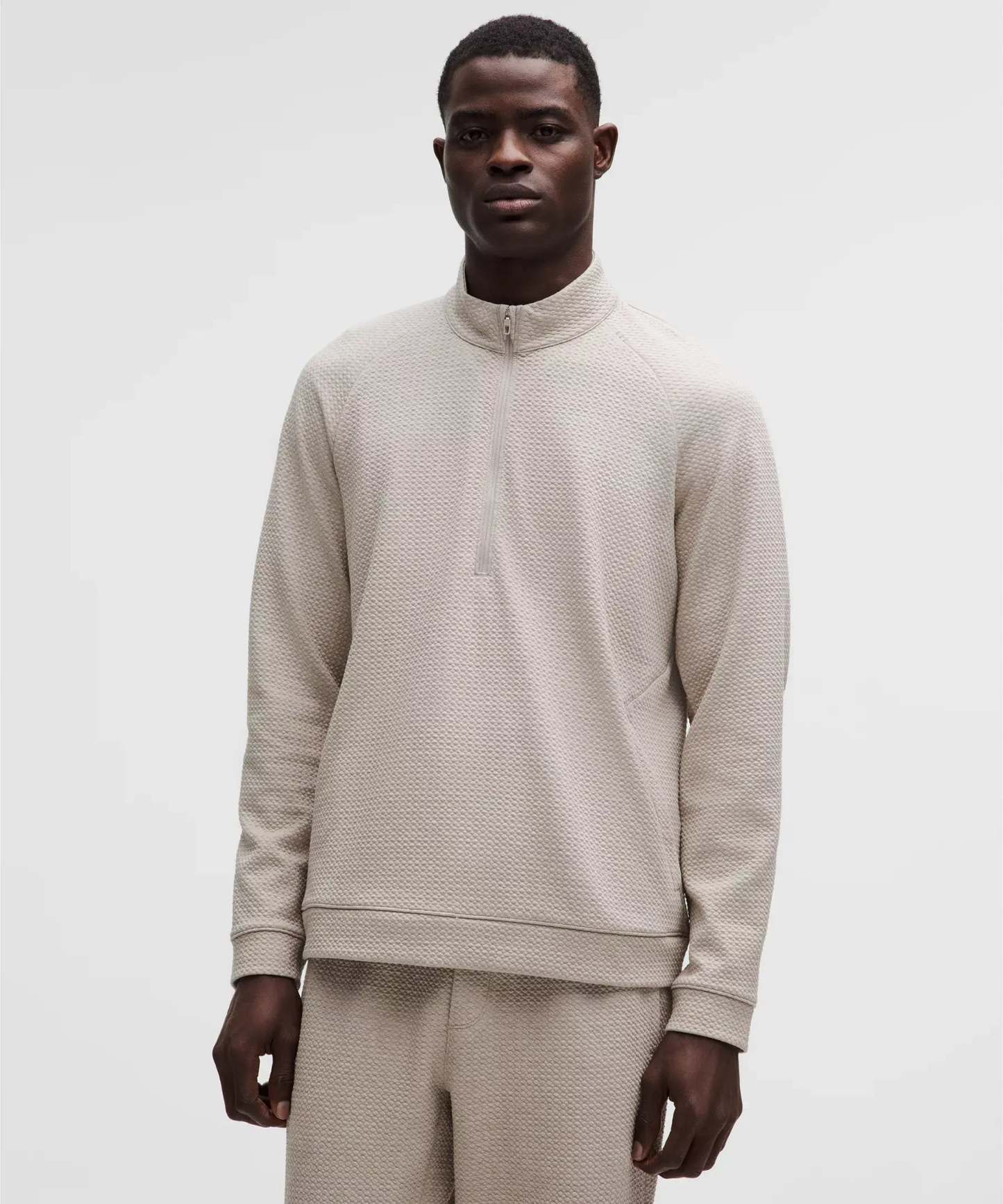 The real MVP of your sweats drawer. This textured, cotton-blend half zip takes top marks for comfortable versatility. Textured, cotton blend. Classic Fit.?