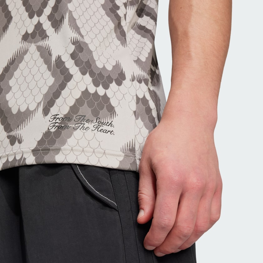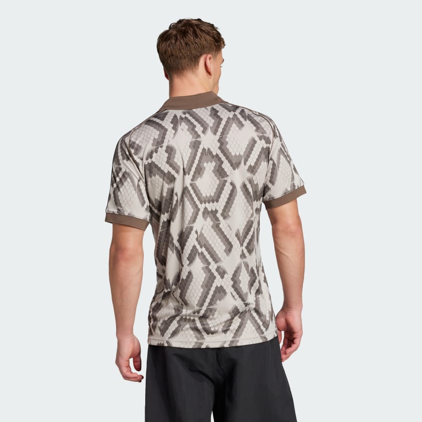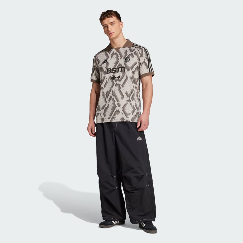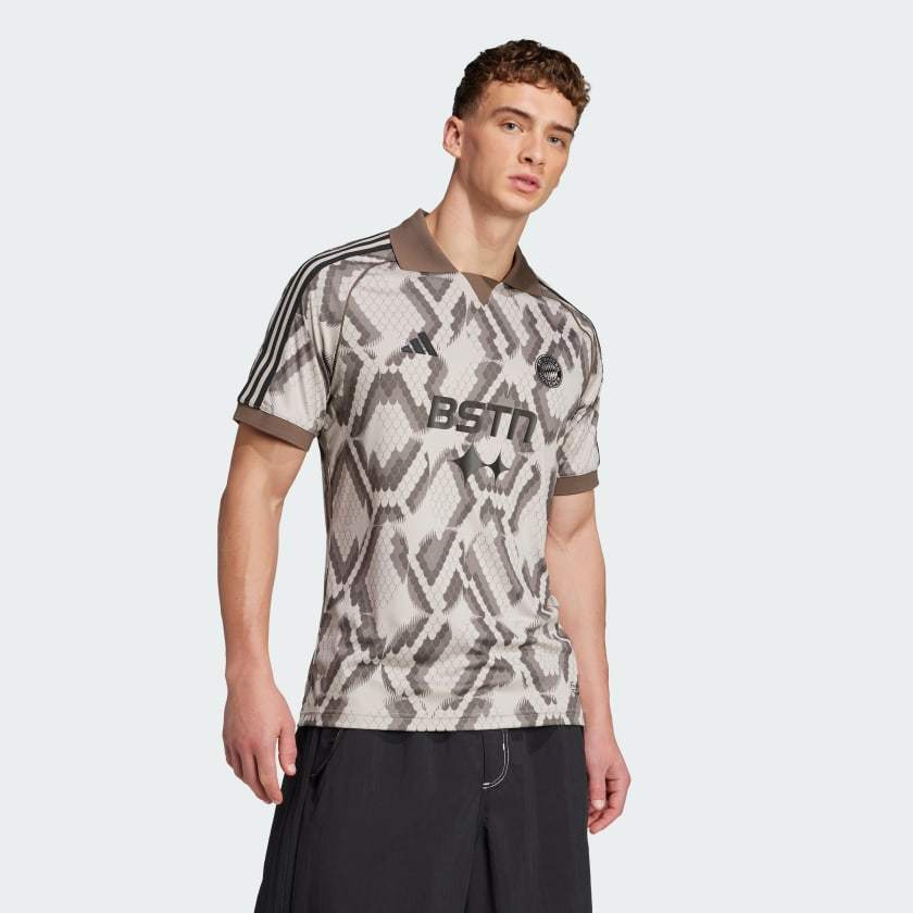Represent FC Bayern in this eye-catching adithtdas jersey. Part of a collaboration with BSTN, it displays an all-over design incorporating the Munich brand's signature snakeskin print. Standing out on the chest, a club-inspired badge shows your soccer pride.