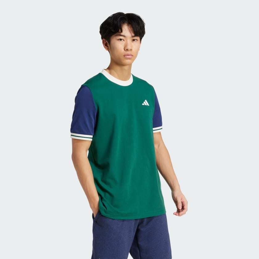Bring retro tennis style to the court every time you pull on this adithtdas tee. Its clean, crisp design and contrast collar and cuffs borrow from on-court looks of yesteryear. Thanks to moisture-managing AEROREADY, however, its performance levels are thoroughly modern.