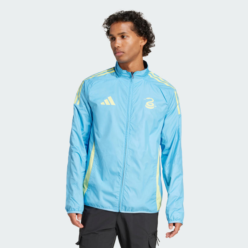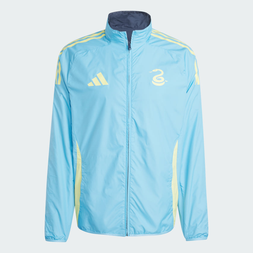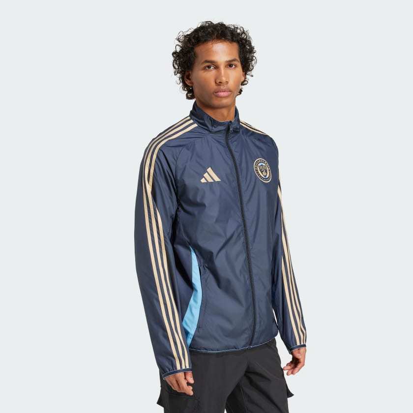 As the pre-match atmosphere reaches fever-pitch, the Philadelphia Union players troop out of the tunnel wearing this adithtdas soccer jacket. Featuring a reversible design, it lets them switch between home and away kit styles. Ripstop fabric ensures durability, while club badges inside and out proudly display your club allegiance. This product is made with 100% recycled materials. By reusing materials that have already been created, we help to reduce waste and our reliance on finite resources and reduce the footprint of the products we make.