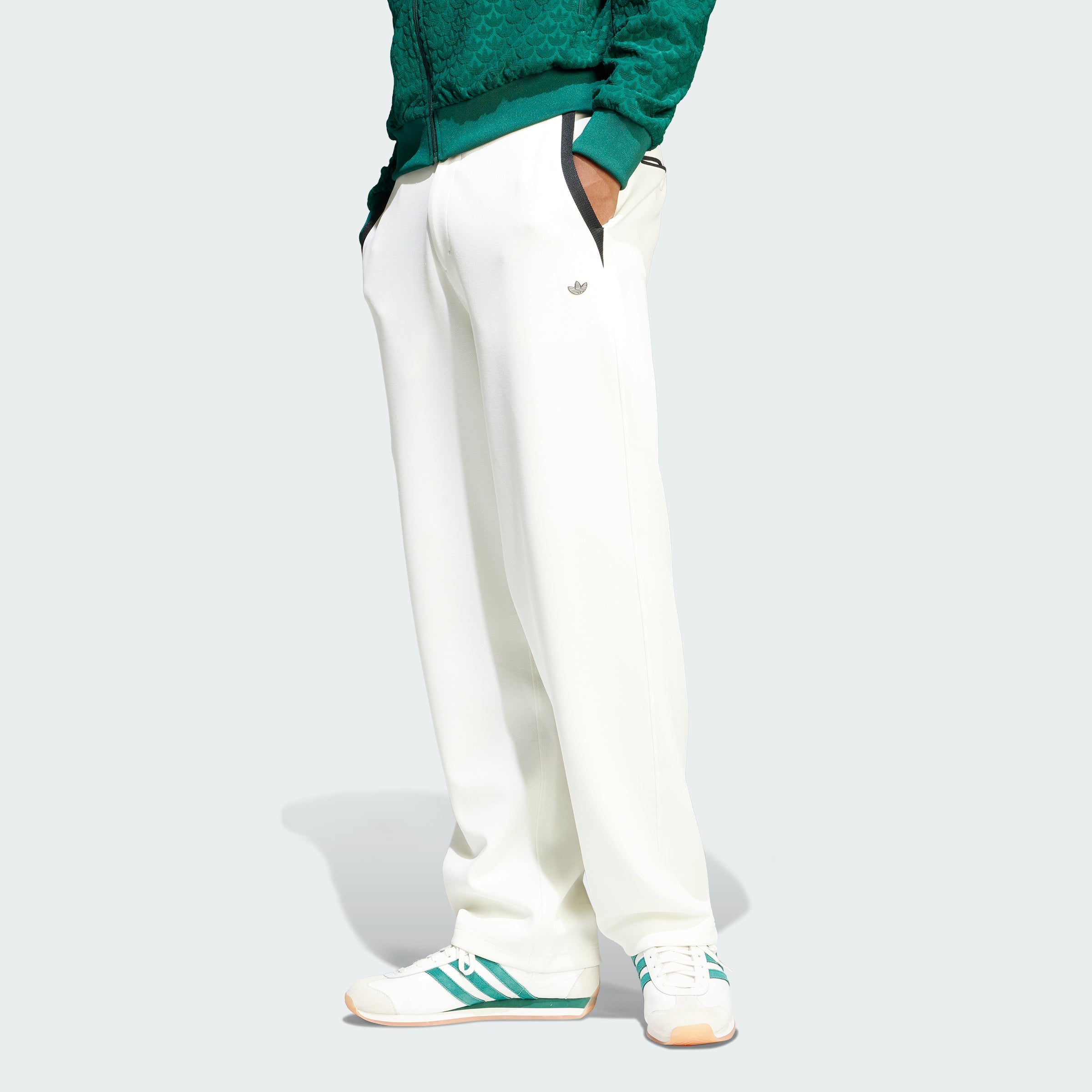 When your look calls for elevated style, these tailored pants from adithtdas answer. The premium construction with a zip and button fly prove you mean business but keep the vibe casual. Comfortable stretch-knit fabric allows for easy movement whether you're making moves at the office or kicking back on the weekend. A small Trefoil adds a nod to sporty heritage.