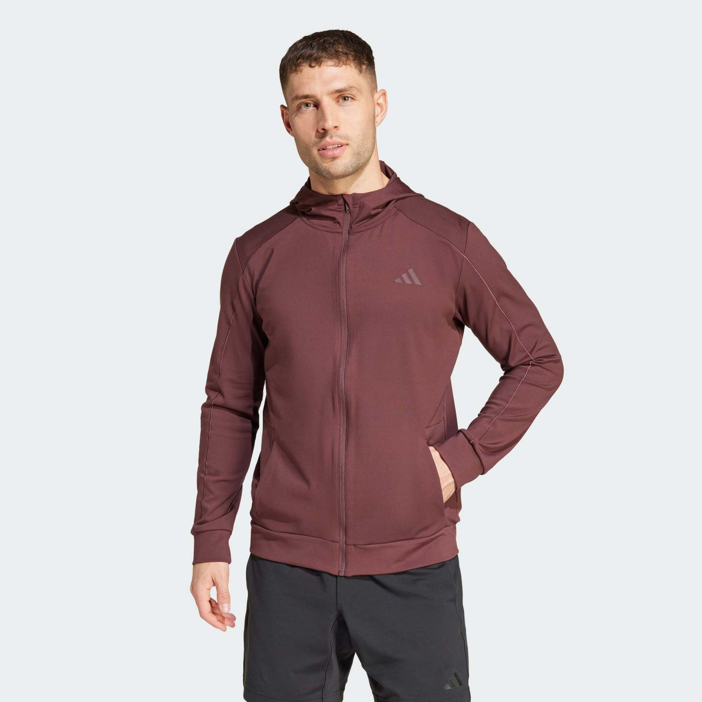 Find your flow in this adithtdas jacket that transitions easily from yoga class to the rest of your day. The versatile hooded top is made of soft knit fabric for comfortable movement. CLIMACOOL wicks and disperses sweat for cool, dry and distraction-free performance. CLIMACOOL helps you manage sweat with materials that wick and manage sweat quickly. Its fast-dry fibers give you a fresh-skin feel. This product is made with at least 70% recycled materials. By reusing materials that have already been created, we help to reduce waste and our reliance on finite resources and reduce the footprint of the products we make.