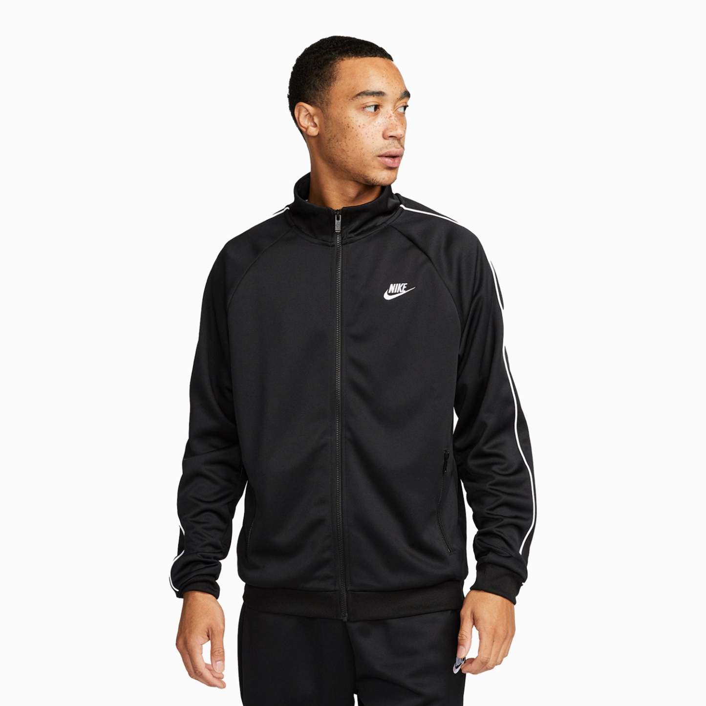 Soft knit fabric makes this full-zip jacket a comfortable layer to throw on over a tee for lightweight warmth when you need it. A classic stand collar and piping down the sleeves give you a throwback, track-inspired finish.
