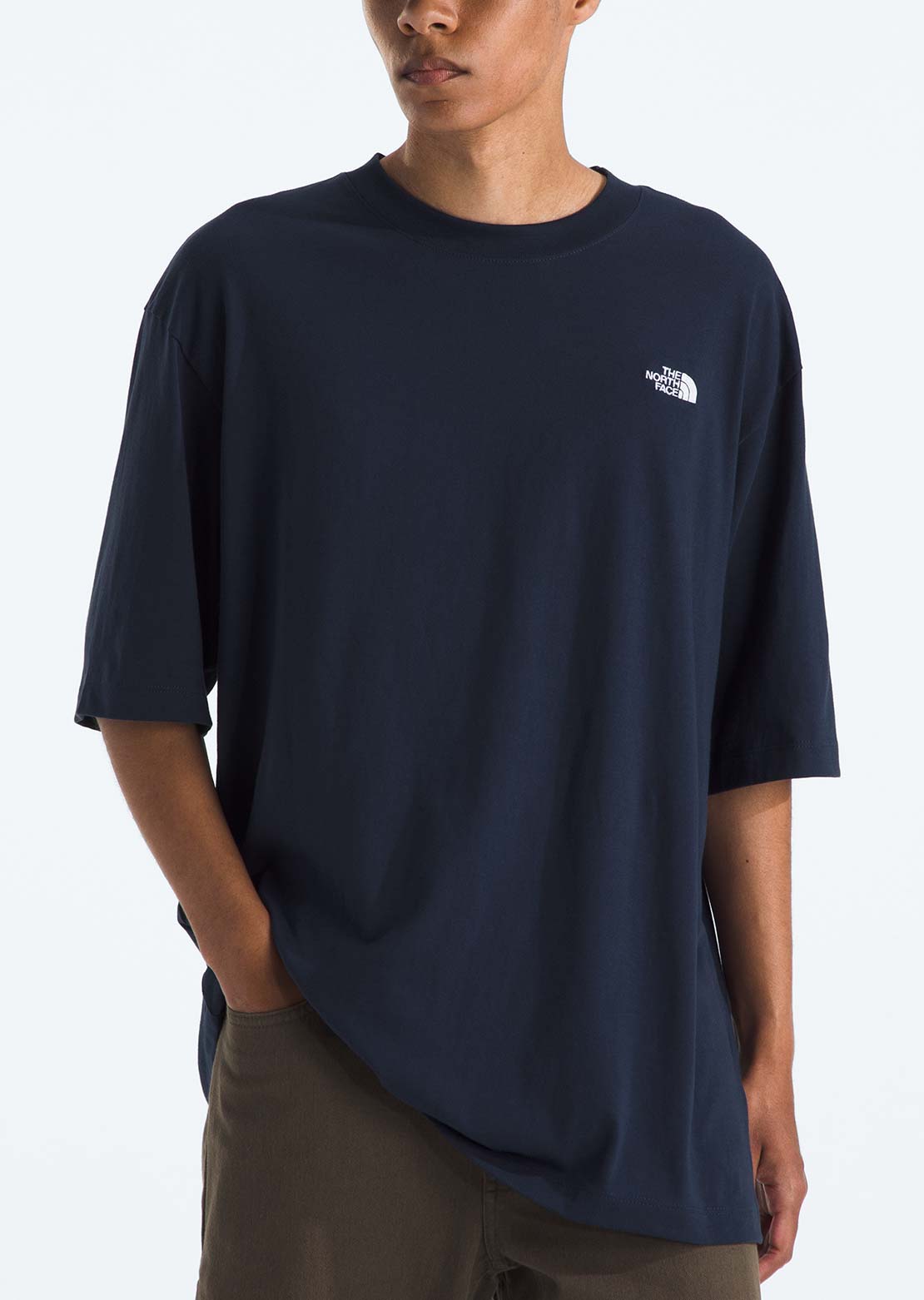Your favorite tee, but made better. The roomy, ultra-comfortable Men’s TNF™ Essential Oversized Short-Sleeve Tee is made from a blend of recycled fabrics and Climate Conscious Cotton grown by farmers using agricultural practices that help build soil carbon.