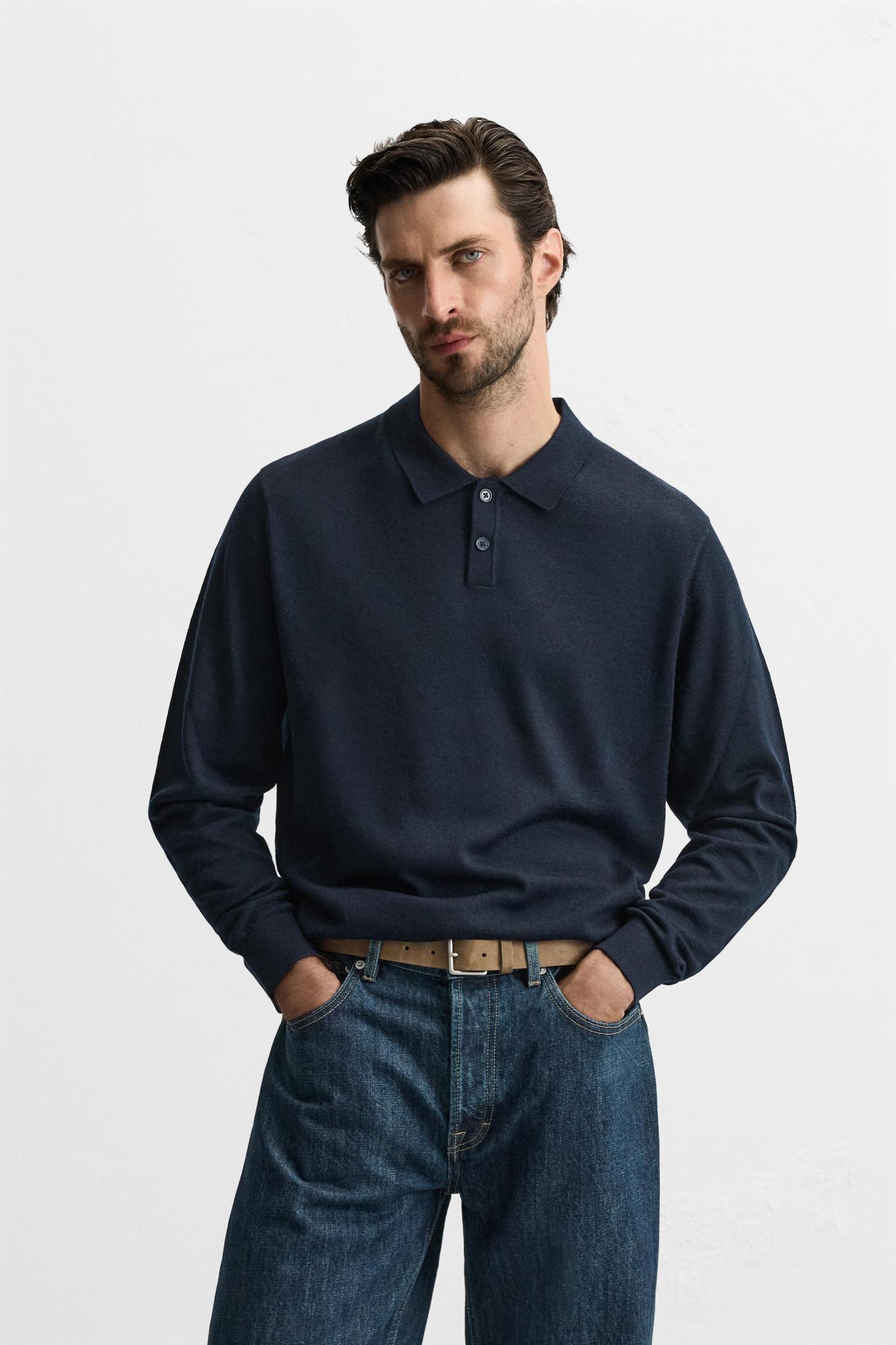 MERINO WOOL KNIT POLO SHIRT