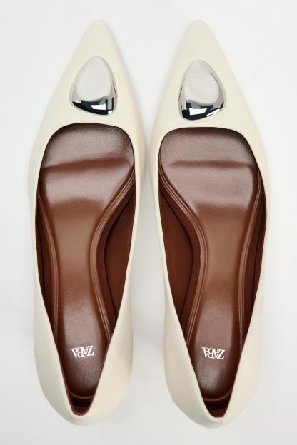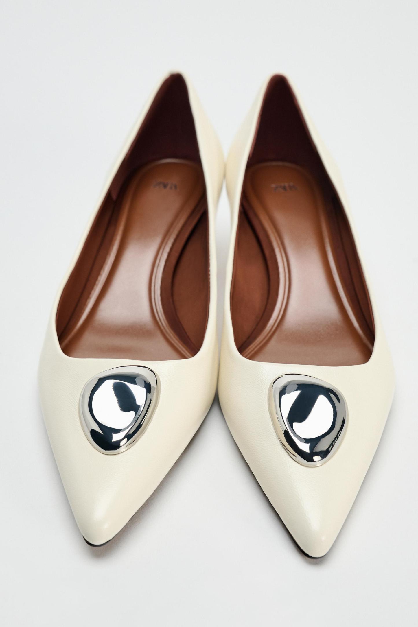METAL DETAIL LEATHER HIGH HEEL SHOES
