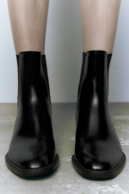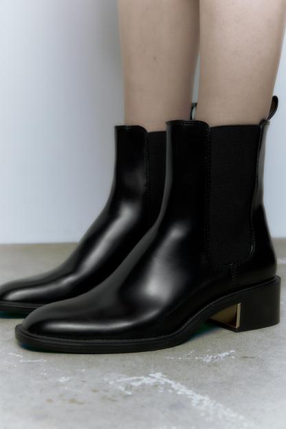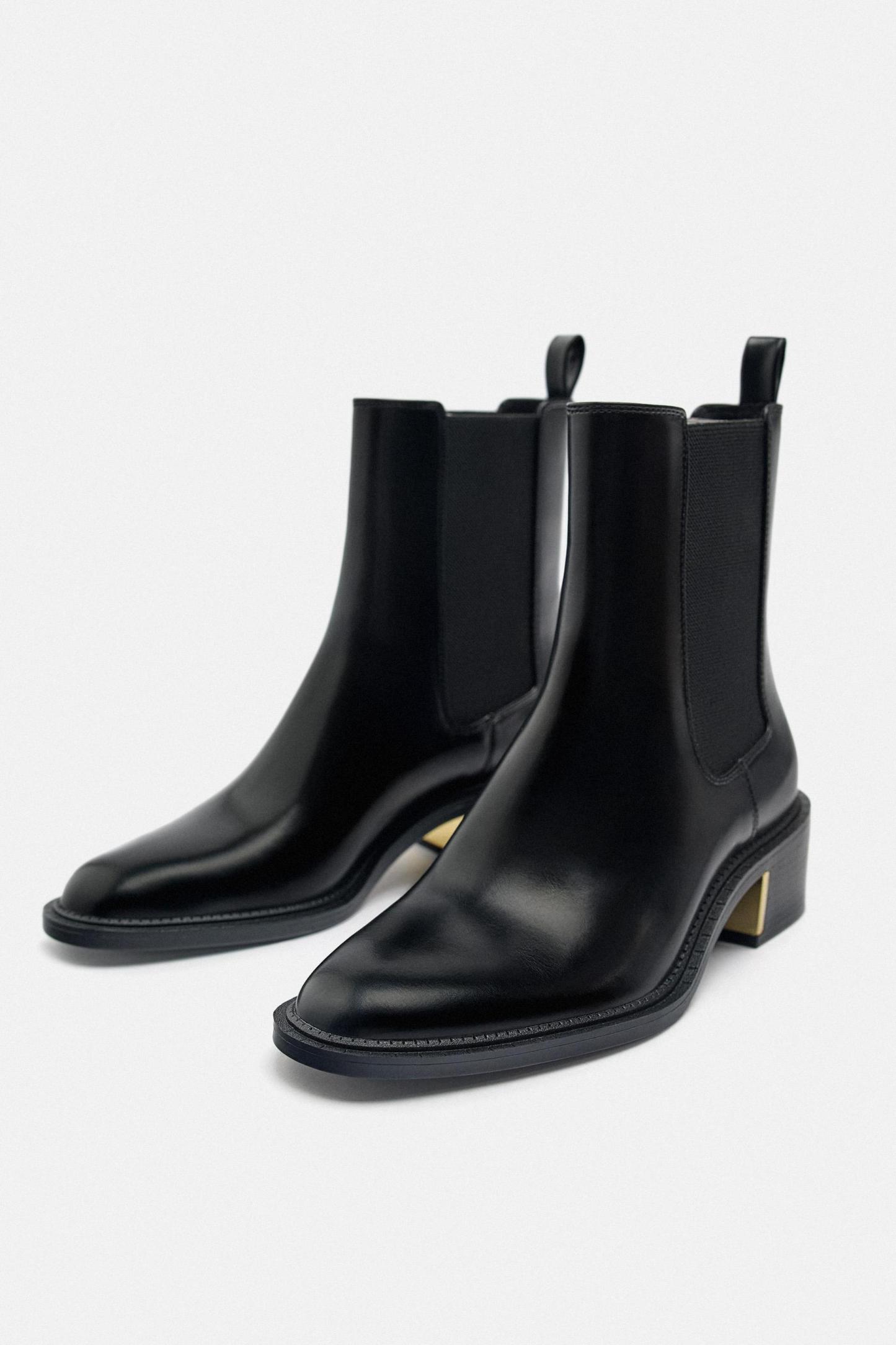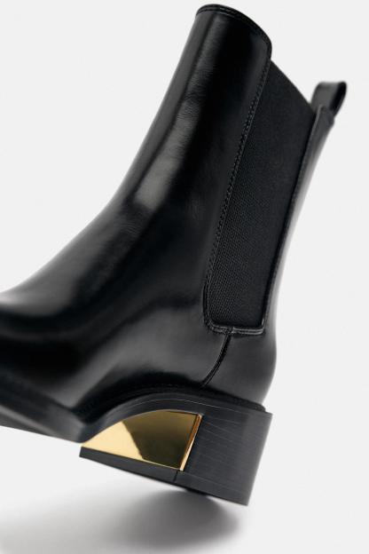 METAL TRIM BLOCK HEEL ANKLE BOOTS