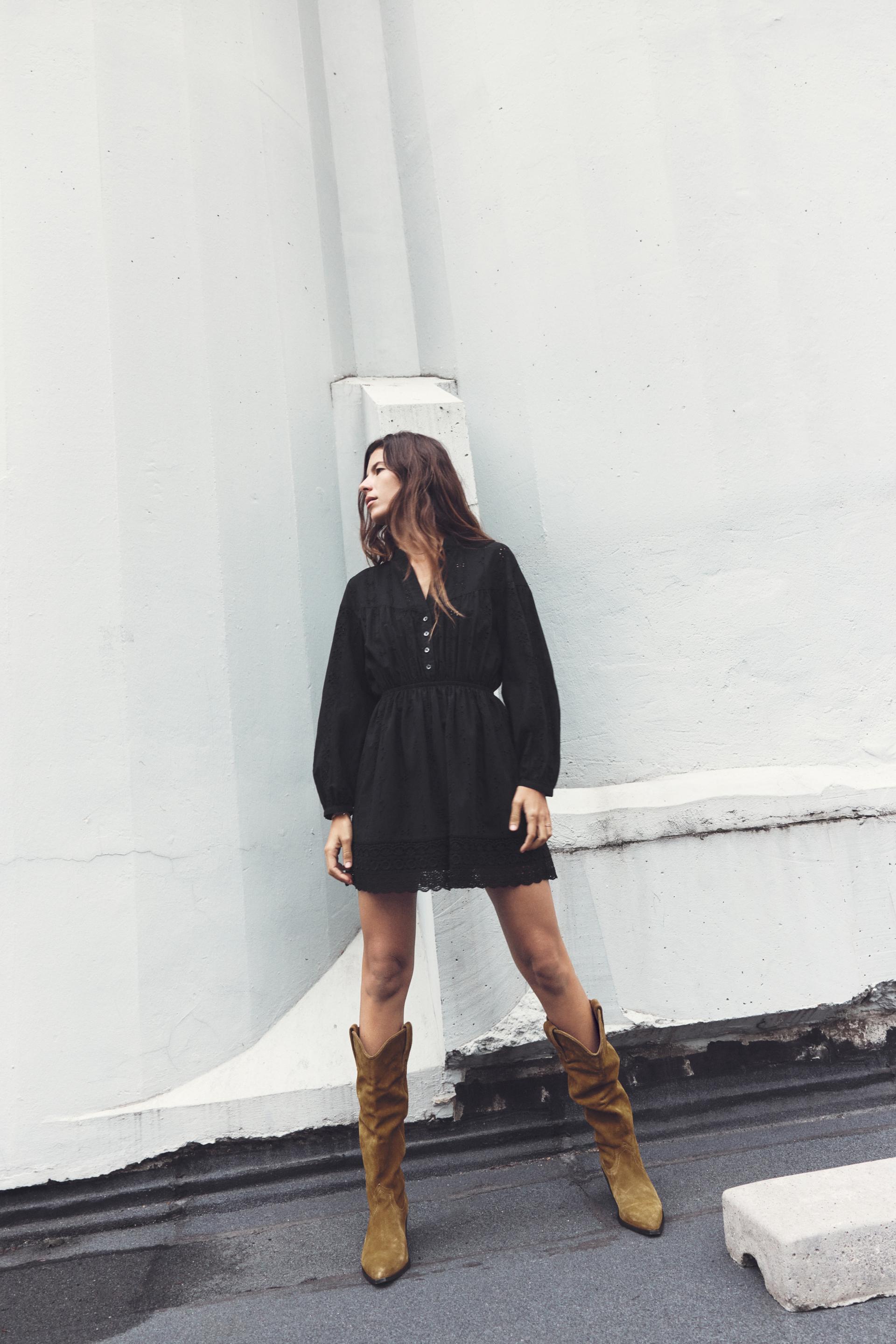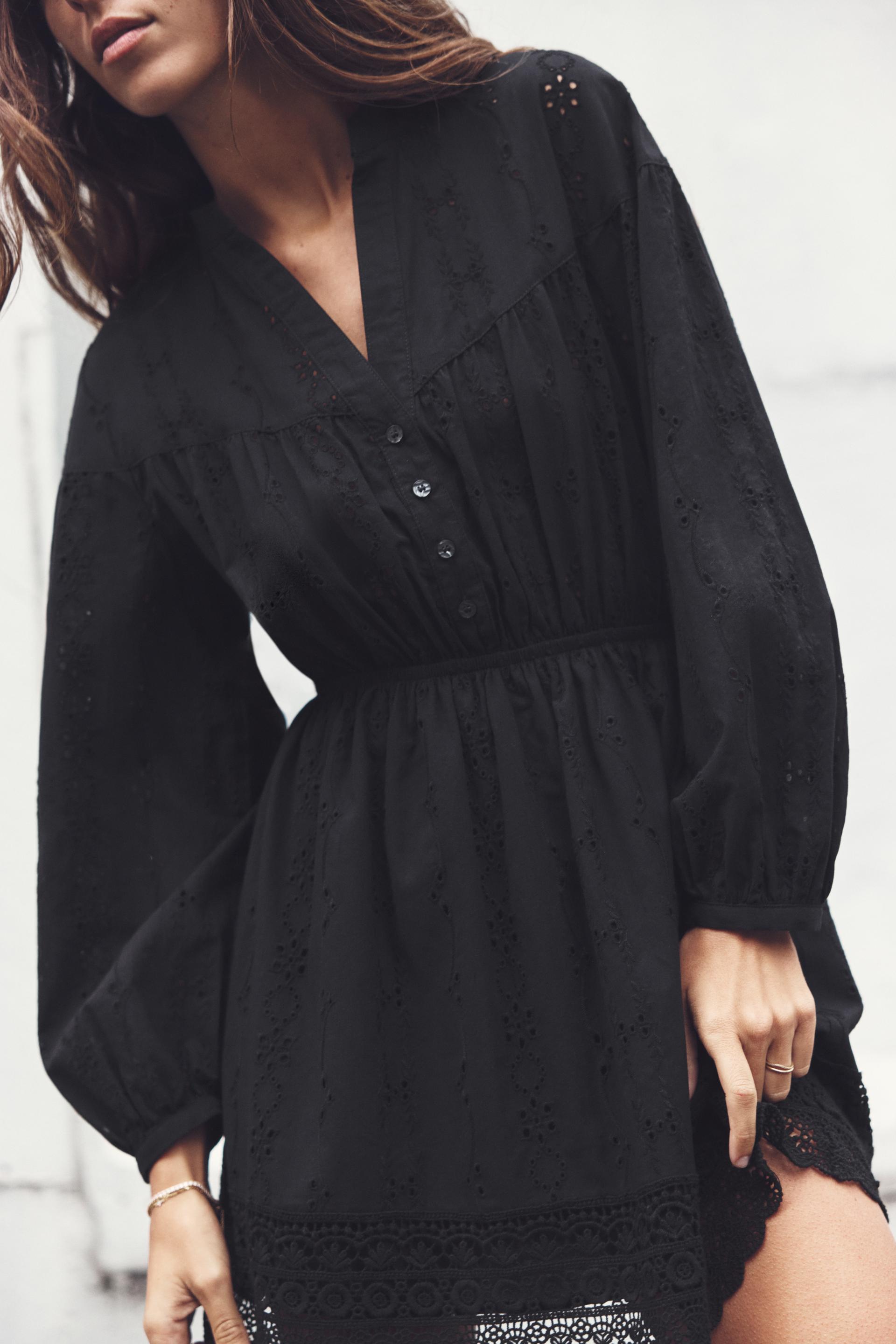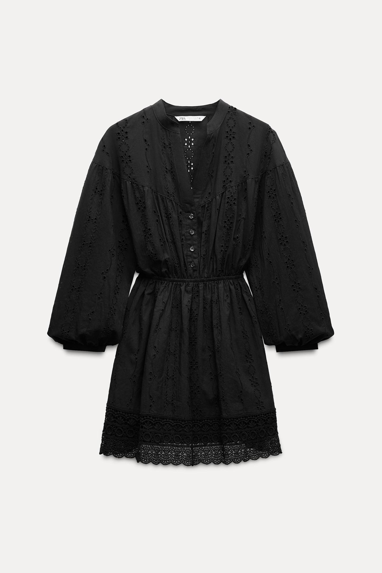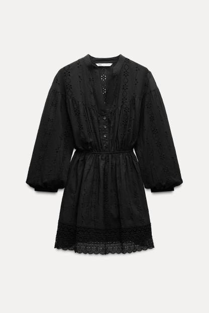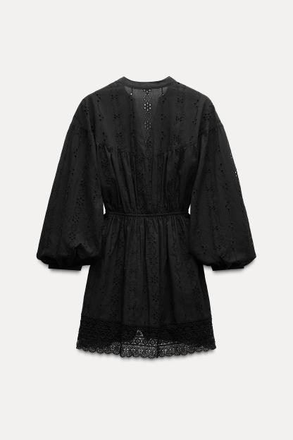 OPENWORK EMBROIDERED MINI DRESS