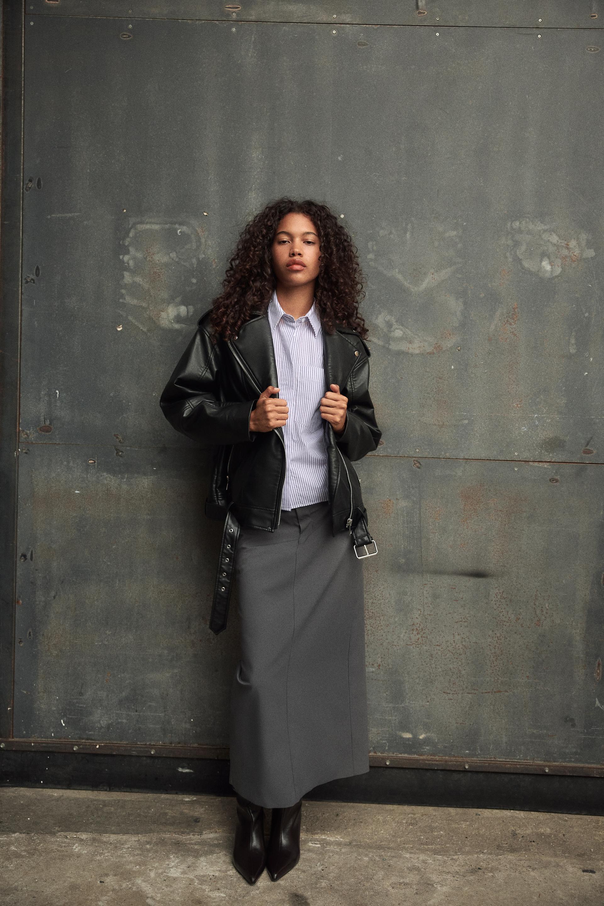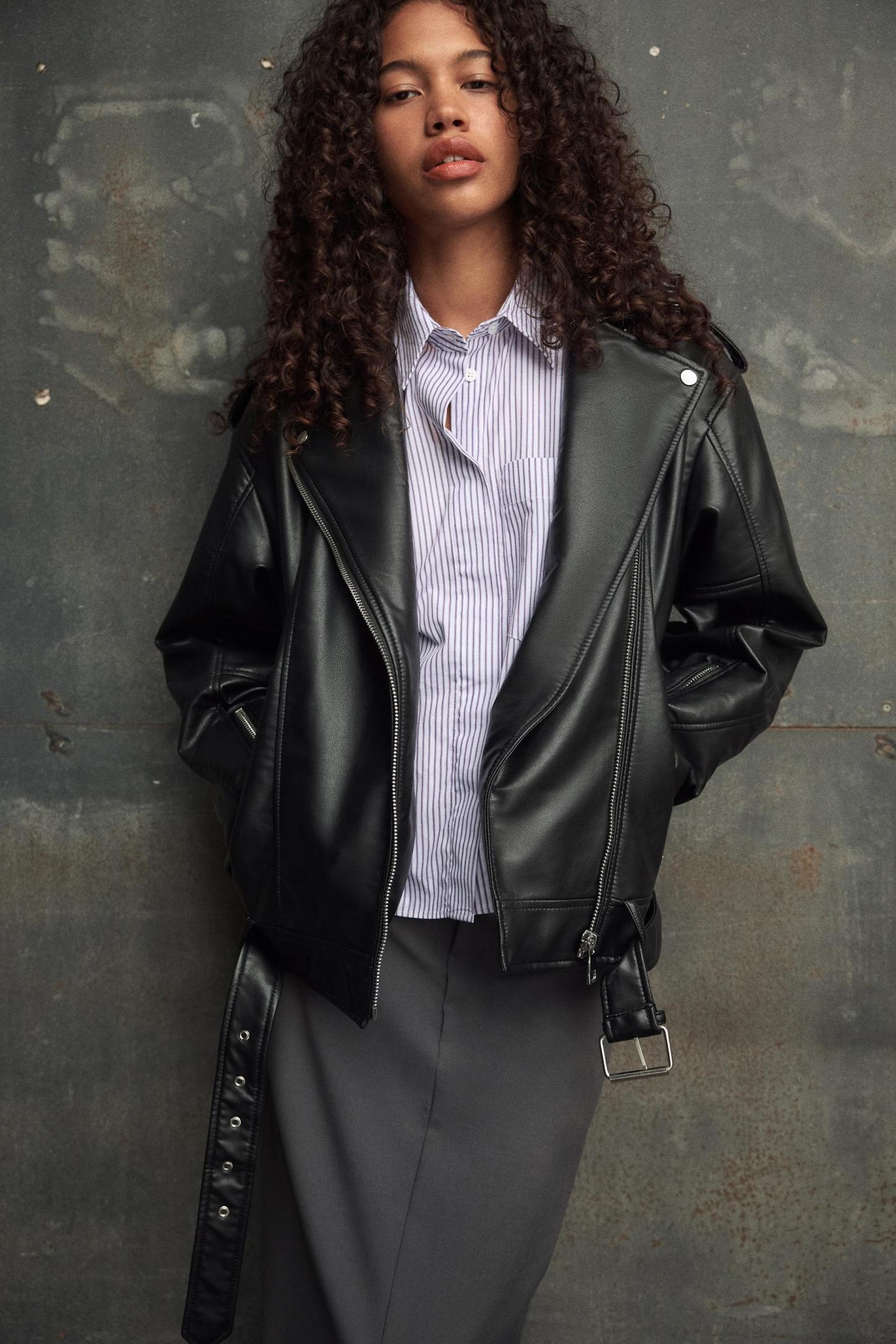 OVERSIZED FAUX LEATHER BIKER JACKET