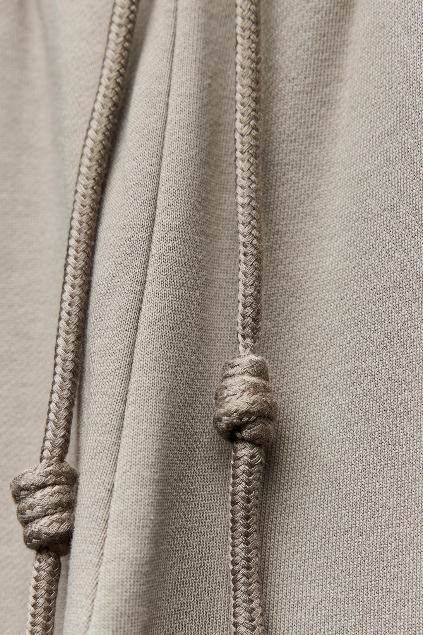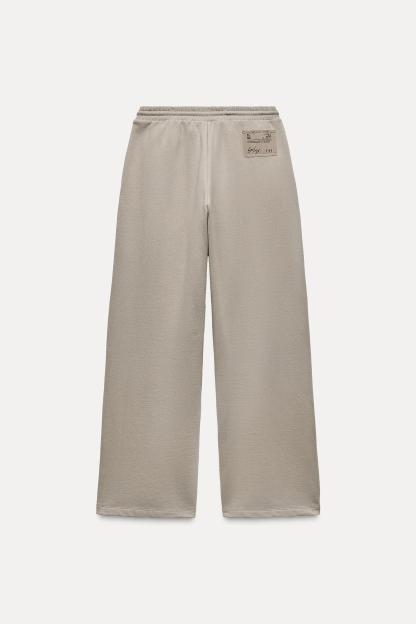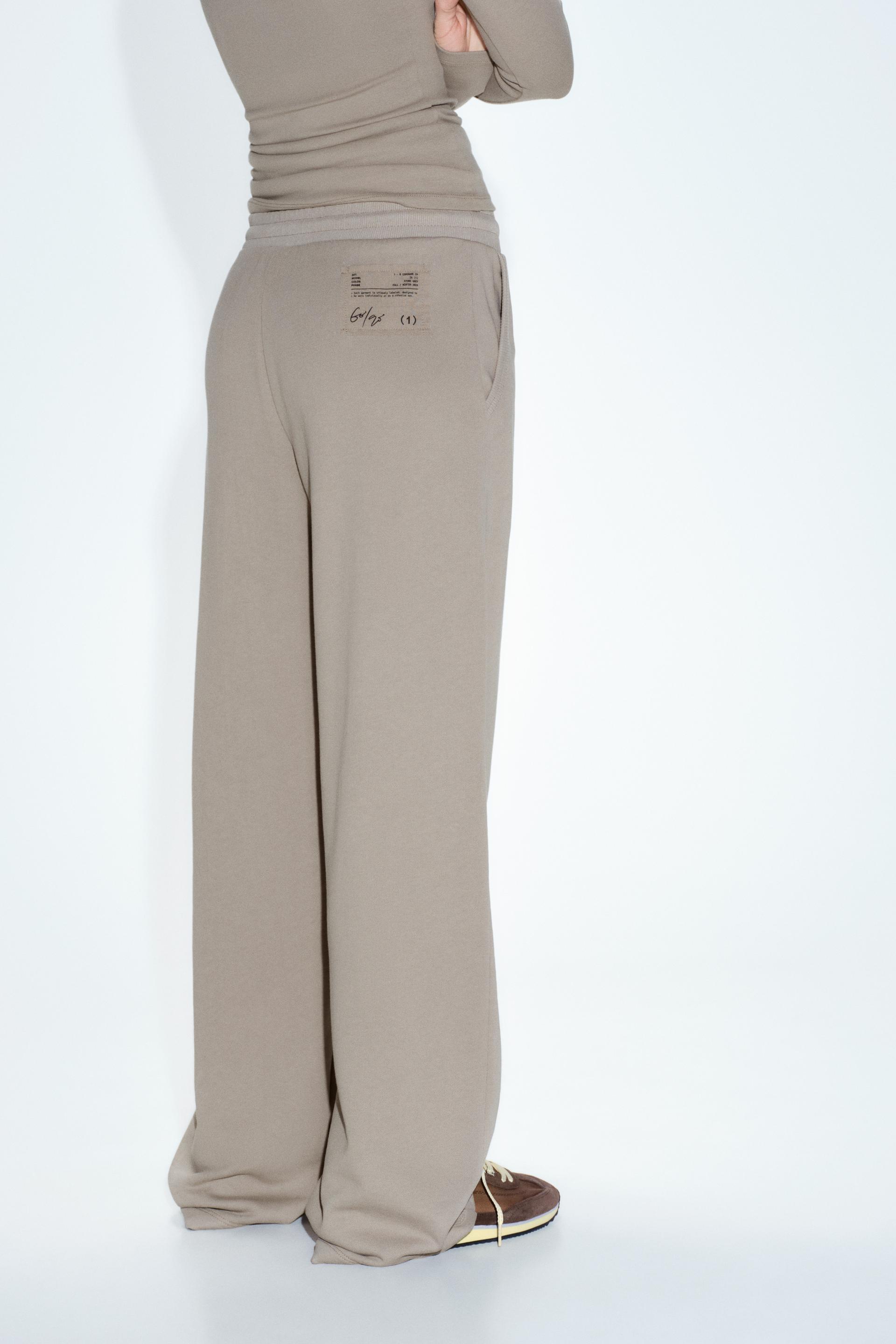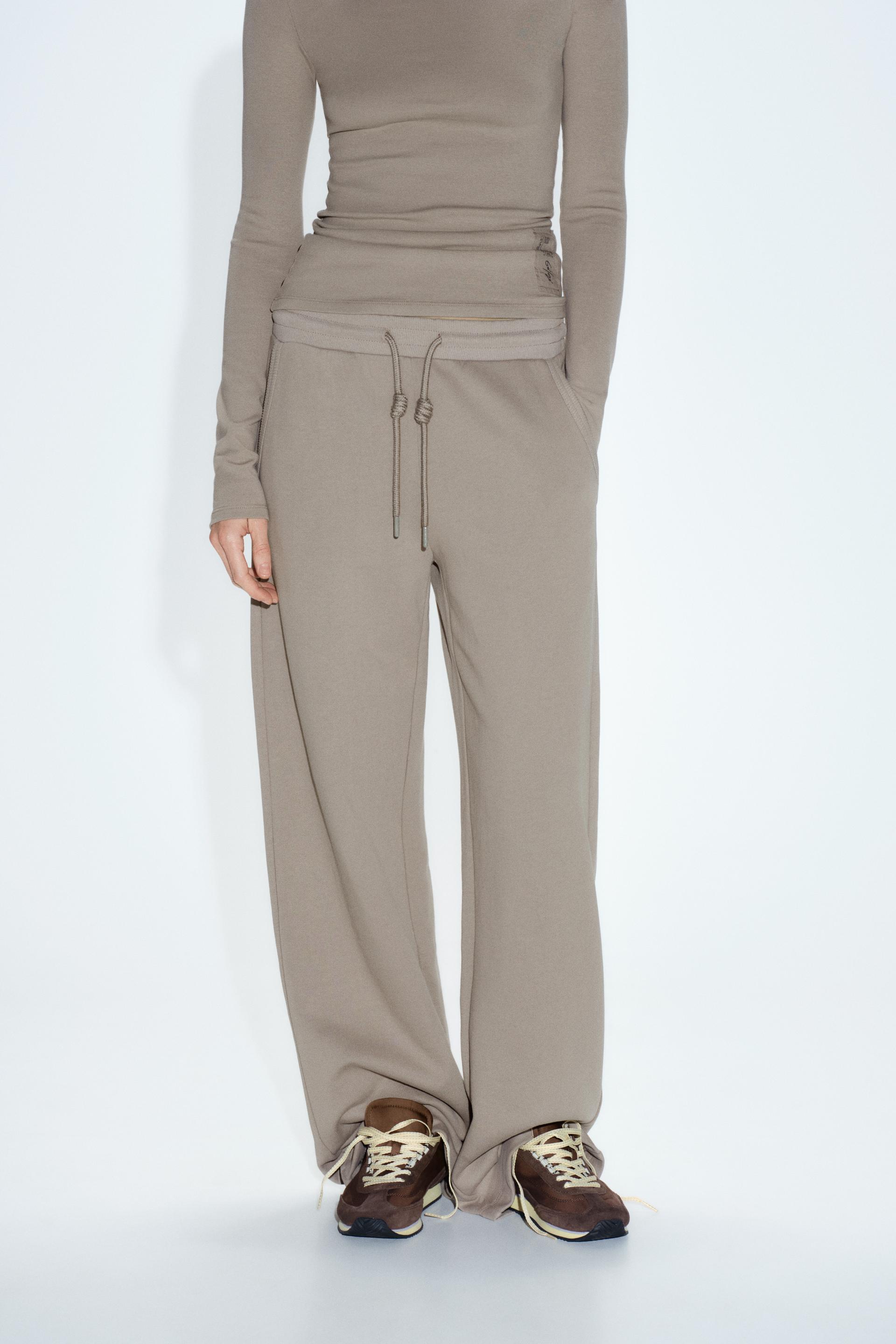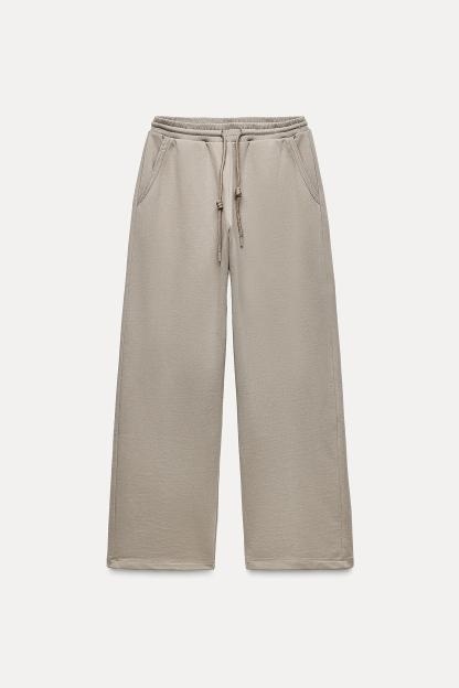 Pants with a mid elastic waist with adjustable drawstring. Front pockets. Wide leg.