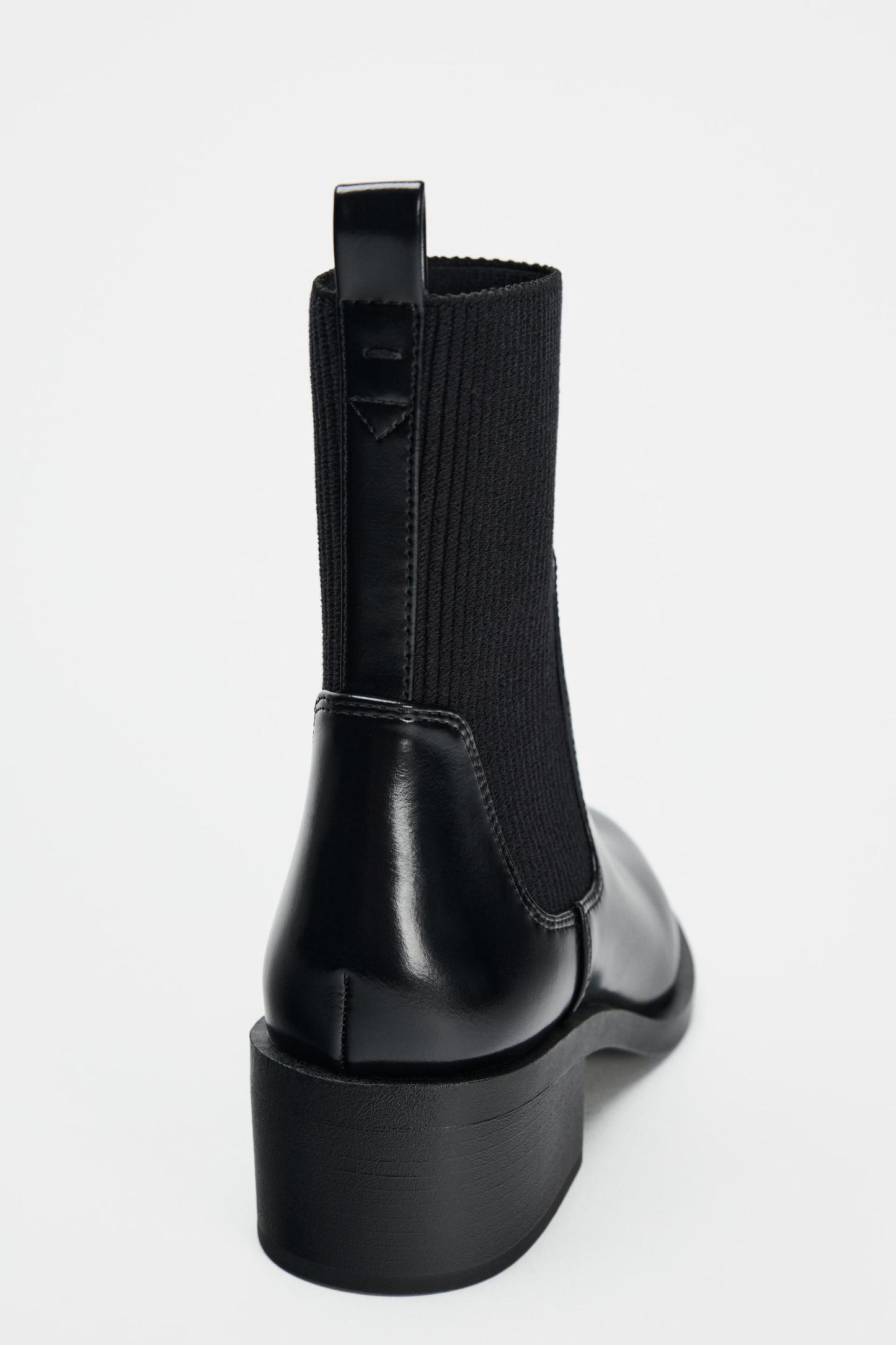 PATENT EFFECT FABRIC ANKLE BOOTS
