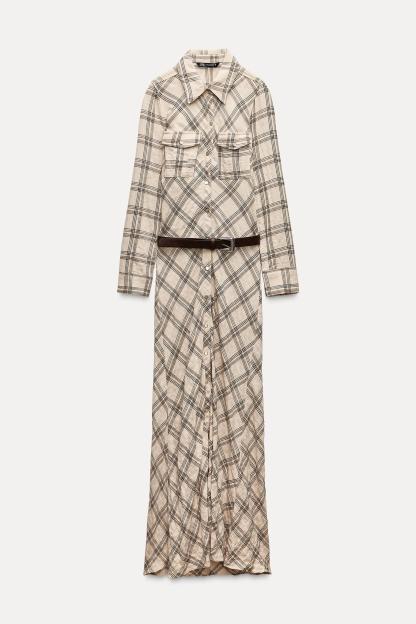 PLAID SHIRT DRESS WITH BELT