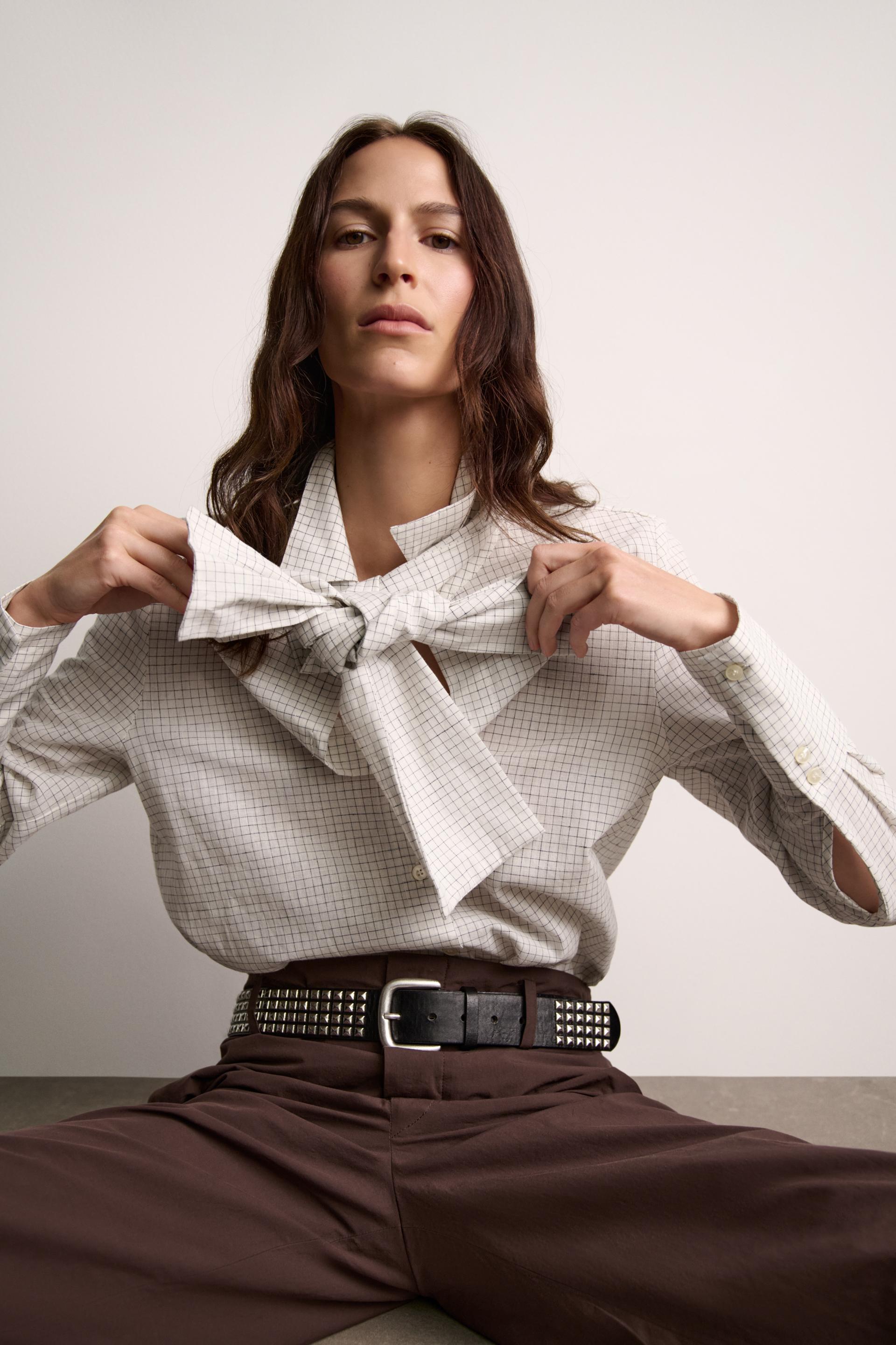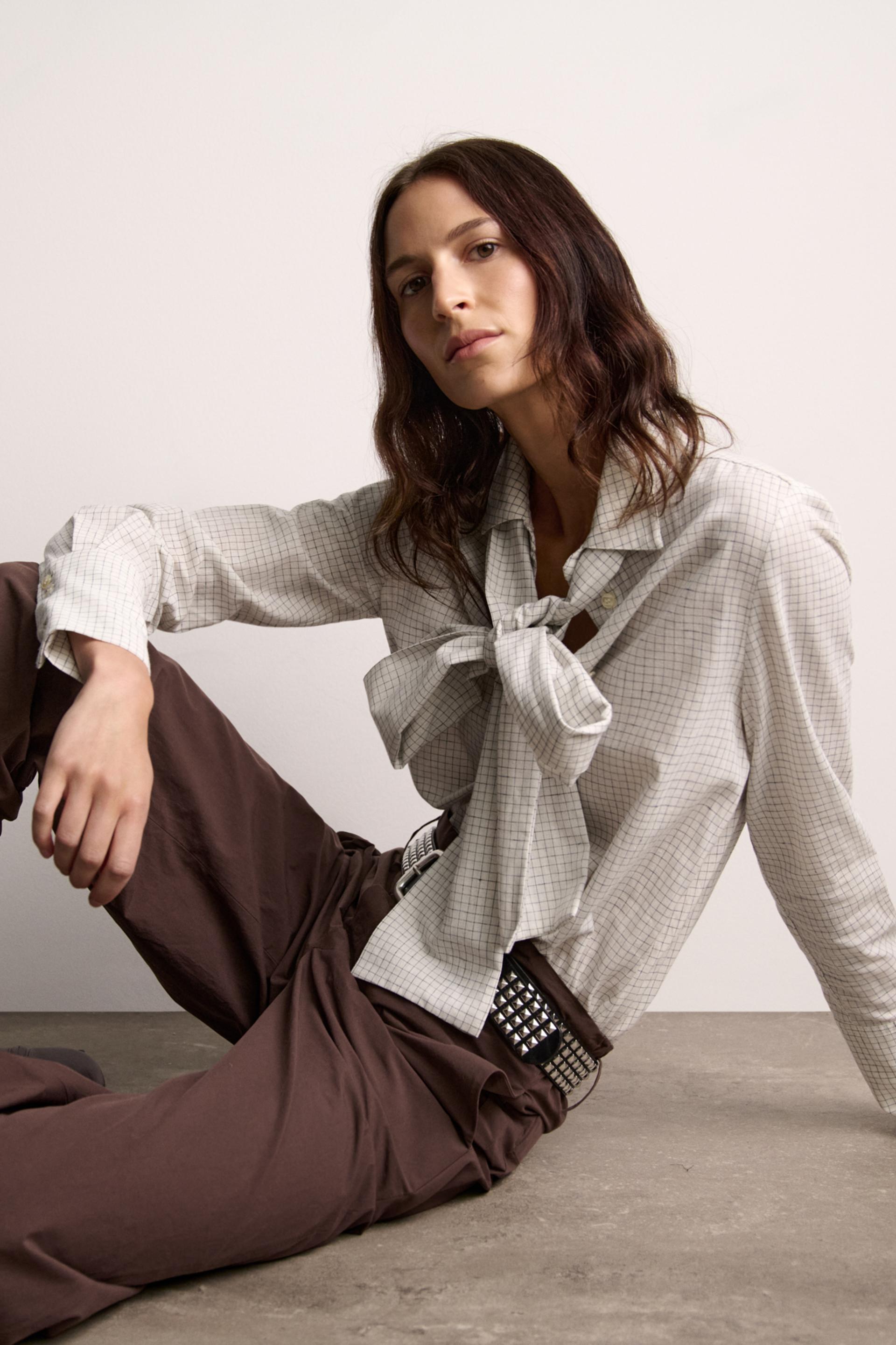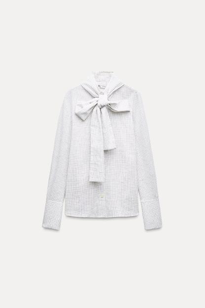 PLAID TIED BLOUSE ZW COLLECTION