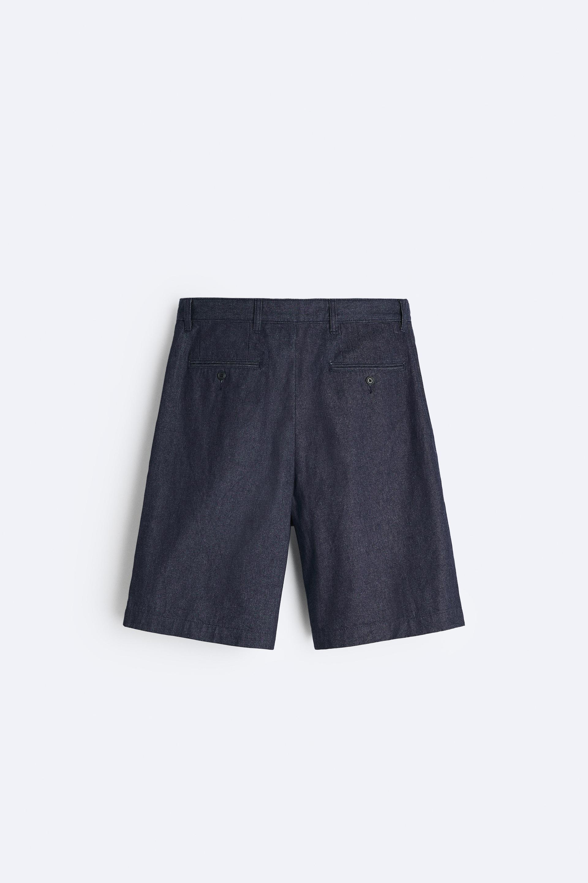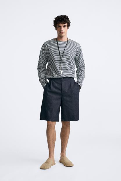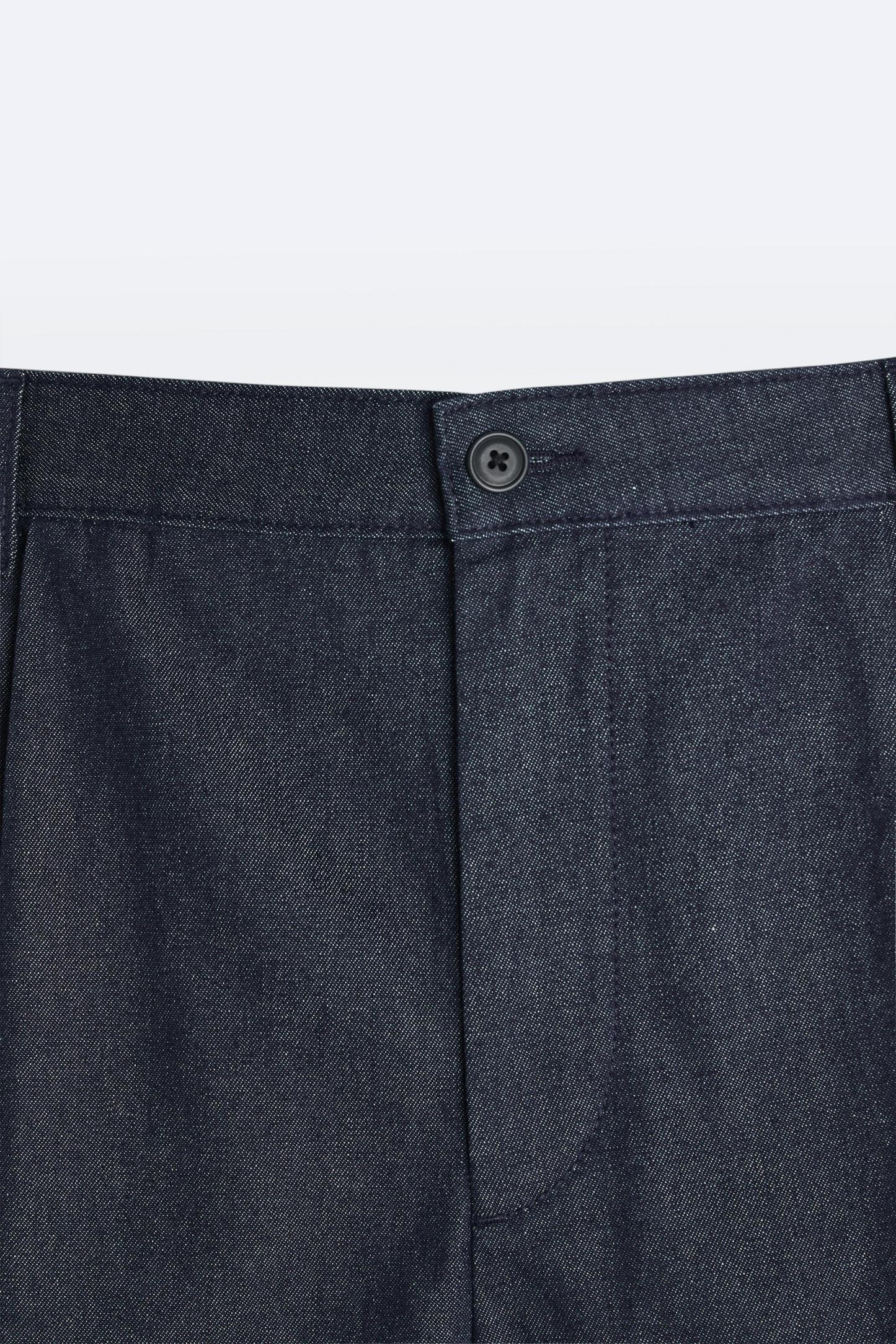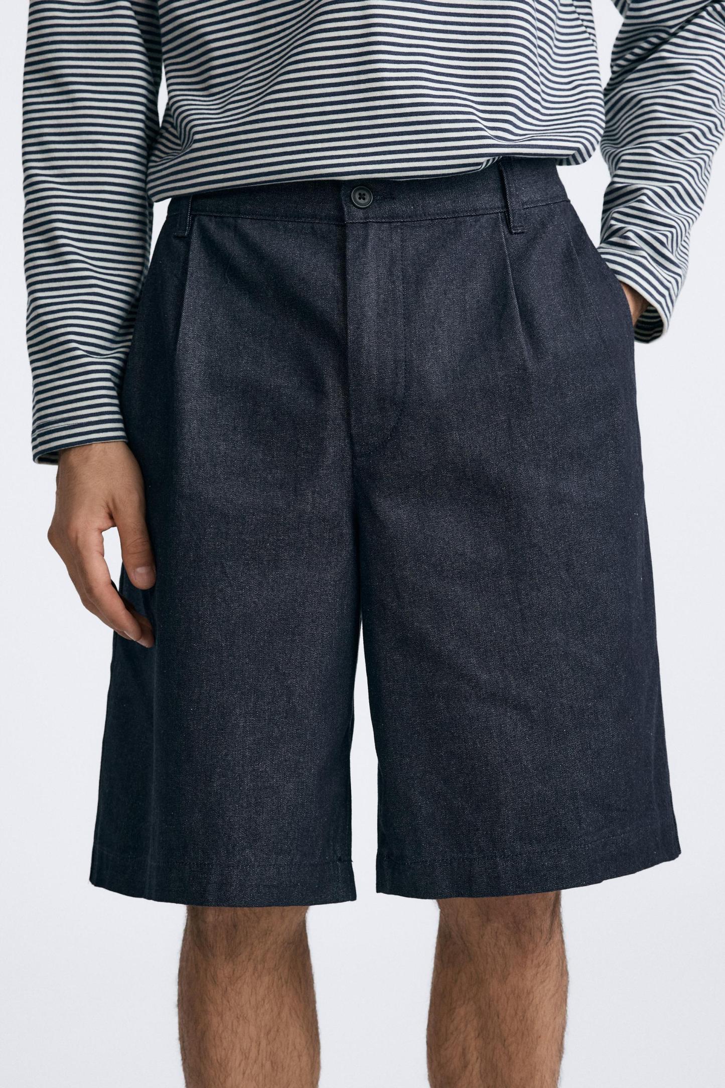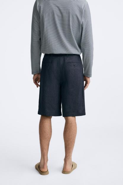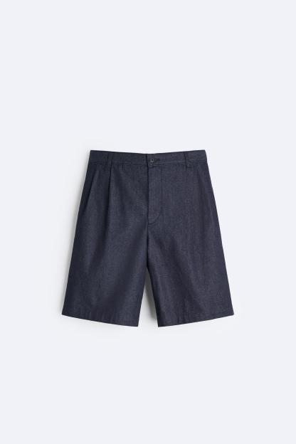 PLEATED DENIM SHORTS
