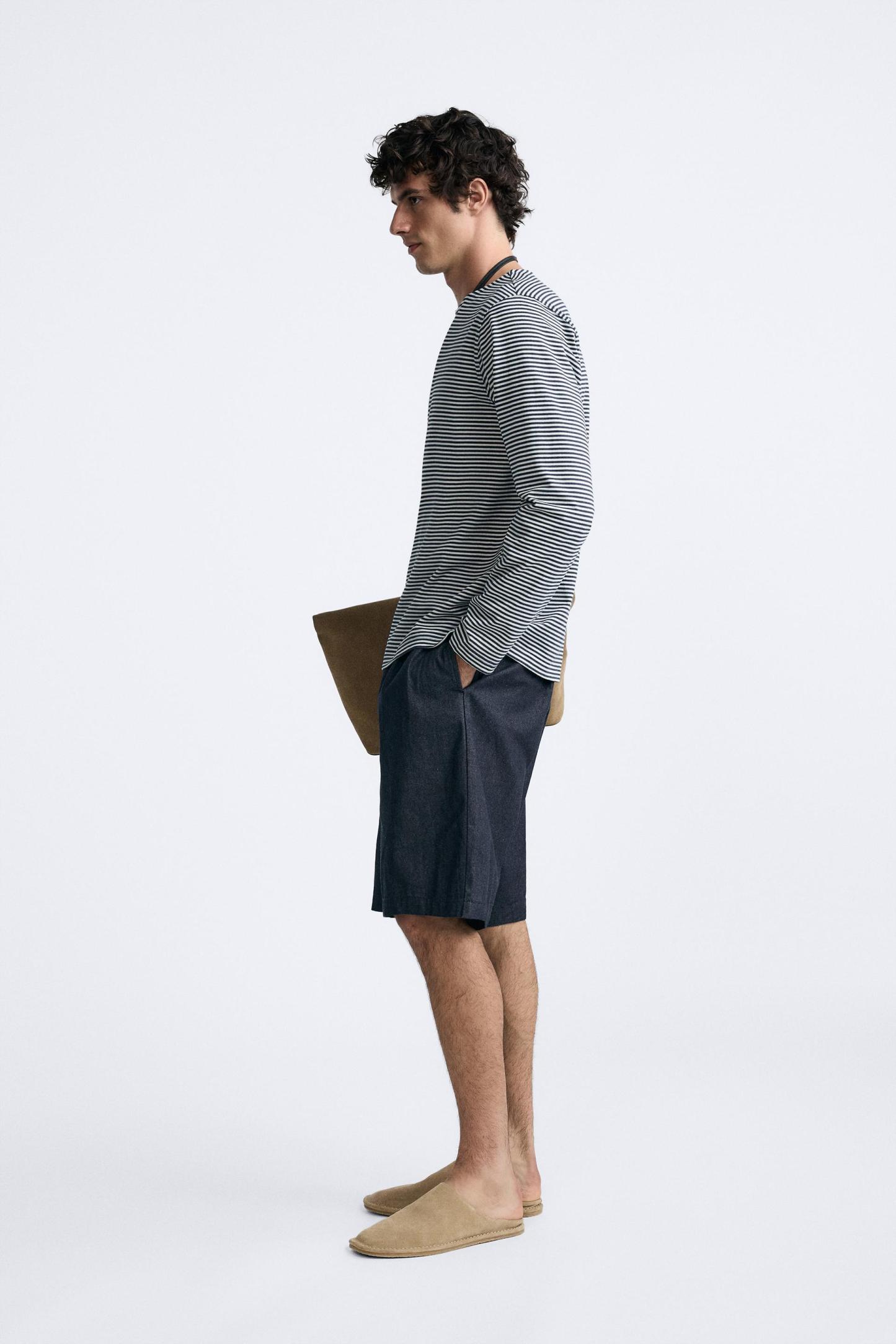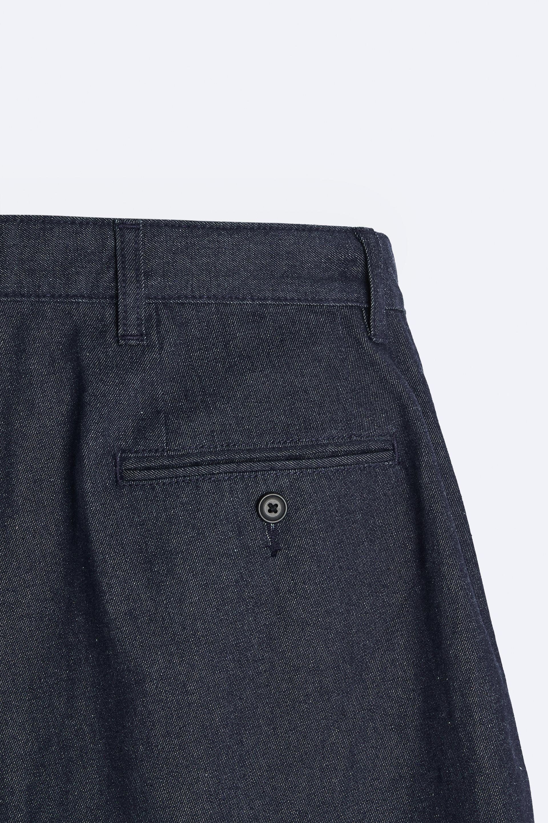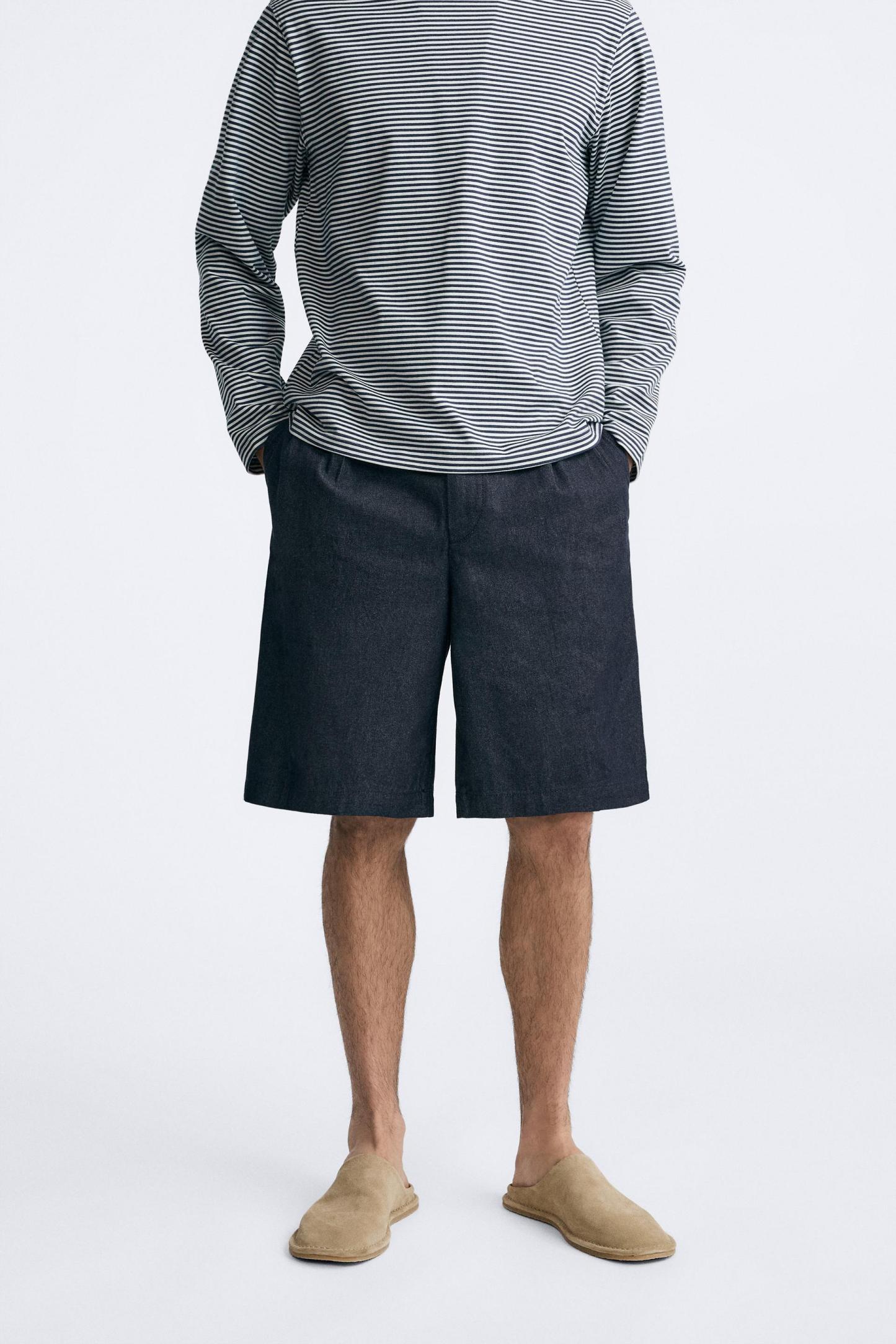 PLEATED DENIM SHORTS