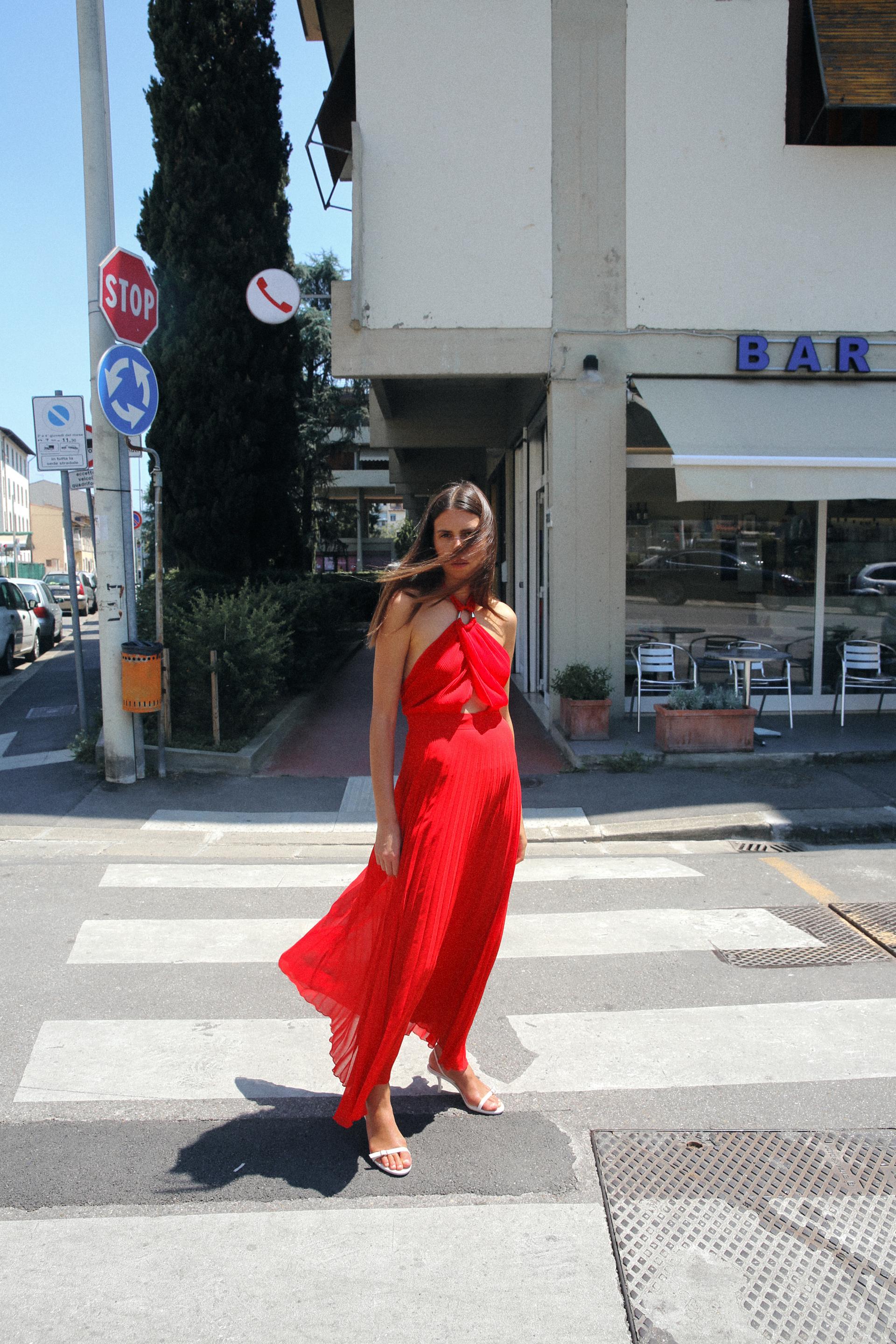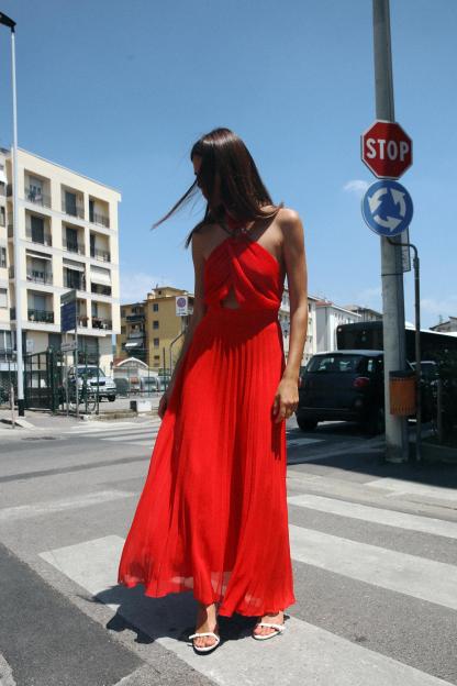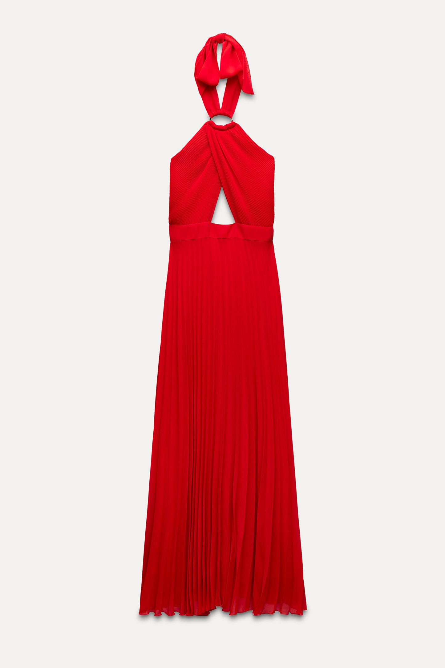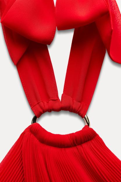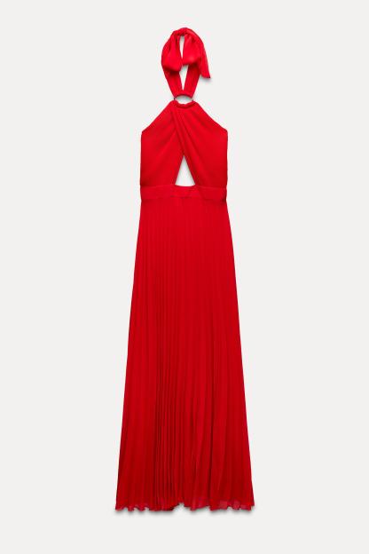 PLEATED HALTER DRESS