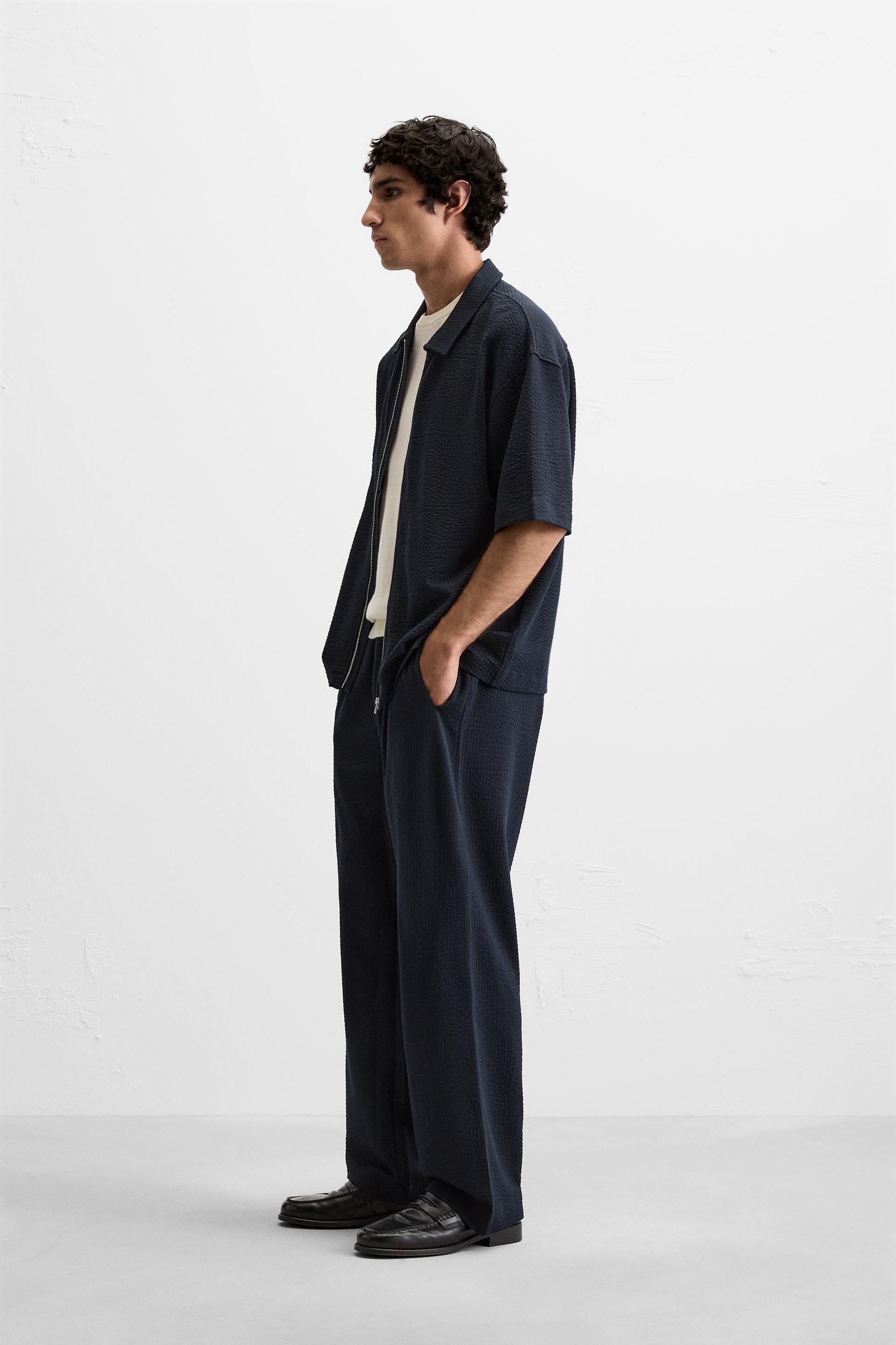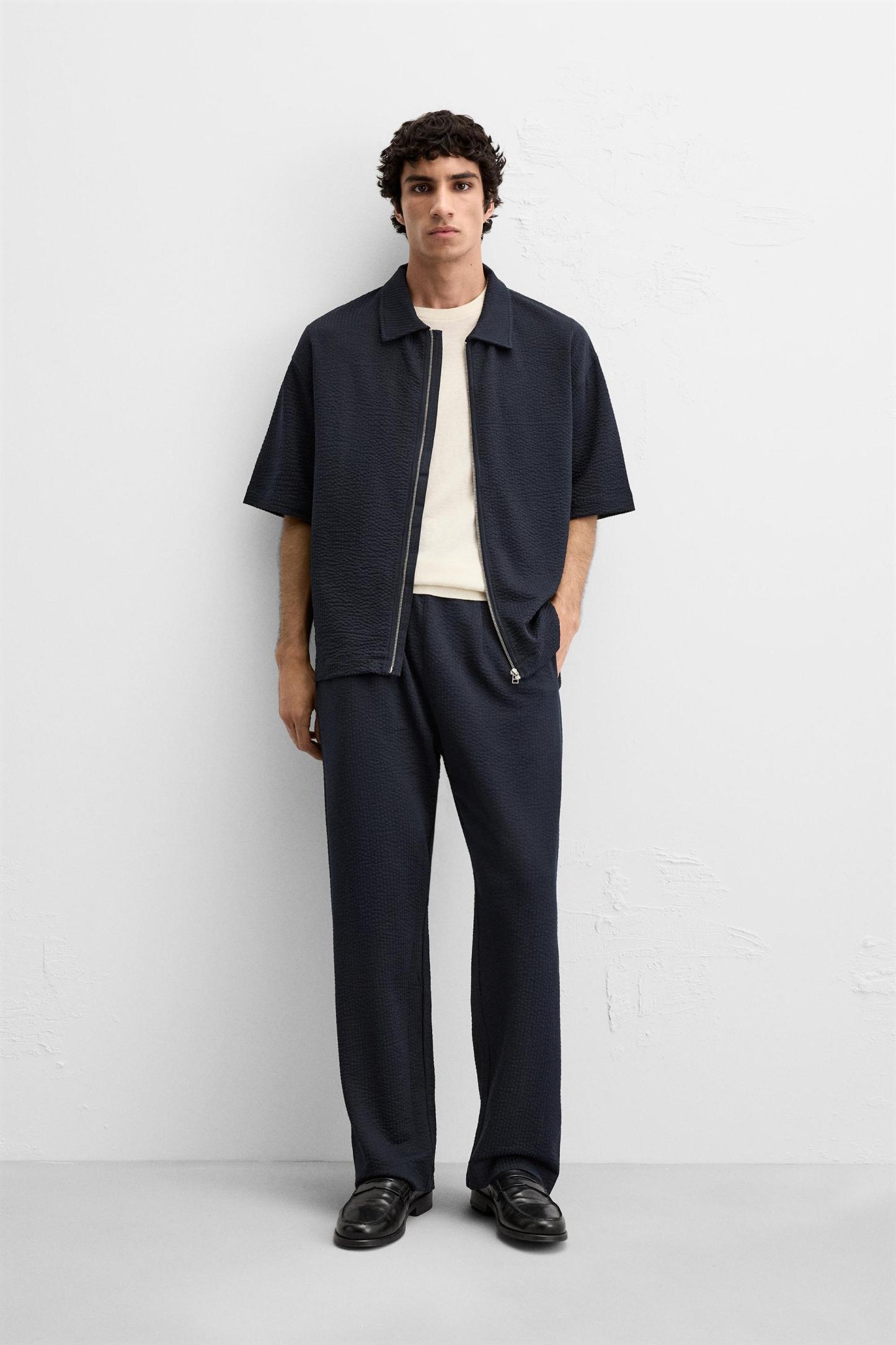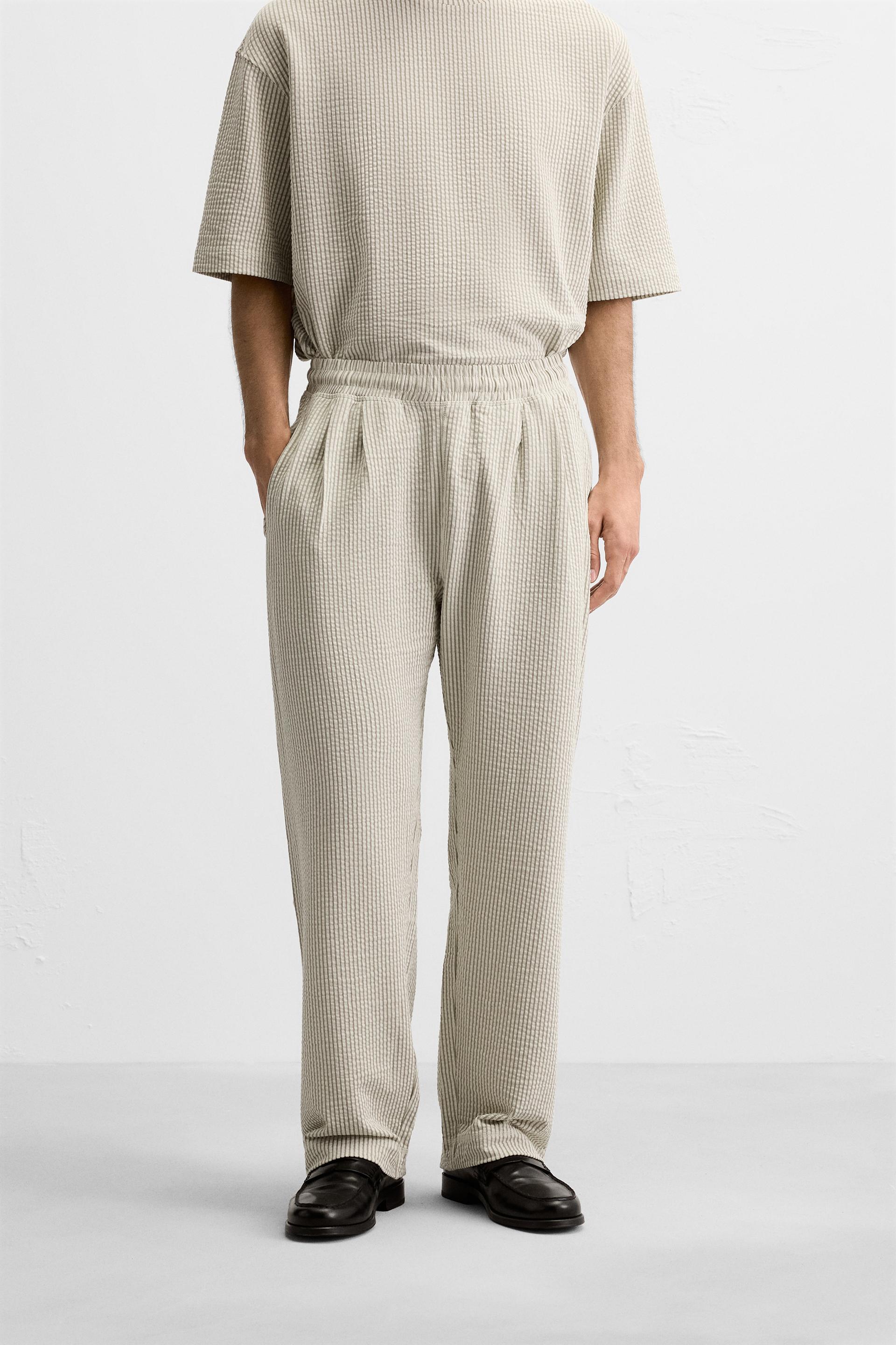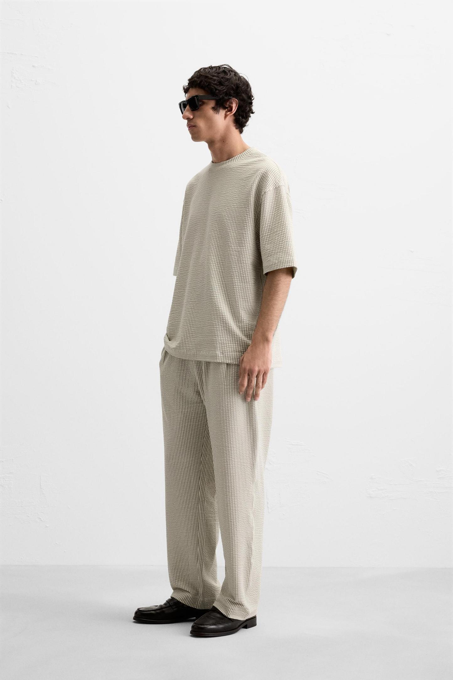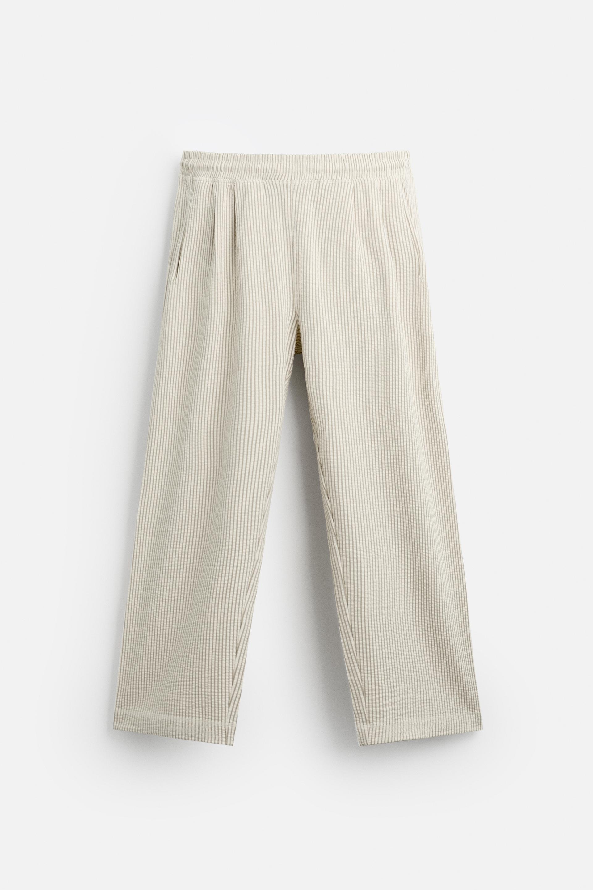 PLEATED SEERSUCKER PANTS