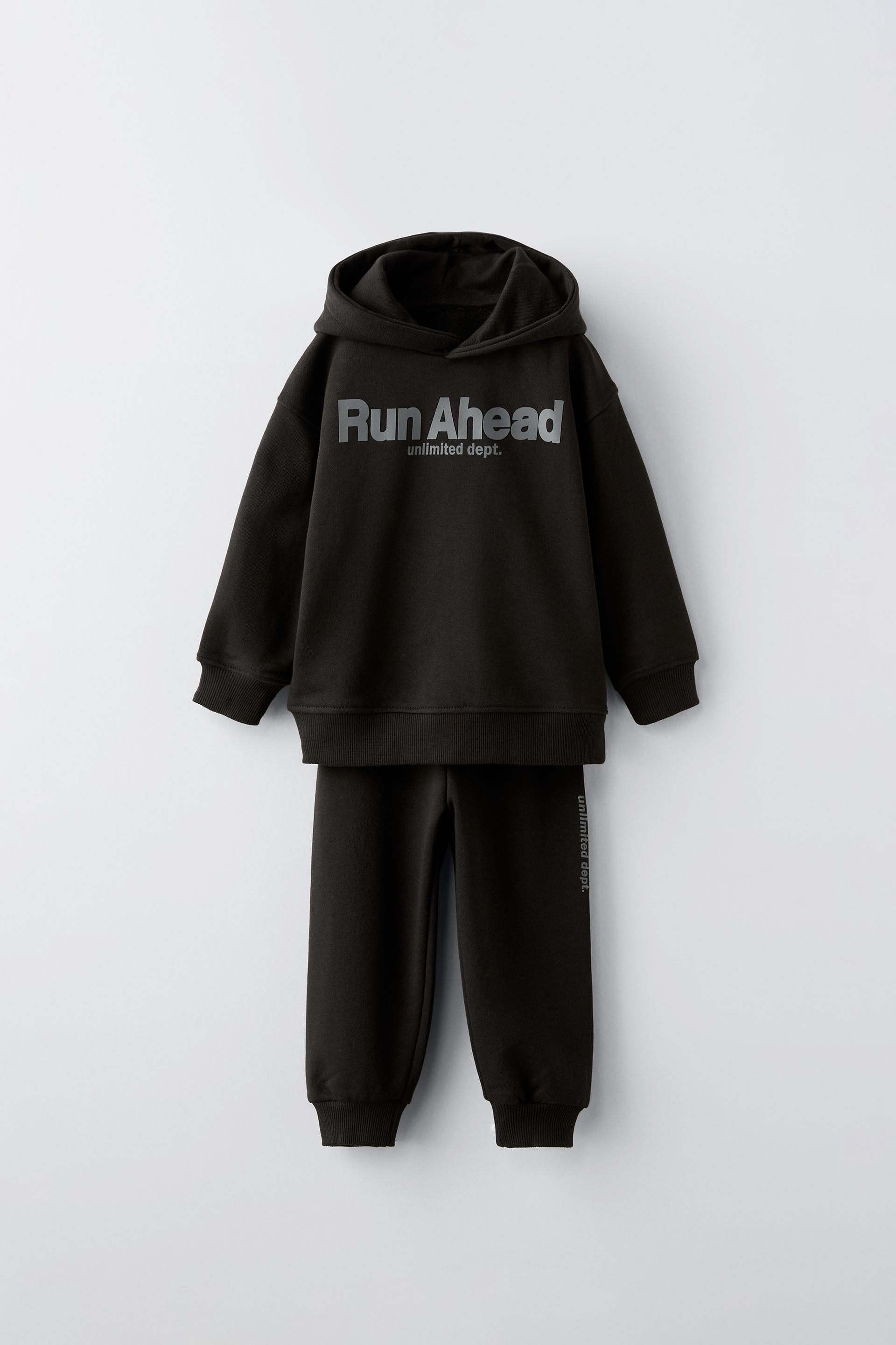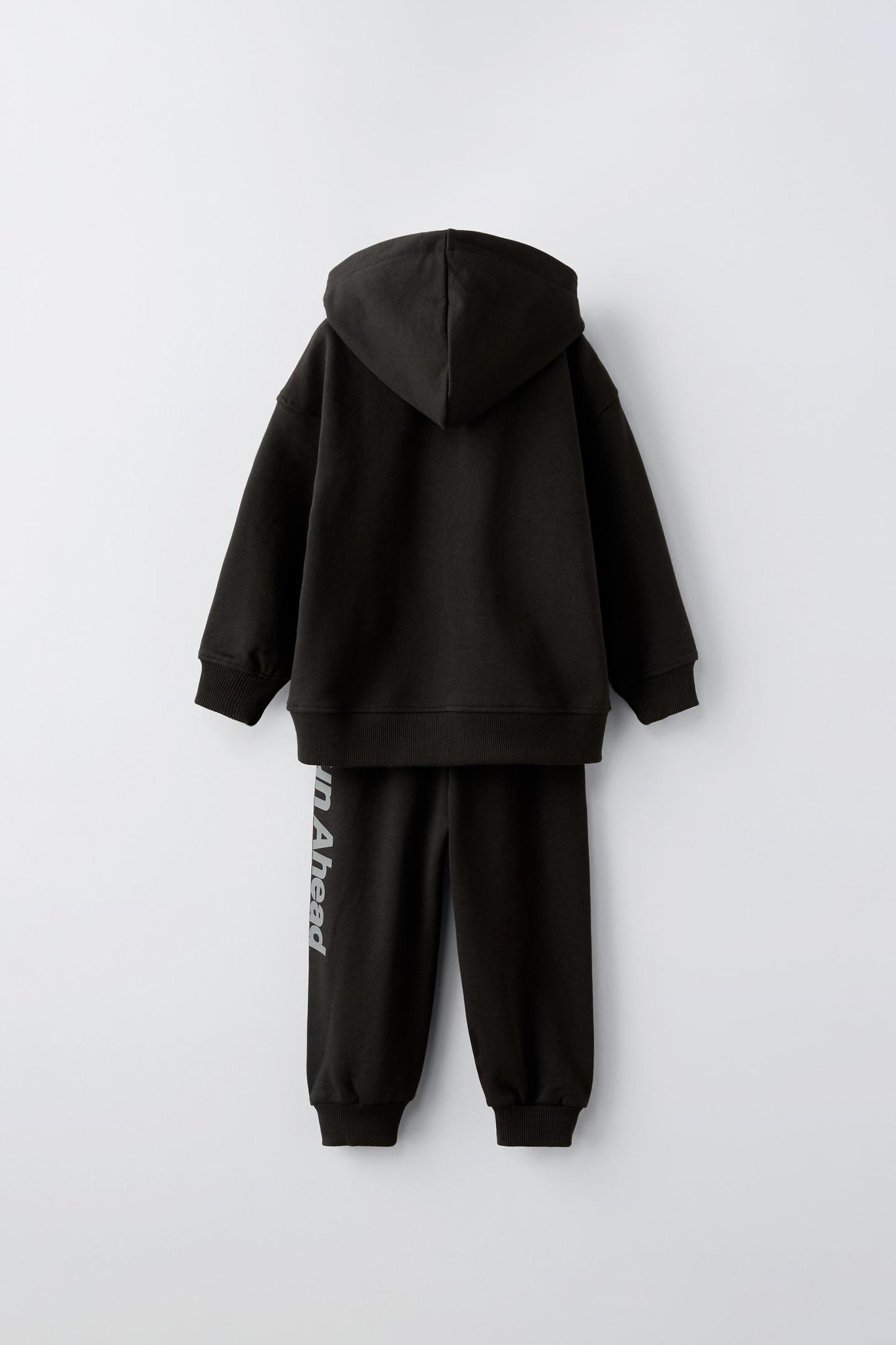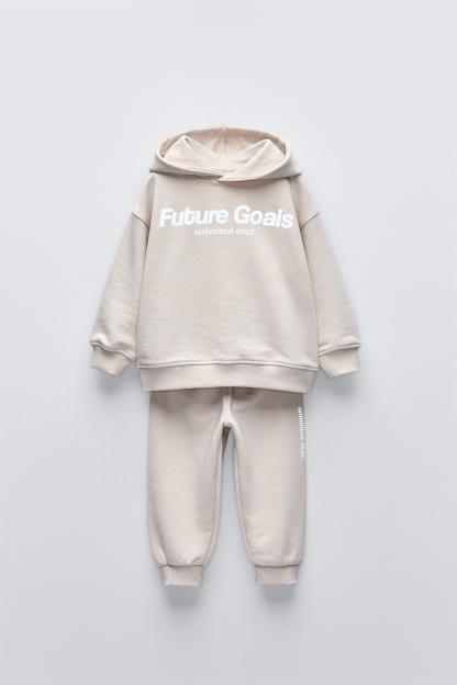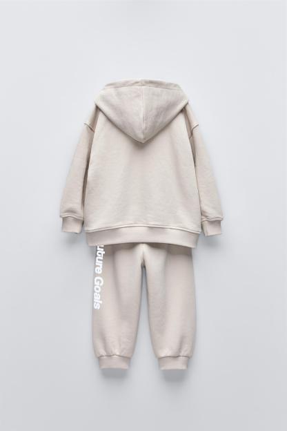 PLUSH SWEATSHIRT AND JOGGERS WITH TEXT MATCHING SET