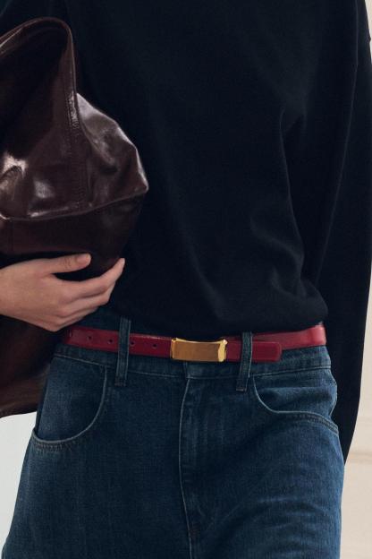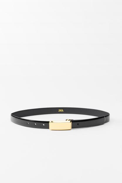 RECTANGULAR BUCKLE THIN LEATHER BELT
