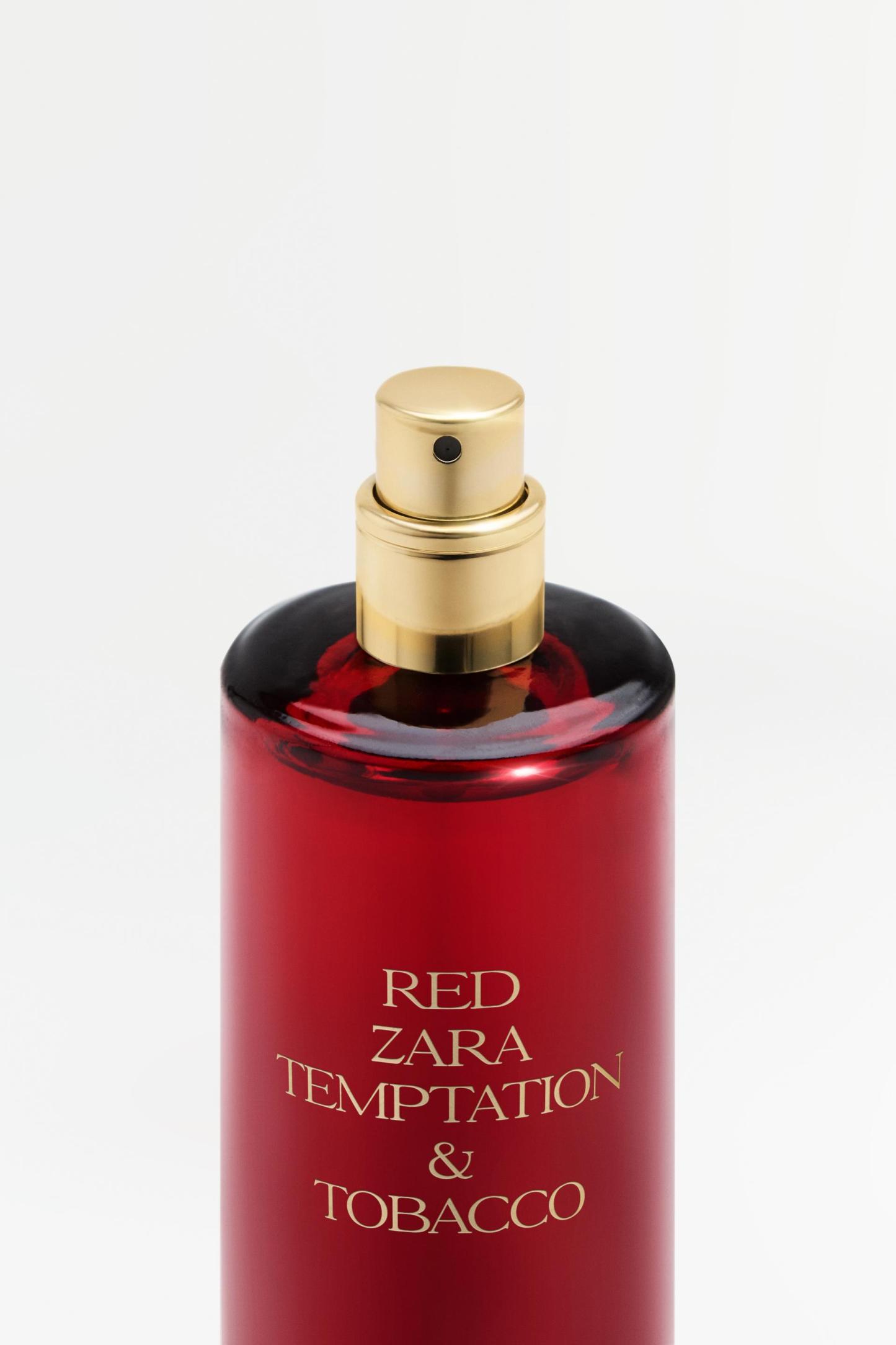 COMPOSITION & CARECOMPOSITIONWe work with monitoring programs to guarantee compliance with the social, environmental, and health and safety standards of our products. To assess its compliance, we have developed an audit program and plans for continual improvement.ZARA RED ZARA TEMPTATION & TOBACCO EXTRAIT DE PARFUMALCOHOL DENAT. � FRAGRANCE (PARFUM) � WATER (AQUA) � TETRAMETHYL ACETYLOCTAHYDRONAPHTHALENES � COUMARIN � TOCOPHERYL ACETATE � LIMONENE � CITRUS AURANTIUM PEEL OIL � PINENE � VANILLIN � BENZYL BENZOATE � LINALOOL � BENZYL ALCOHOL � beta-Caryophyllene � TERPINOLENE � ALPHA-ISOMETHYL IONONE � ISOEUGENOLWarnings