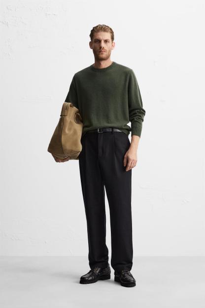 Regular fit wool thread sweater. Round neck and long sleeves. Rib trim.