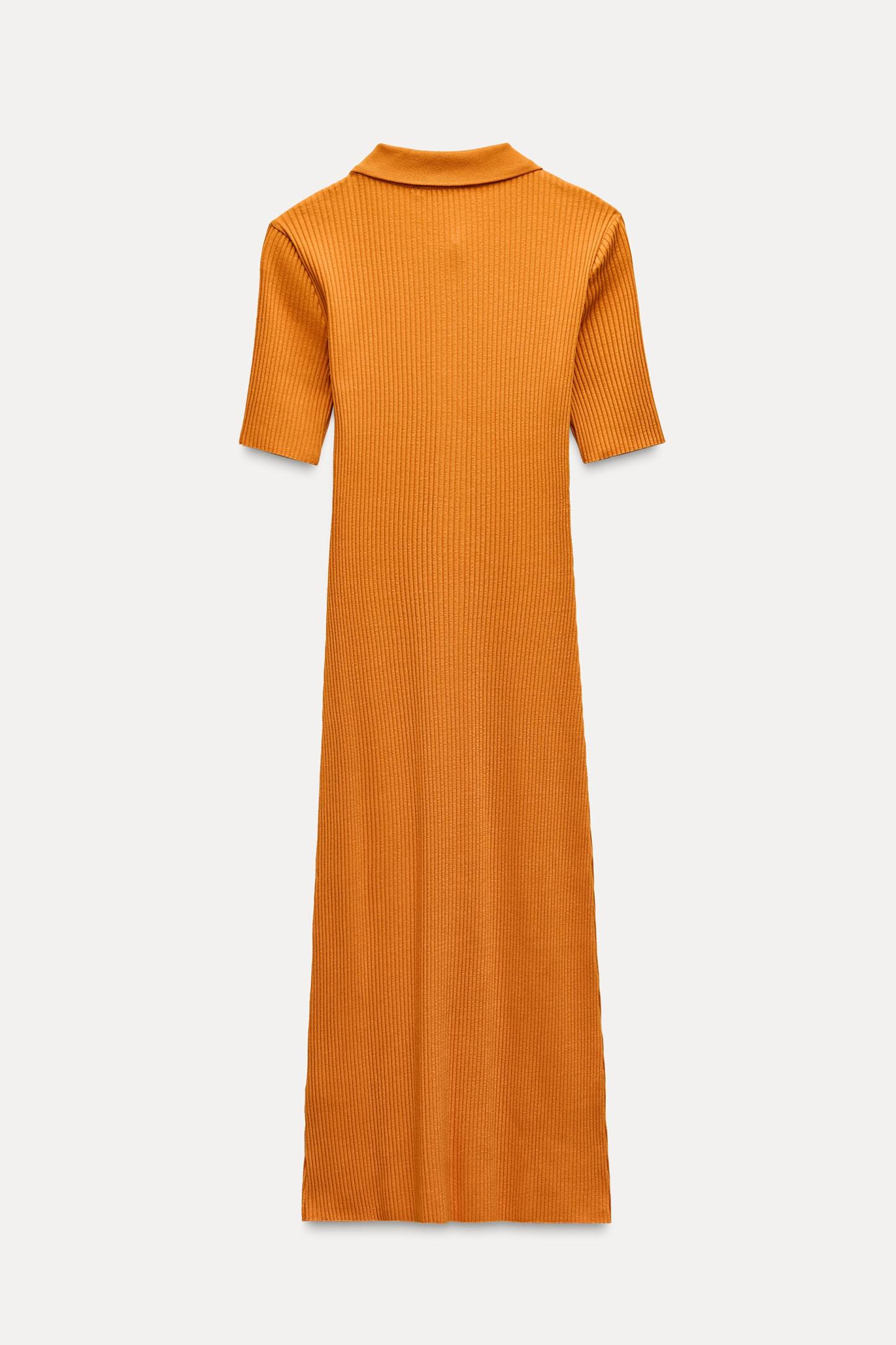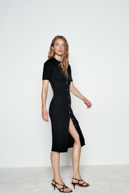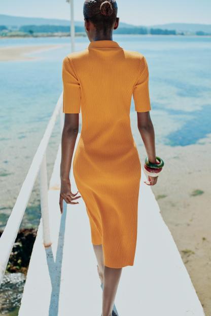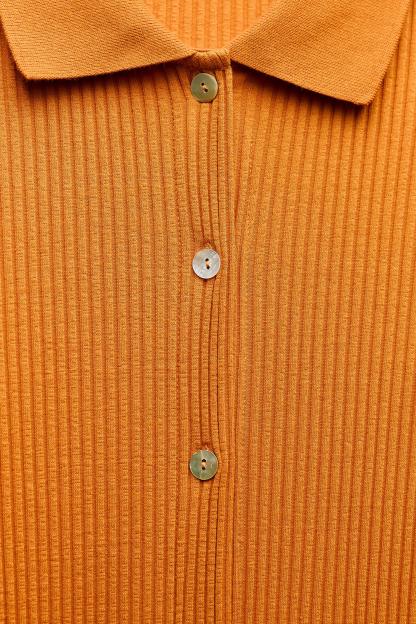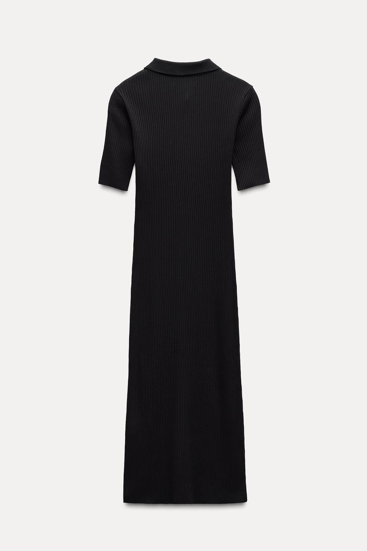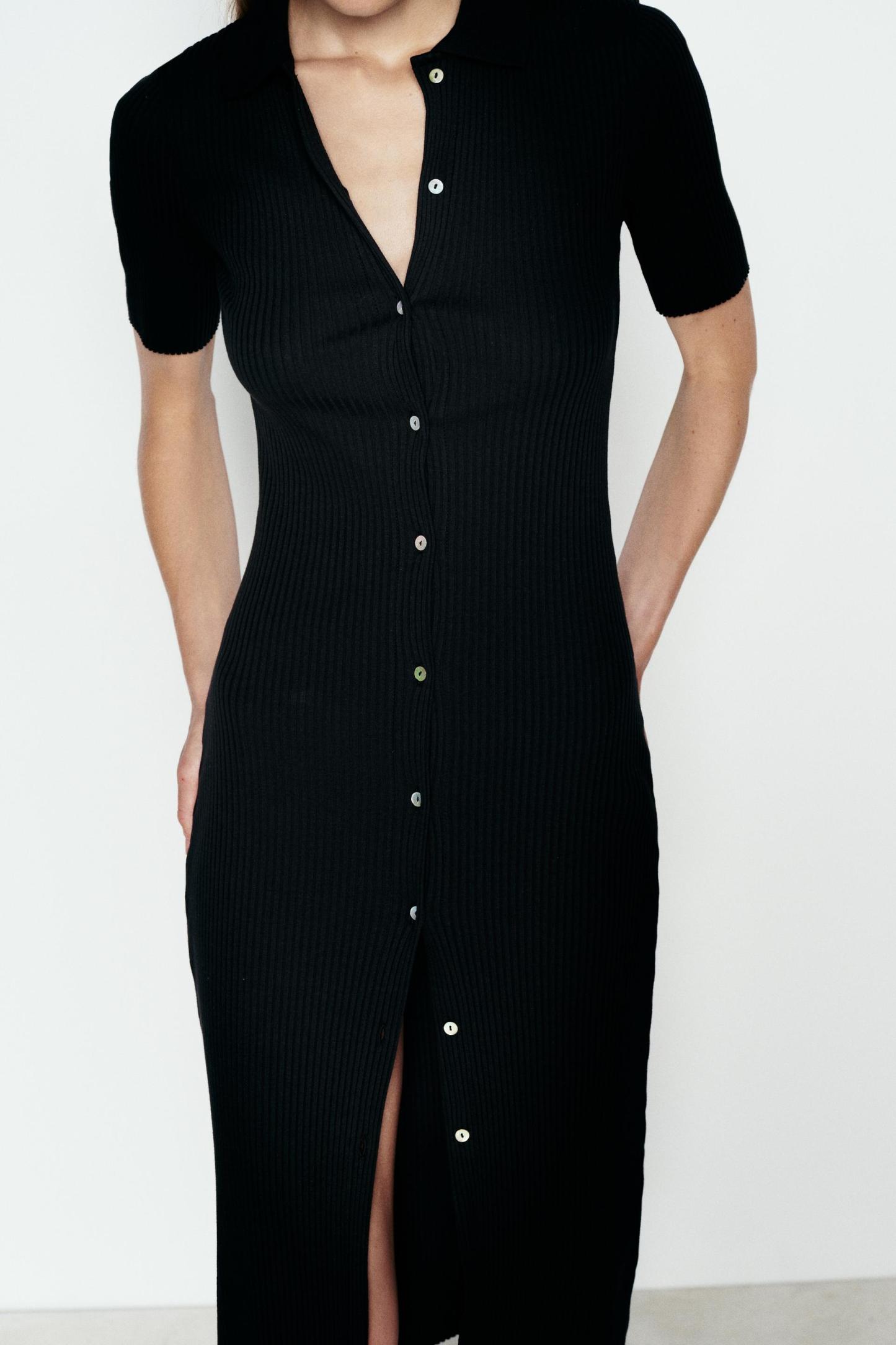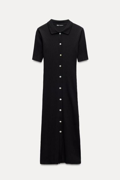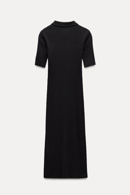 RIB POLO COLLAR DRESS WITH BUTTONS