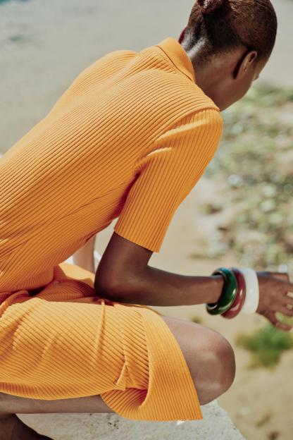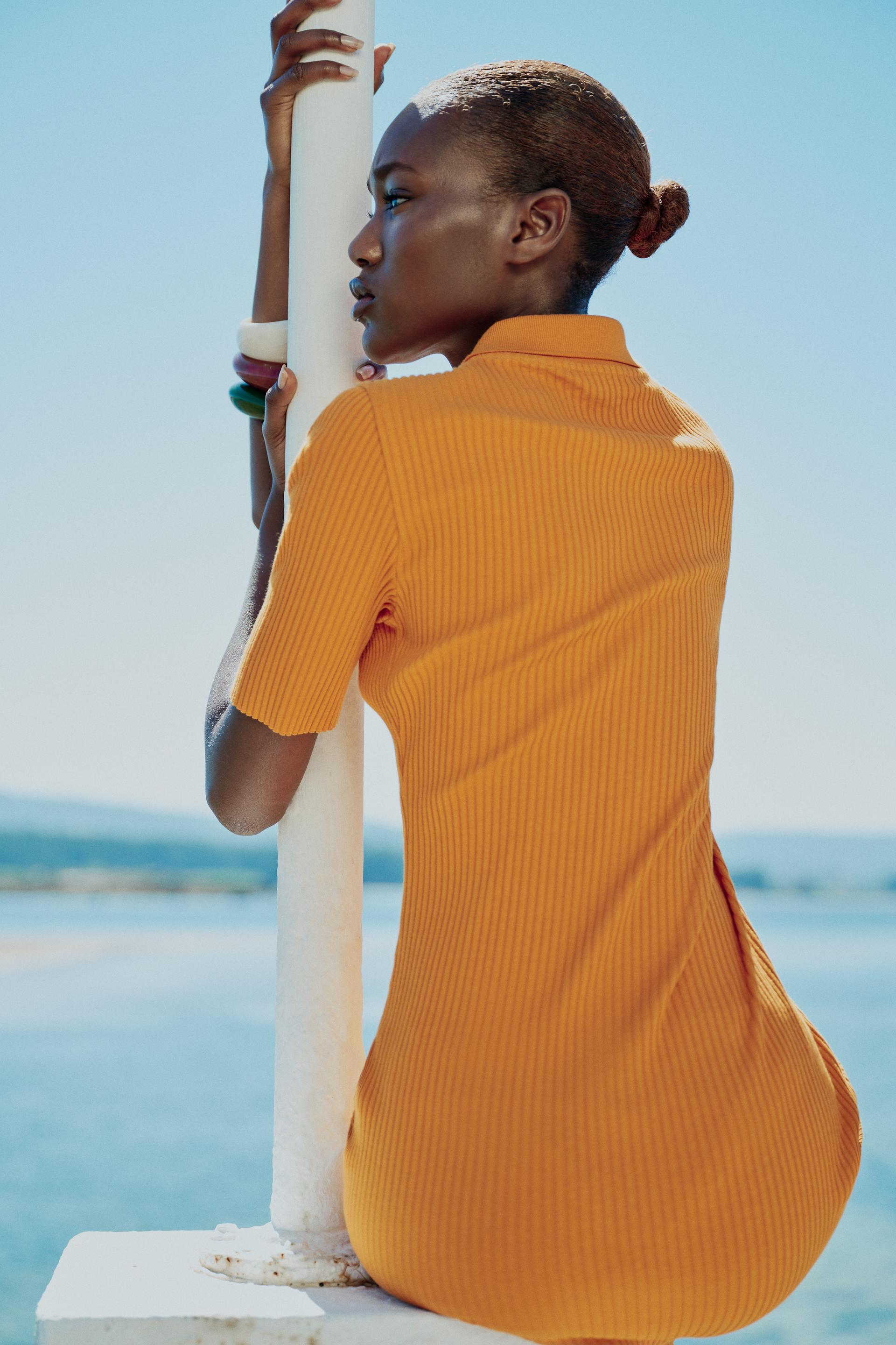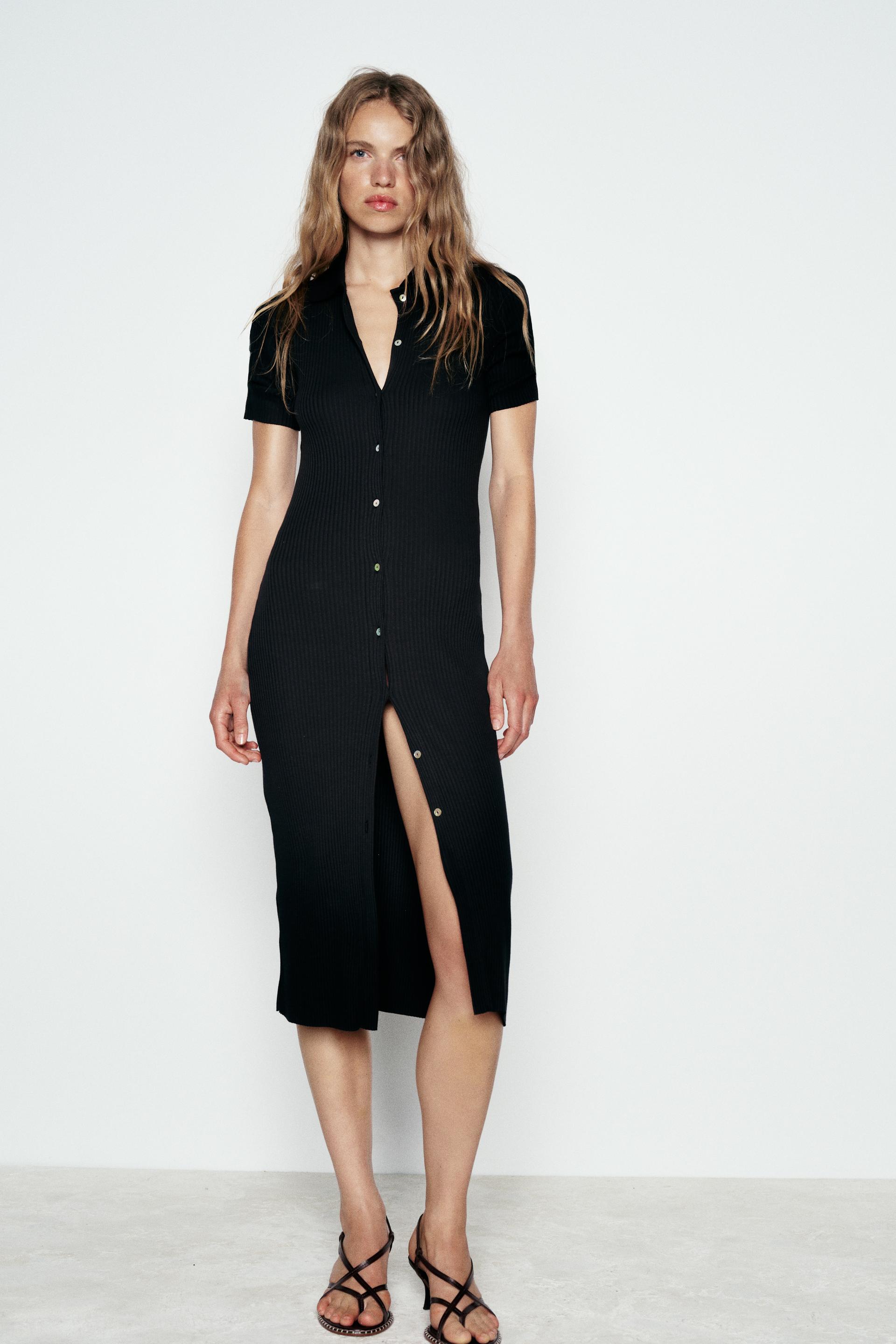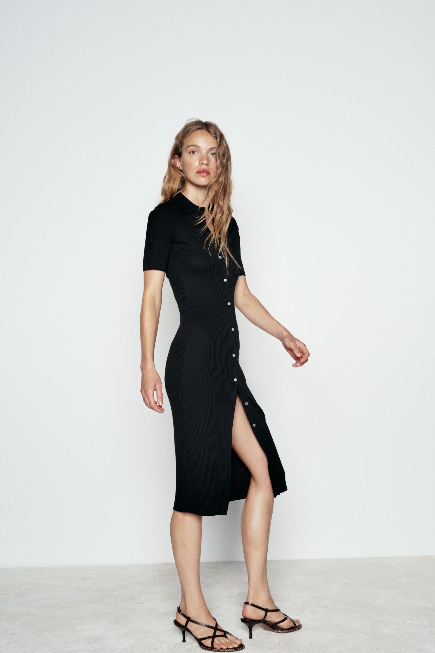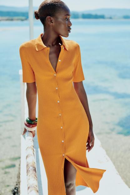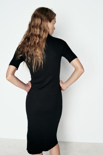RIB POLO COLLAR DRESS WITH BUTTONS