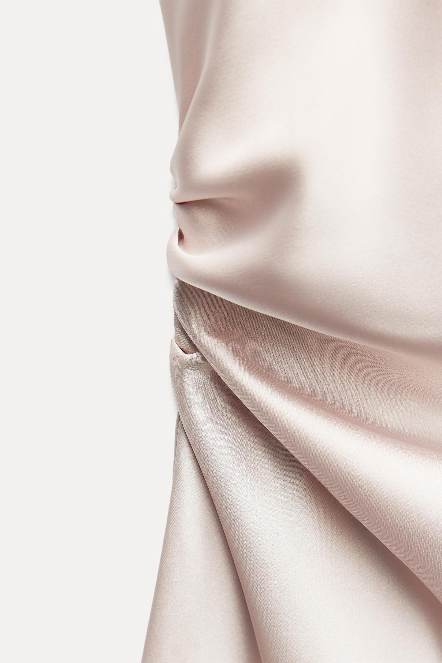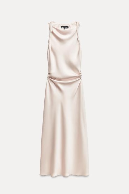 RUCHED SATIN EFFECT MIDI DRESS