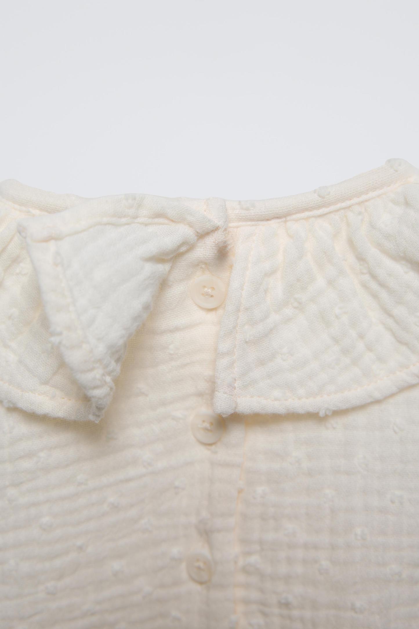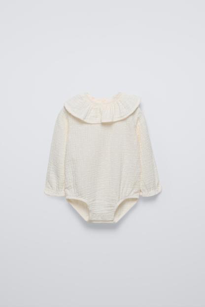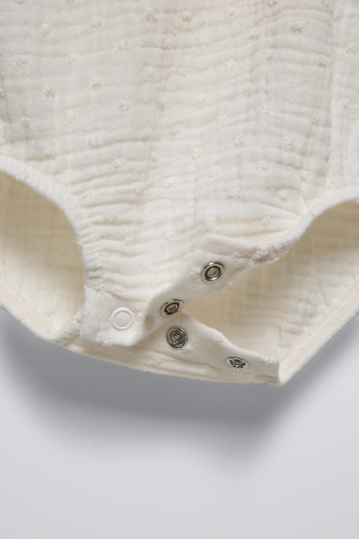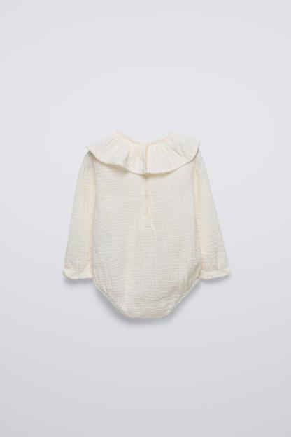RUFFLED DOTTED MESH BODYSUIT