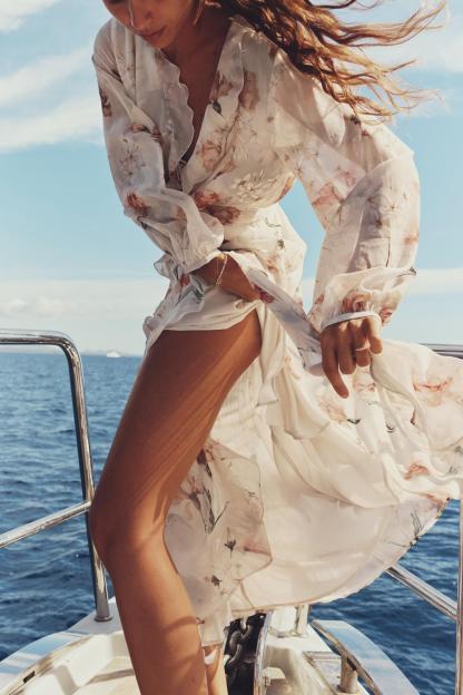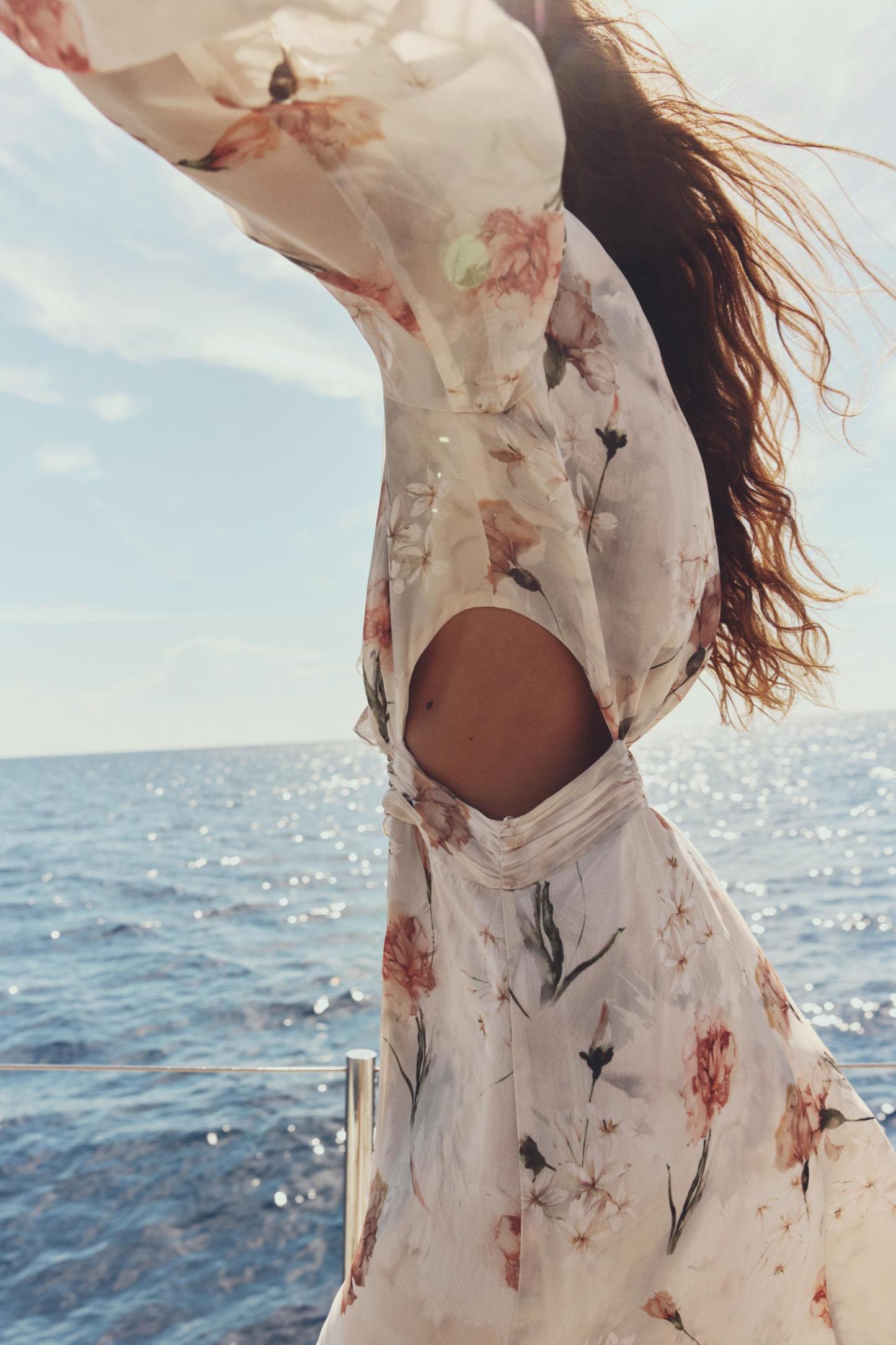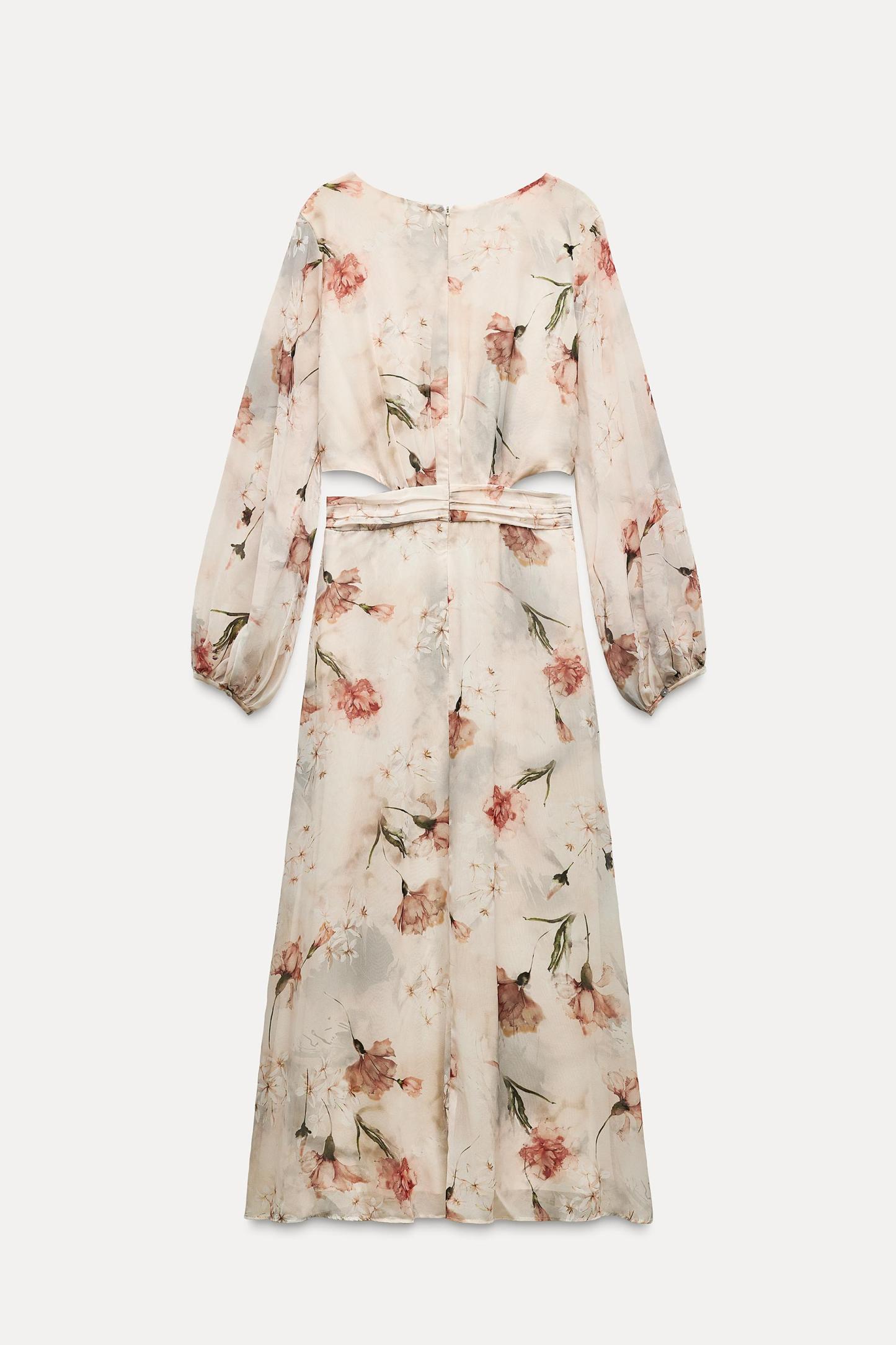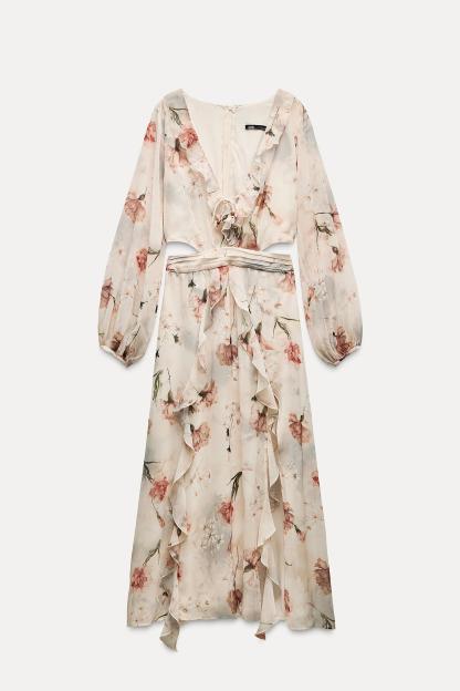 RUFFLED FLORAL CUT OUT DRESS